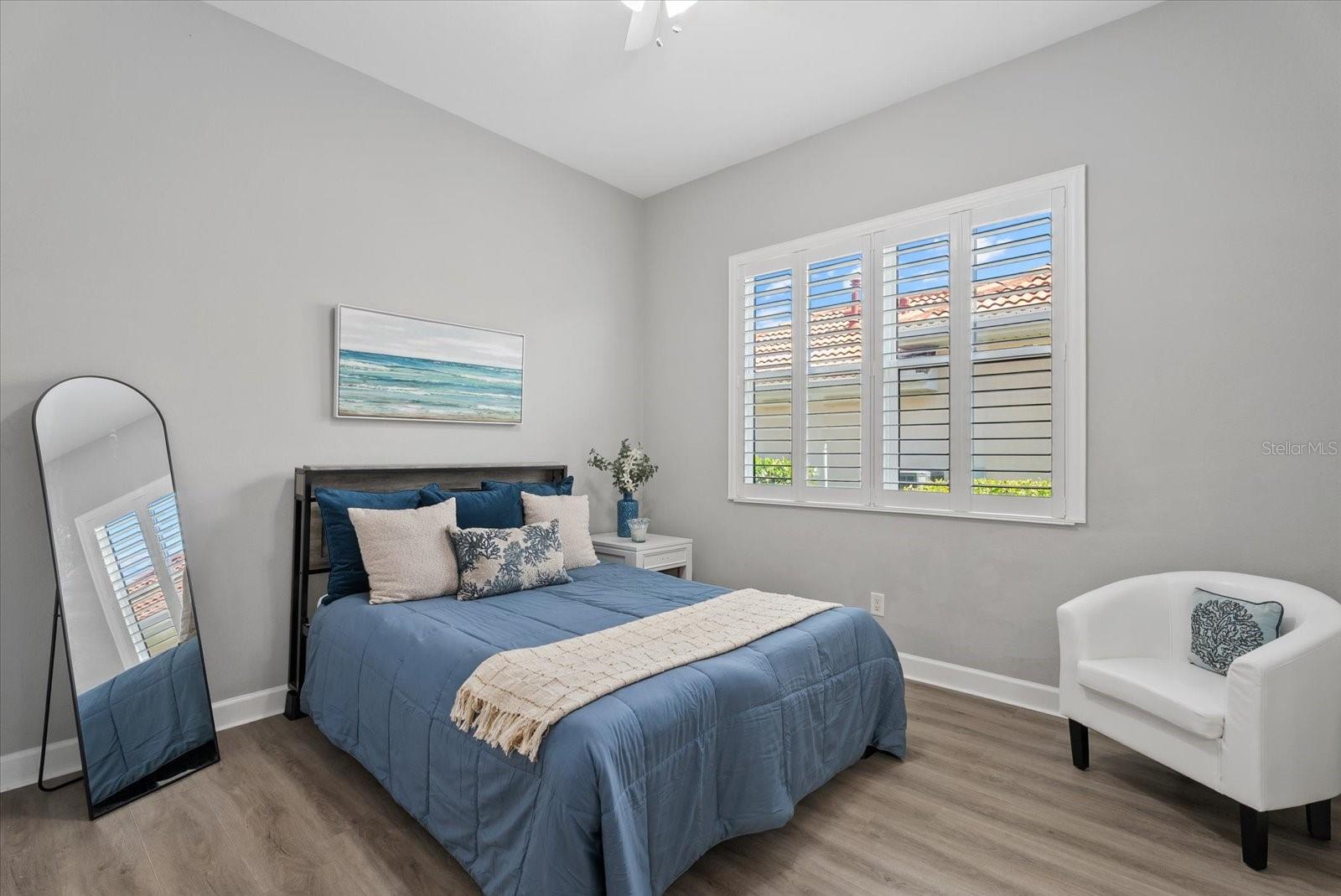 HURRICANE IMPACT GLASS! WATER VIEWS! EXTENDED SCREENED-IN LANAI! Set against expansive, tranquil water views in the highly sought-after guard-gated community of Venetian Golf & River Club, this beautifully appointed 4-bedroom, 3-bath residence with a 2-car garage with a DEDICATED bonus office/den blends architectural elegance with thoughtful upgrades and exceptional indoor/outdoor living. New IMPACT GLASS WINDOWS AND SLIDERS installed 2024, HVAC 2019. From the moment you step inside, with nearly 12-foot ceilings, crown molding throughout, plantation shutters, and newly installed PGT impact windows create a bright, airy atmosphere while offering comfort and storm-ready peace of mind. Designed for both everyday living and effortless entertaining, the spacious kitchen is the heart of the home, featuring quartz countertops, stainless steel appliances, a GAS range with convection oven, breakfast bar seating, and a generous pantry. The kitchen flows seamlessly into the large family room and dining area, while both the family room and formal living room open through PGT impact sliding glass doors to the oversized screened lanai, framing wide water views that bring the outdoors beautifully inside. The primary bedroom also features its own PGT impact slider leading directly to the lanai, TWO walk-in closets, and a spacious en-suite bath complete with split dual vanities, a relaxing garden soaking tub, a full tiled walk-in shower, and a private water closet. Two guest bedrooms share a convenient Jack-and-Jill bathroom with dual vanity sinks and a tub with shower combination, while a third guest bedroom and additional full bath provide ideal accommodations for visitors. A well-equipped laundry room with built-in cabinetry and utility sink adds everyday functionality. Outdoor living truly shines on the supersized screened lanai, offering abundant space for entertaining or quiet relaxation, along with a large covered seating area, sun awning, and retractable shades, all perfectly positioned to take in the peaceful water views and Florida breezes. Located within the GOLF CART friendly, guard-gated community of Venetian Golf & River Club, residents enjoy a resort-style lifestyle with a grand clubhouse, dedicated lap pool, an amenity pool, fitness center, six Har-Tru tennis courts and 3 pickleball courts, hot tub/spa and beautifully maintained grounds. The elegant clubhouse features dining and social spaces that create a true neighborhood atmosphere--all just minutes from the charm of Venice and Gulf Coast beaches. One of the community's most distinctive features is the scenic riverwalk along the Myakka River, perfect for peaceful morning walks, nature viewing, and sunset strolls. Conveniently located near Sarasota Memorial Hospital - Venice Campus with quick access to Interstate 75, Venetian Golf & River Club offers both tranquility and accessibility, placing shopping, dining, beaches, and everyday essentials just minutes away. This is Florida living at its best!