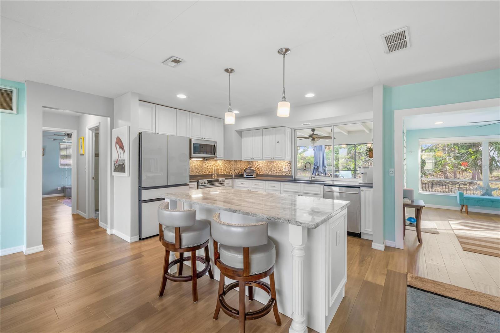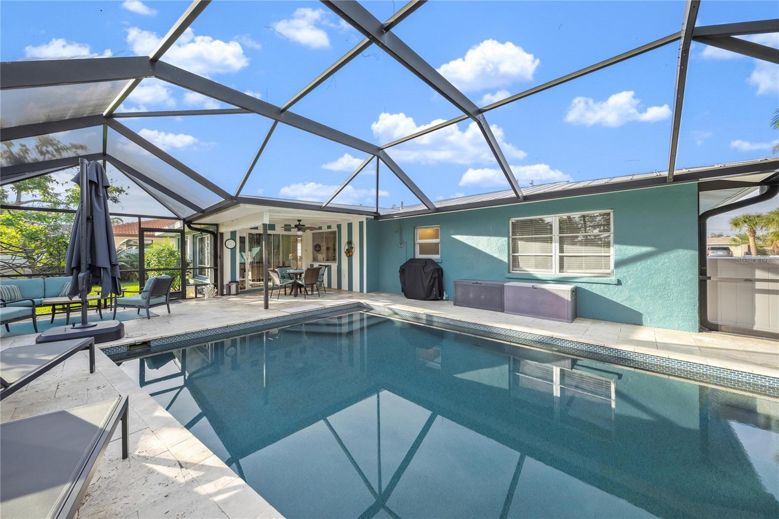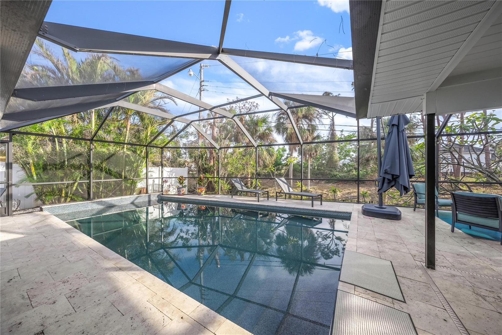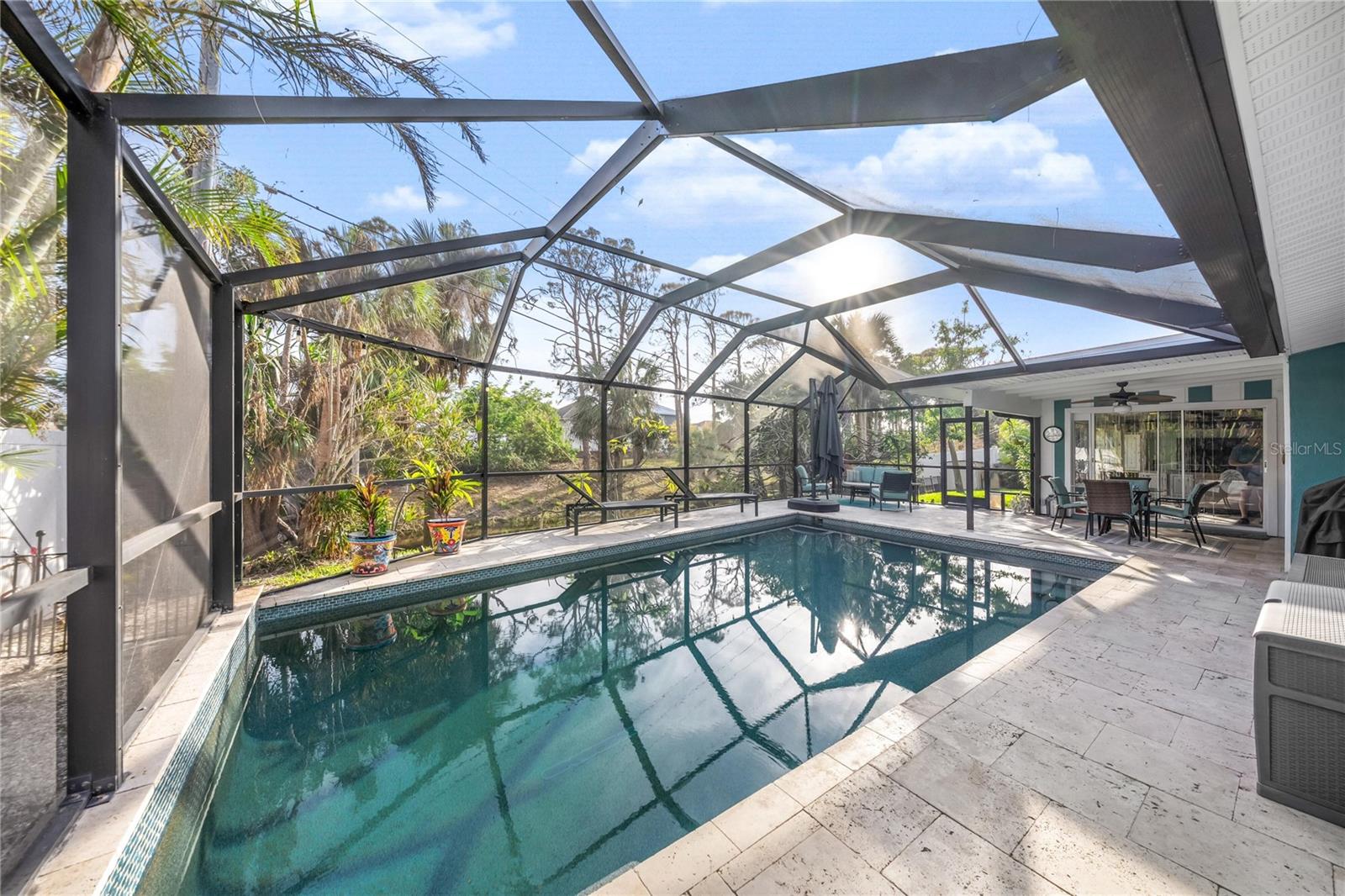 Welcome to Sunset Drive!Discover a sanctuary of luxury and tranquility on Sunset Drive, an exclusive and highly coveted cul-de-sac that ends at the breathtaking Gulf of Mexico. This home offers unparalleled privacy and relaxation, with a serene backyard overlooking a peaceful creek and a heated saltwater lap pool complete with a soothing waterfall.Features You'll Love: Prime Location: On a private, gated cul-de-sac that leads to the Gulf. Open Concept: See from the front door to the creek; Privately putter in the garage with see-out, not-in screens. Outdoor entertaining: 2000 s' of pavers. Tranquil Backyard: Overlooks a serene creek with no home in back for ultimate privacy. Private Heated Pool: Saltwater lap pool featuring a calming waterfall. Exclusive Access: Private, gated beach access reserved for Sunset Drive residents.Modern Upgrades:o 2021: New metal roof.o 2021: Fresh exterior paint and 2,000 sq. ft. of exterior pavers.o 2023: New Rudd air conditioner/heat pump.Convenient Amenities: Instant hot water in the kitchen and master bath. Outdoor Living: Pass-through window from the kitchen to the pool area. Stylish Appliances: 2023 Samsung Bespoke refrigerator and washer-dryer. Pet-Friendly: Equipped with dog doors leading to a fenced yard for your furry friends. Turnkey: All furniture included. Just move in and bring your flip flops! No hurricane damage. Not in flood zone. Sunset Drive has a higher elevation. This one-of-a-kind property combines luxury living with serene surroundings!