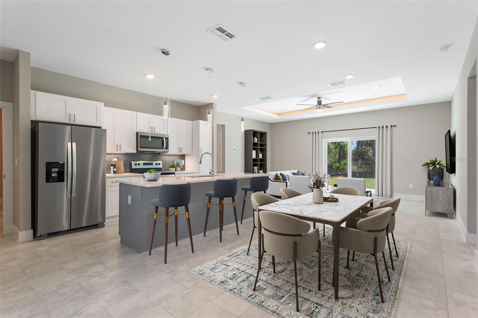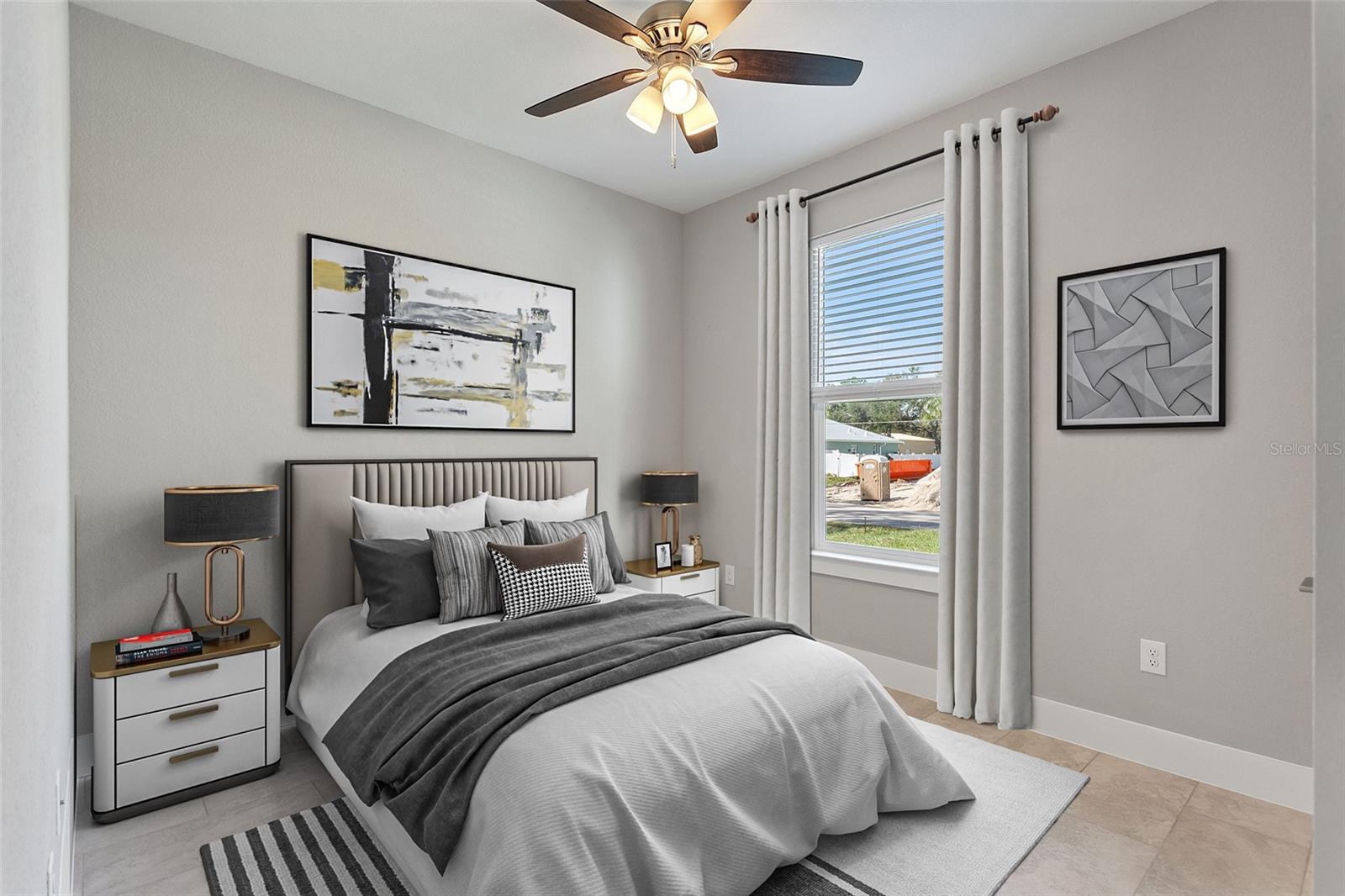 One or more photo(s) has been virtually staged. Pre-Construction. To be built. Introducing the stunning 1717 Model- a modern 4-bedroom, 2-bathroom home designed for comfort and style. With high ceilings and an expansive living area, the 1717 Model offers a bright, inviting atmosphere perfect for both relaxation and entertaining.The home features sleek tile flooring throughout, along with ceiling fans in every bedroom for added comfort. Built with hurricane rated, impact windows and doors, you can enjoy peace of mind in any weather.The contemporary roofline and stylish window design set this home apart, making it as unique as it is affordable. Experience a lifestyle that fulfills all your desires while becoming the envy of your neighborhood. This home is new construction and will be complete in May 2025.