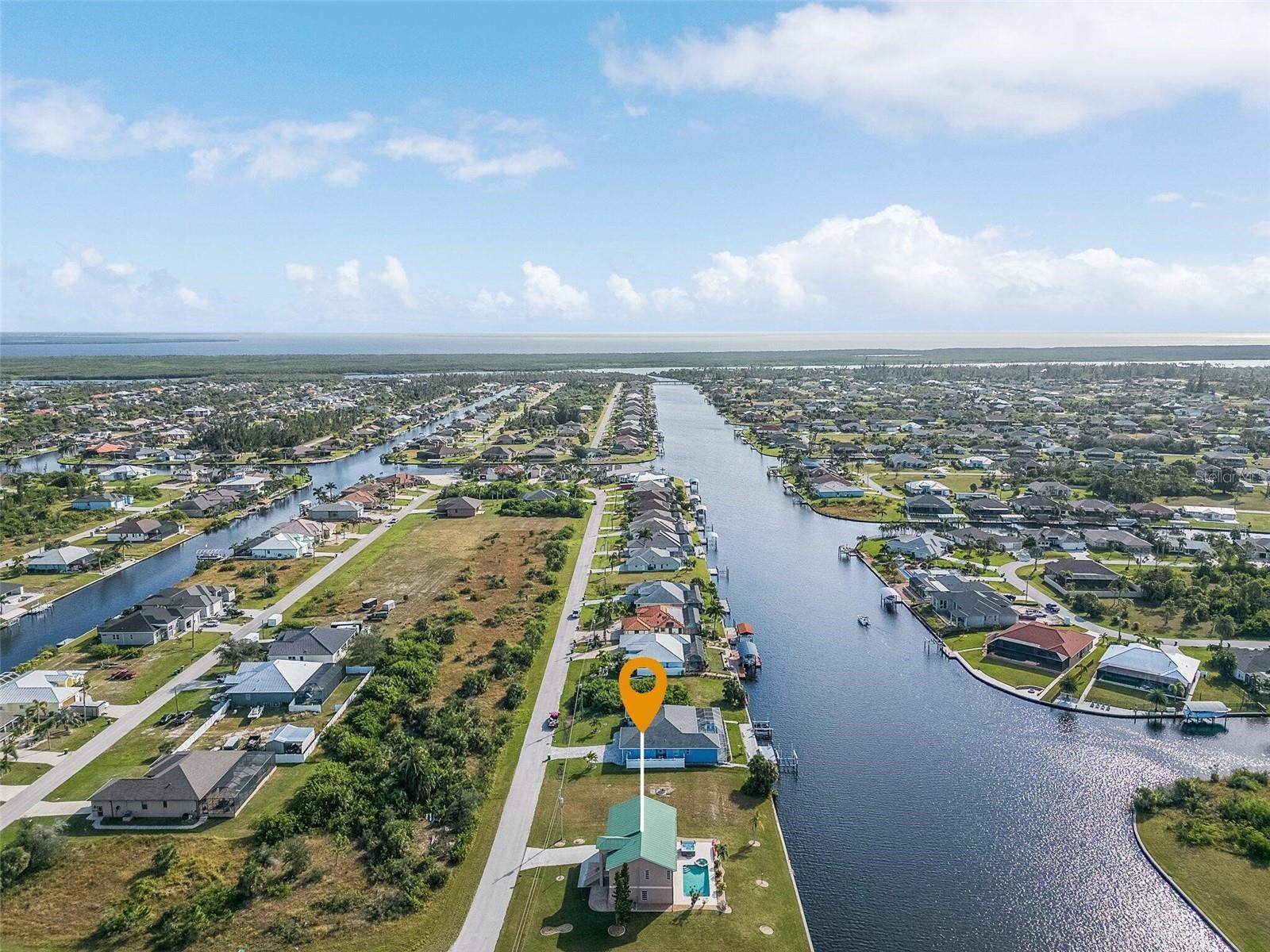 This CUSTOM RESORT STYLE HOME, has spectacle views and is user-friendly all year round inside and out. The upper level ENORMOUS windows provide you with 360 views insuring your views will never be blocked in the future. (No ranch style small windows here!) The vantage point on the second story will provide a unique outlook on life to the point as soon as you wake up you'll be smiling knowing no matter where you are in the home you'll have some nice scenery out your windows. The 8 person octagon spa flows over into your real size 14'x28' pool suitable for laps. Then after your workout just relax in the SIMPLY AMAZING 115 jet therapeutic luxury spa . In your backyard is an extra EXTRA wide intersecting waterway that has 88 feet of seawall assuring room to park your boat or have your own fishing spot. Leave in your boat and go east or west on your way to the Gulf of Mexico and you won't have to come back the same way. (Sorry no skinny dead end garbage collecting smelly water here) !!!!!!!! The depth of the water is controlled by a lock So the depth remains constant, allowing you to get your boat in and out at anytime !!!!!!! The yard has room for parking a trailer, rv or even a volleyball court. Ginormous? Heck YA,,,,Open up your 33 feet of pocketing sliders to give you an OPEN concept 1730 sq ft upper level. This unique style home allows for separate living areas if so desired. Live upstairs and rent downstairs or possibly an Airbnb or snowbird rental. The lower level scullery is ready for a kitchenette in case you desire separate living spaces. No Florida home is complete without the VERY MOST IMPORTANT FEATURE southern exposure!! You will be assured a user-friendly exterior environment whether in the penthouse or on the lower level. Outdoor activities are possible all year round and you will not be trapped inside behind your shades all day long. The upper outdoor area/ office provides a unique perspective on life while watching the boats navigate through the waters. (No wasted space walls here!!) The year round user-friendly southern exposure second level outdoor living area provides cool breezes in the summer and warmth in the winter. There are 55 miles of canals in your neighborhood just steps out your back door to explore in your kayak. Your choice, You may find yourself coming to Florida to explore but you may soon realize that your home has everything and you really don't need to go anywhere else. This custom style home is for those few individuals that can appreciate the finer things in life and take their own path. All updates now Included.