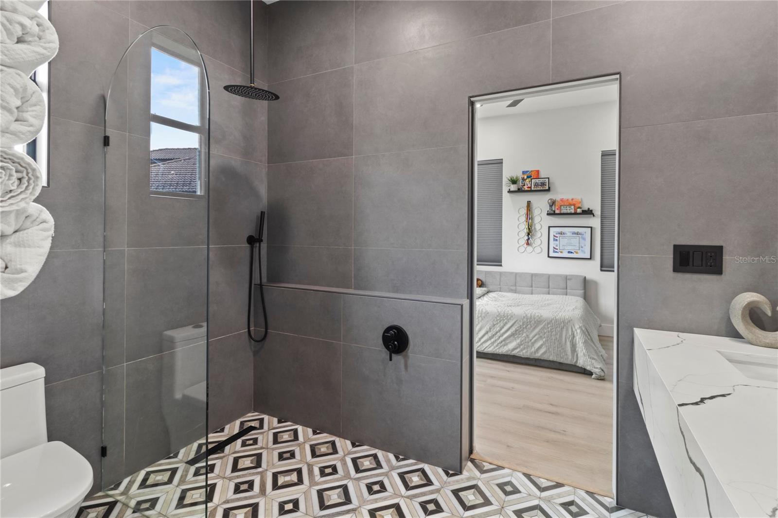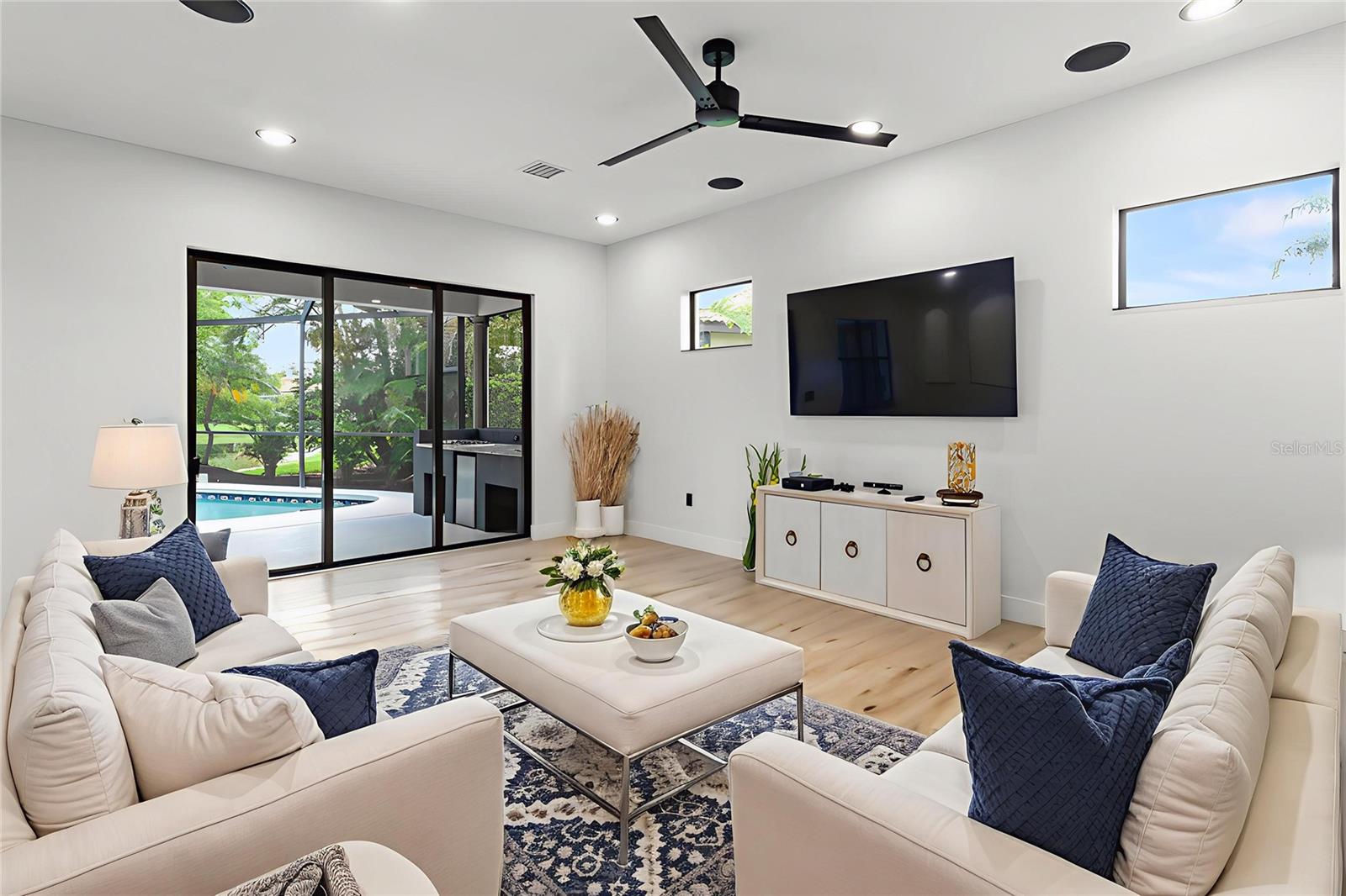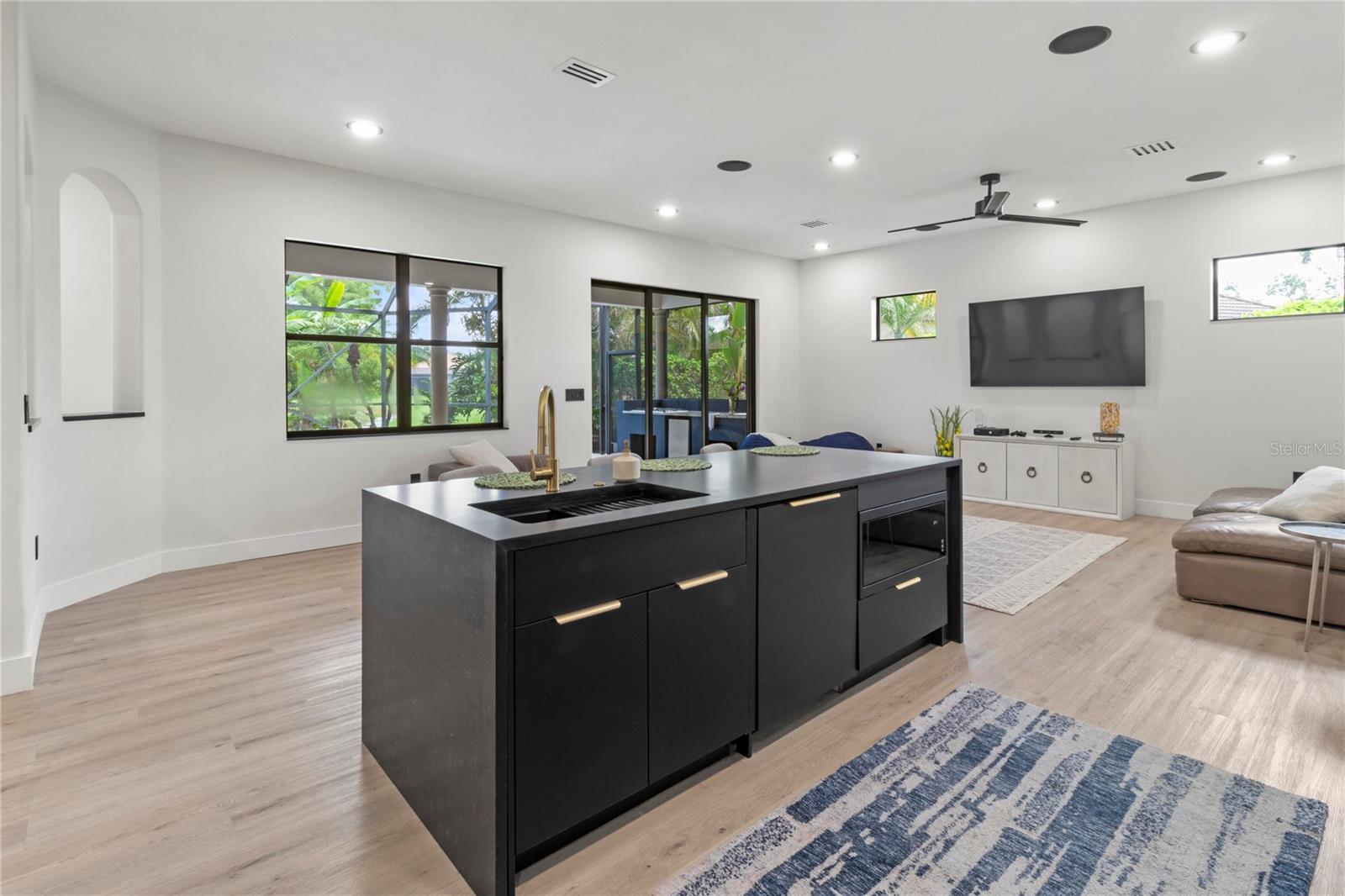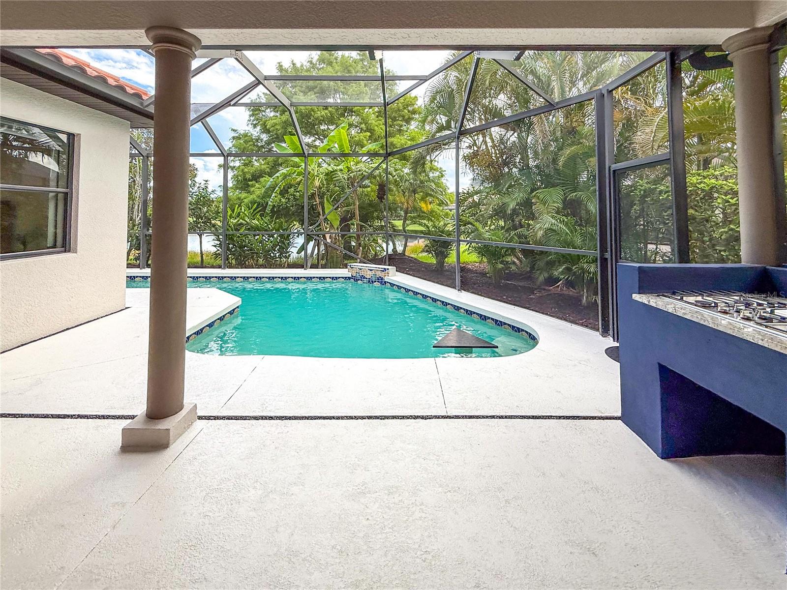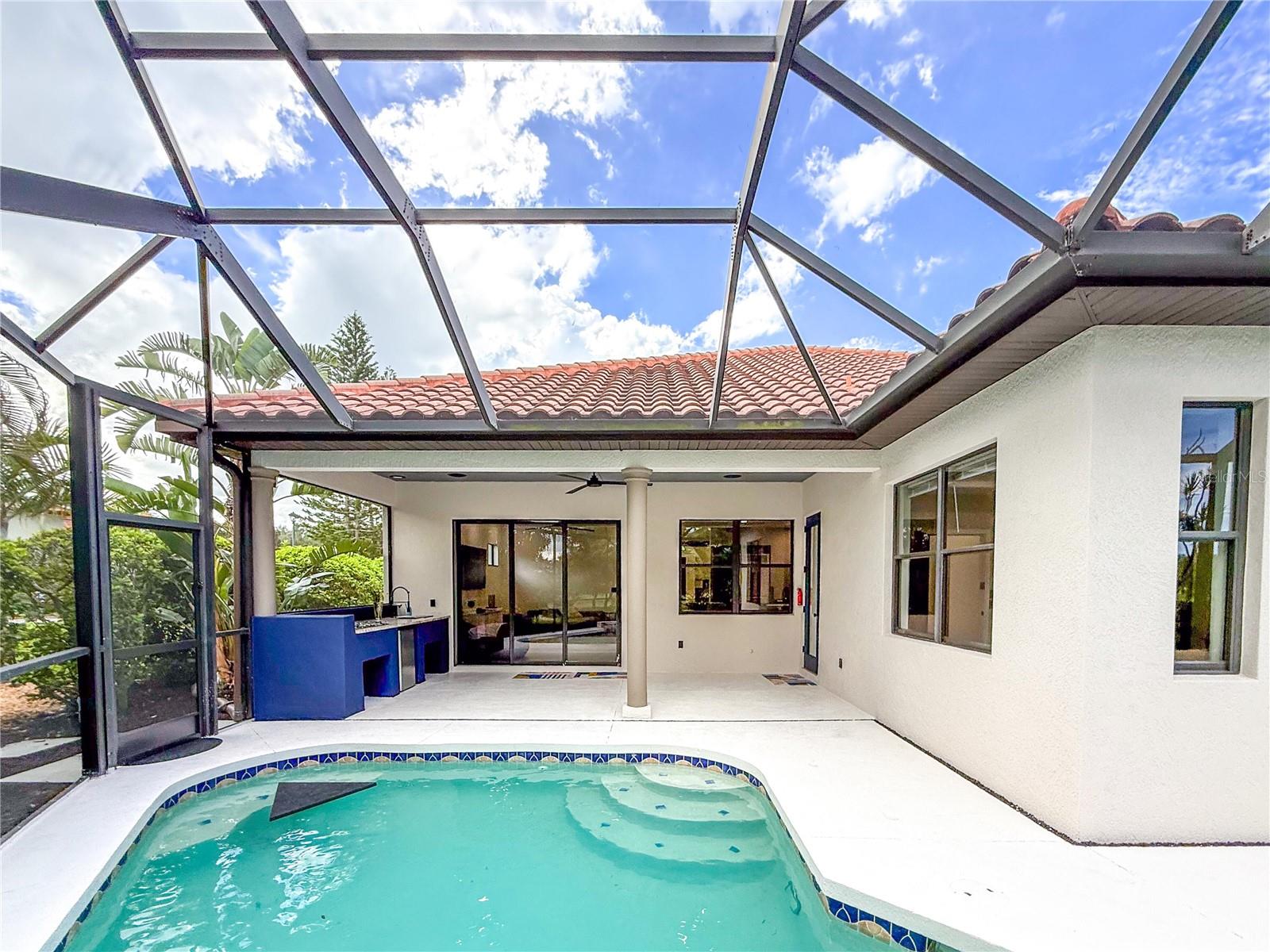 Exterior: Lighting, Outdoor Grill, Outdoor Kitchen, Outdoor Shower, Rain Gutters, Sliding Doors
