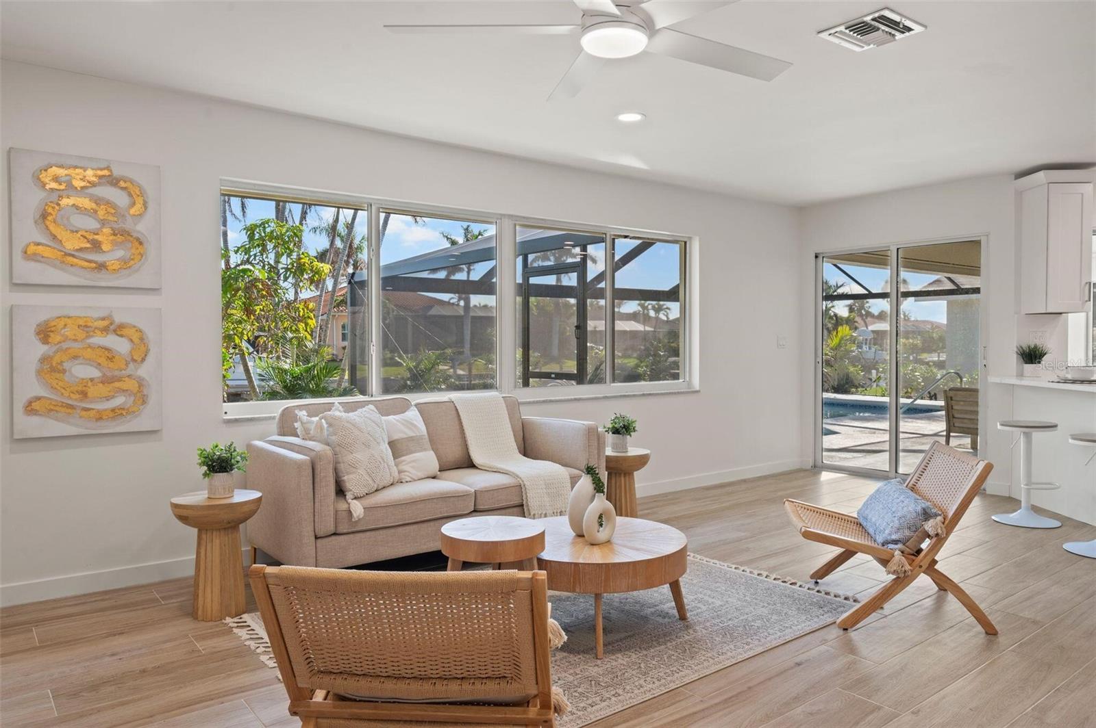 Flexible Options Available for Smooth transaction! Fully Renovated Luxury Waterfront Pool Home - Sailboat Access - No Bridges - NO FLOODINGExperience true Florida waterfront living in this beautifully renovated, move-in-ready Punta Gorda Isles home with direct sailboat access to open water in under a mile--no bridges, no waiting. Sitting high and dry on a saltwater canal, this property has never flooded and has been upgraded throughout with modern coastal finishes and long-lasting systems.Inside, enjoy NEW porcelain tile flooring, NEW A/C, NEW water heater, NEW hurricane-impact windows, NEW electrical panel, and NEW recessed lighting. The designer kitchen features custom cabinetry, quartz waterfall countertops and backsplash, stainless steel appliances, and a wine fridge. Both bathrooms were completely reimagined with marble herringbone tile, rainfall showers, soaking tub, and all-new vanities and fixtures.Step outside to your private oasis with a NEW 16' 28' heated pool, panoramic screen enclosure, and tiled lanai--an ideal space for relaxing or entertaining. Boaters will appreciate the 54' of waterfront, large cement dock with water and electric, and city-maintained seawall.Additional highlights include fresh interior and exterior paint, low-maintenance tropical landscaping, public water and sewer, and NO HOA. The durable tile roof provides excellent remaining life and recently completed maintenance for added peace of mind.All just minutes (or a quick bike ride) to downtown Punta Gorda's shops, dining, parks, and festivals, and a short drive to world-class beaches. This is luxury Florida living--updated, modern, and truly move-in ready. Sold AS-IS