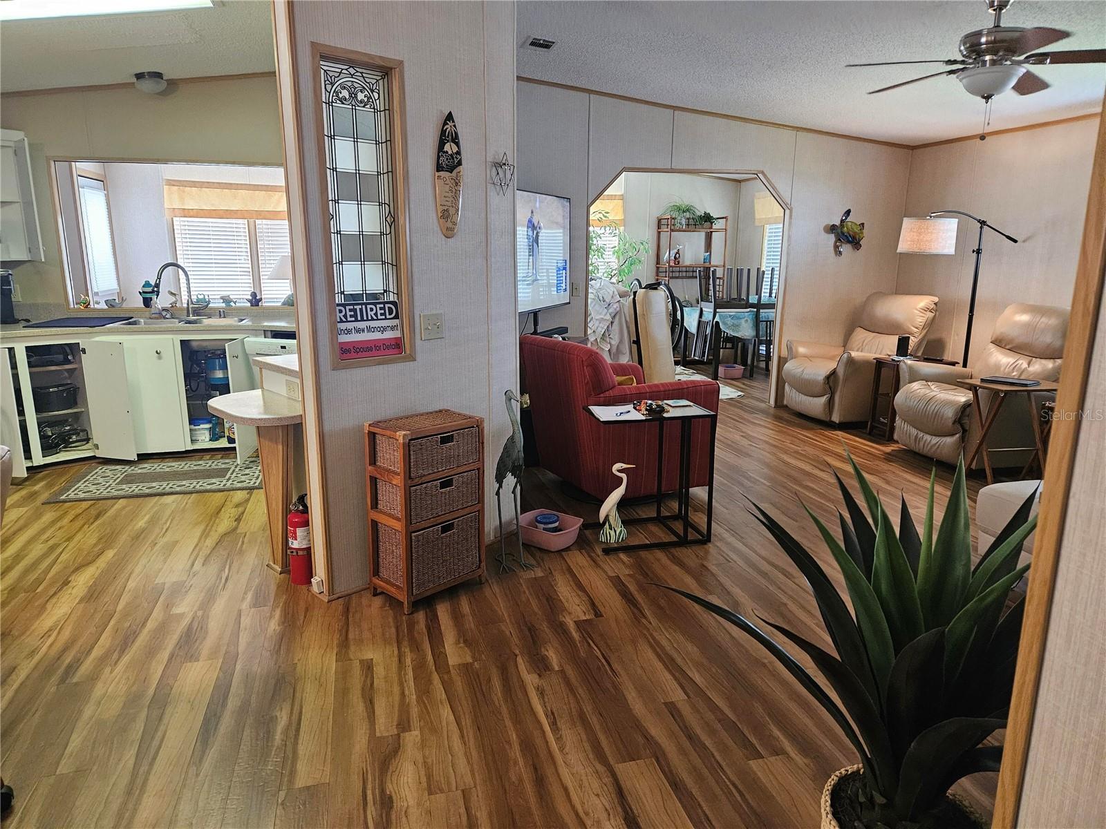 One or more photo(s) has been virtually staged. Welcome to 4904 4th C Street E ~Step into comfort and convenience with this spacious and beautifully maintained 2-bedroom, 2-bath home with 1414 square feet of living space located in the highly desirable Golf Lakes Estates, a vibrant resident-owned gated community. This property offers long-term peace of mind through a share certificate, giving you security without the typical homeownership headaches.Offered as-is with some furnishings included, this home is move-in ready and designed for low-maintenance, relaxed living.Interior Features:Two Convenient Entrances:- Front entry through a Florida room--complete with serving counter and sink.- Side entry under the carport, leading into the laundry room and guest bath for everyday ease and privacy.Attached Oversized Shed:- Double-door access ideal for golf cart storage or extra workspace.Luxury Plank & Tile Flooring throughout - stylish and easy to maintain.Modern Kitchen:- Sandstone-look countertops.- Includes dishwasher, refrigerator, microwave, stove.Dining Area:- Features a built-in hutch for added storage or display.Primary Suite:- Dual walk-in closets.- Spacious step-in shower--roomy enough for two.Guest Bathroom:- Offers a full-size tub for comfort and convenience.Additional features:Custom painted driveway.Ten minutes from Bradenton/Sarasota Airport (SRQ).Walking distance to grocery store.Community HighlightsLow HOA Fee includes: Water - Sewer - Garbage - Cable TV & Internet.Optional Add-Ons: Yard maintenance service available for an additional fee.Amenities Galore: Heated Pool & Jacuzzi Spa; 9-Hole Golf Course; Fitness Center; Pickleball; Shuffleboard; Lawn Bowling; 4 Stocked Lakes.Clubhouse Activities: Billiards, ceramics, cards, and more.Prime Location:Enjoy easy access to world-renowned Gulf beaches, top-rated medical facilities, and a variety of shopping and dining options--all just minutes away.Make It Yours Today!If you are looking for a Florida lifestyle, this home and community have everything you need. Come see what makes Golf Lakes Estates so special. Some photos have been virtually rendered.