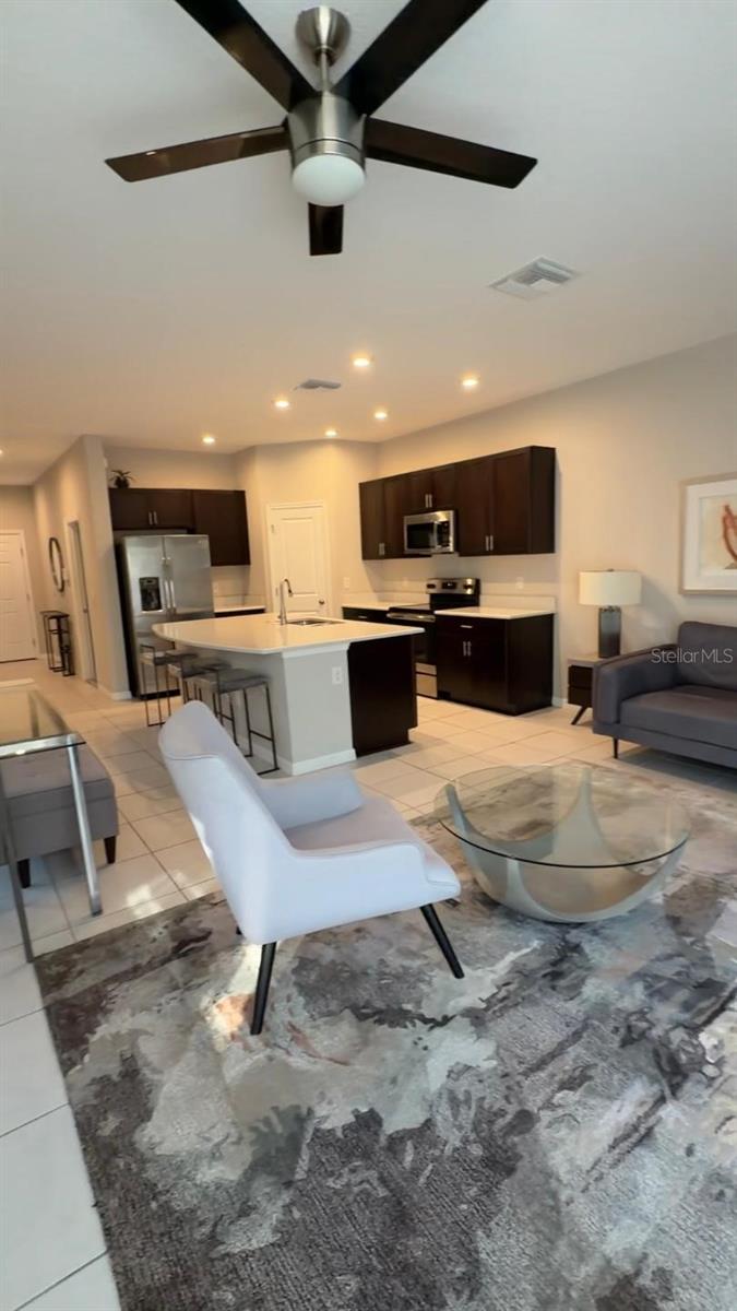 Former model home now available -- and it comes fully furnished, making it the perfect turnkey opportunity for homeowners and investors alike. This beautifully upgraded 3-bedroom, 2.5-bath end-unit townhome with a 1-car garage is located in the highly sought-after Artisan Lakes community. The Marigold floor plan offers an elegant open-concept layout, filled with natural light and stylish finishes throughout.The gourmet kitchen is a true highlight, featuring quartz countertops, 36-inch espresso cabinetry, and a layout that flows seamlessly into the spacious great room. Large sliding glass doors open to a private patio with no rear neighbors, offering peaceful conservation views and exceptional privacy. Downstairs flooring is finished with Mohawk Level II ceramic tile, adding both durability and sophistication.Upstairs, the primary suite is a peaceful retreat with an oversized walk-in closet and a luxurious en-suite bath with dual sinks. Two additional bedrooms and a full bathroom provide ample space for family or guests. A hallway laundry closet houses the washer and dryer and includes added shelving for convenience. An additional hall closet offers even more storage, perfect for linens or seasonal items. Other highlights include a walk-in pantry, under-stair storage, split floor plan, ceiling fans, and cozy carpeted flooring upstairs that enhances the comfort of this inviting home.This property sits on a premium homesite backing to lush conservation and is part of a low-HOA, no-CDD community. Artisan Lakes offers a relaxed Florida lifestyle with amenities including a sparkling pool, clubhouse, grilling area, and even cornhole boards for weekend fun. The neighborhood is quiet, friendly, and perfectly located in a fast-growing area with easy access to I-75 and I-275, plus a variety of nearby restaurants, shops, and conveniences.Whether you're looking for a primary residence, second home, or fully furnished rental investment, this property checks every box. Impeccably maintained and move-in ready, homes of this quality and location are in high demand. Don't miss your chance -- schedule your private tour today.