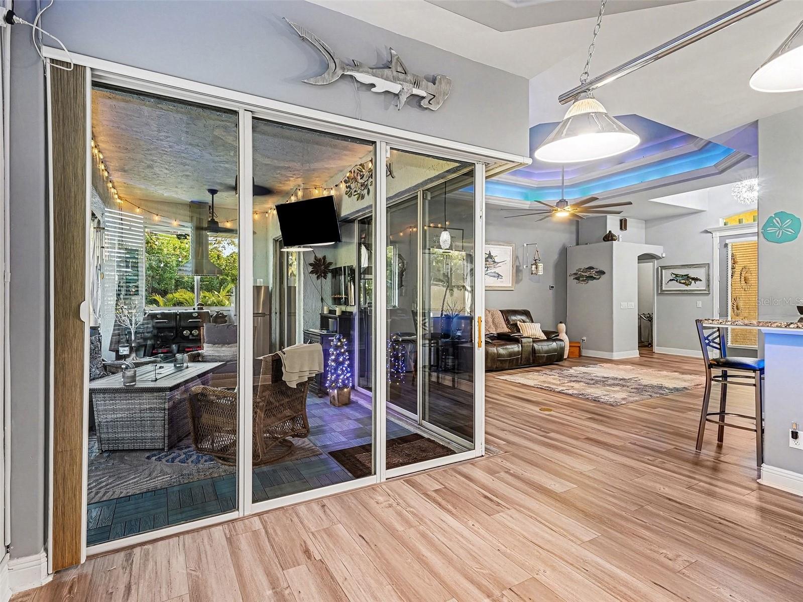 One of-a kind North Port home offering exceptional upgrades and outdoor living. Major improvements include a new roof and windows (2024), updated AC and water heater (2023), and newer appliances throughout. This west-facing residence features granite countertops, soft-close cabinetry, a breakfast bar, a double convection oven, tray and coffered ceilings, built-in shelving, and zero-corner sliding glass doors, along with upgraded luxury vinyl flooring throughout the home. The primary suite offers two walk-in closets, double sinks, and a walk-in shower with dual heads. Additional highlights include a screened front porch, two-car side-entry garage with AC vent, generator hookup, Ring cameras, washer and dryer included, and city water and sewer. The fully fenced backyard is designed for entertaining with a saltwater above-ground pool, hot tub, outdoor fireplace, firepit, and lanai lighting. Conveniently located less than five miles from I-75 and minutes from schools, shopping, dining, beaches, and US-41.