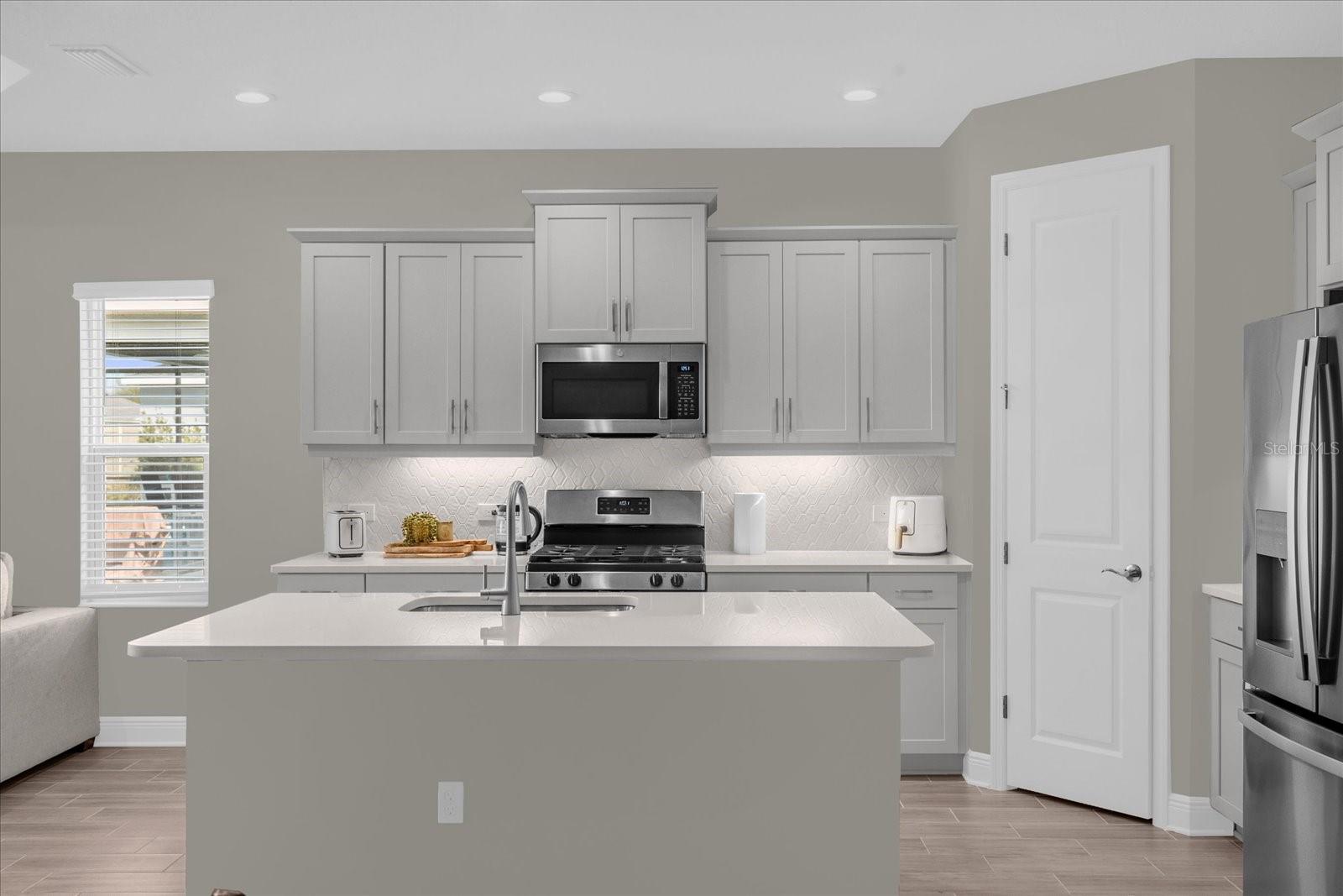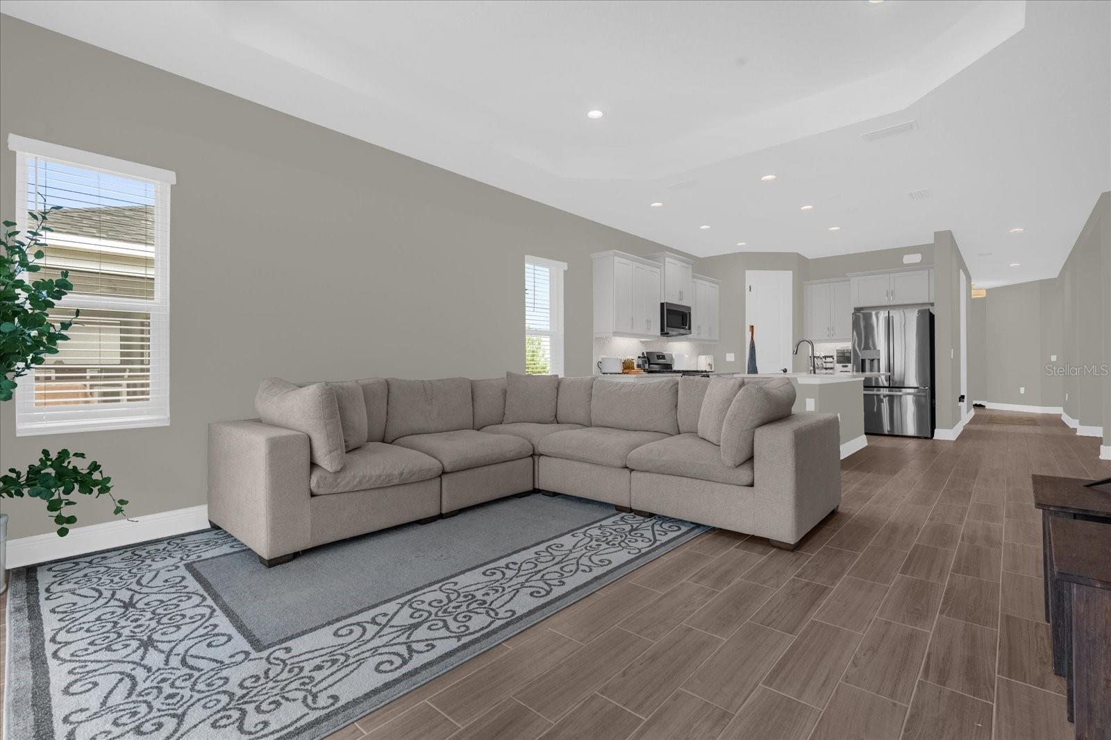 Step into a home that effortlessly blends style, comfort, and functionality--perfectly designed for the way you live today.This spacious 3-bedroom, 2-bath residence with a private office/den (featuring elegant French doors) offers the flexibility you need, whether you're working from home, hosting guests, or creating your ideal retreat. From the moment you walk in, you'll notice the elevated finishes that set this home apart--wood-like tile flooring flowing seamlessly in the common and wet areas, a stunning tray ceiling that adds dimension to the family room, and an abundance of natural light pouring in through the expansive 3-panel sliding glass doors. The heart of the home is the beautifully appointed kitchen, complete with a generous size walk in pantry, sleek quartz countertops that provide both durability and modern appeal--perfect for everyday living and entertaining alike. Step outside and unwind in your oversized screened lanai, creating the ideal space for morning coffee, weekend gatherings, or simply enjoying Florida living year-round. The epoxied garage adds both style and practicality, giving you a clean, polished space for storage or hobbies. Located in a sought-after gated community with NO CDD, you'll enjoy access to resort-style amenities including pickleball courts, a clubhouse, community center, dog parks, and a sparkling resort-style pool--bringing leisure and lifestyle right to your doorstep. Schedule your private showing today and experience it for yourself.
