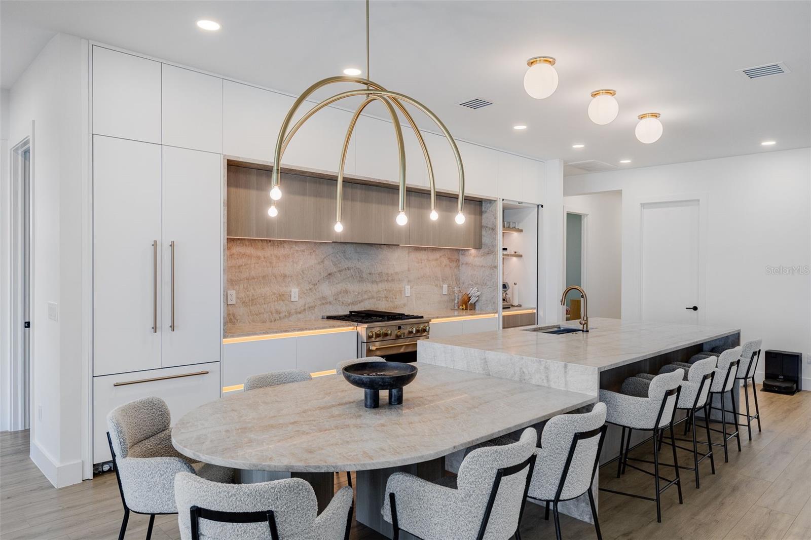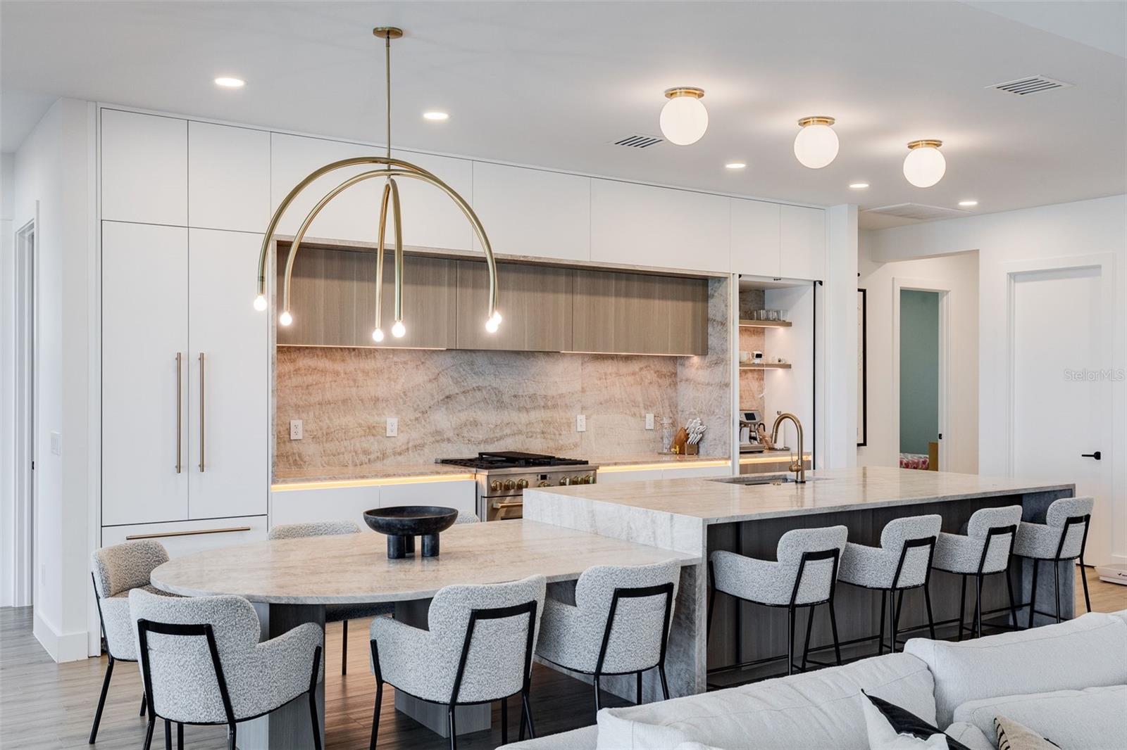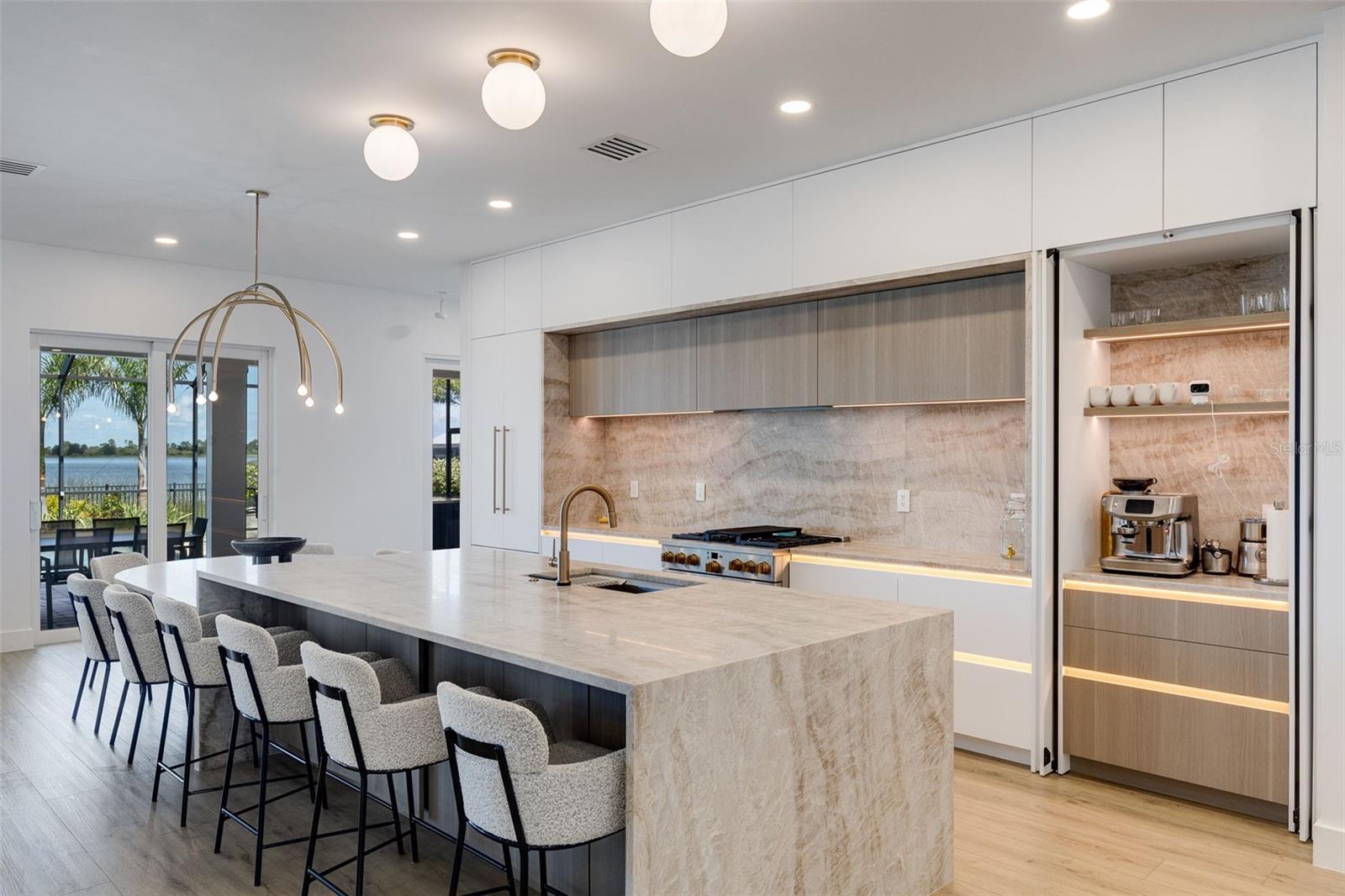 Stunning lakefront residence in Lake Babcock Estates, one of Babcock Ranch's most desirable enclaves. Enjoy sweeping water views and direct sightlines to Founder's Square from your own backyard.This fully renovated 3-bedroom + den home features a custom chef's kitchen with Taj Mahal brushed quartzite countertops, panel-ready Fisher & Paykel appliances, and sleek, European-imported custom cabinetry. The open-concept design is tailored for modern living, offering a seamless indoor-outdoor flow perfect for entertaining.Thoughtfully upgraded throughout, the home includes a new 5-ton A/C system, pool water heater, tankless water heater, Tesla charger, and high-end plumbing fixtures.A rare opportunity to own a premium waterfront homesite in America's first solar-powered town.