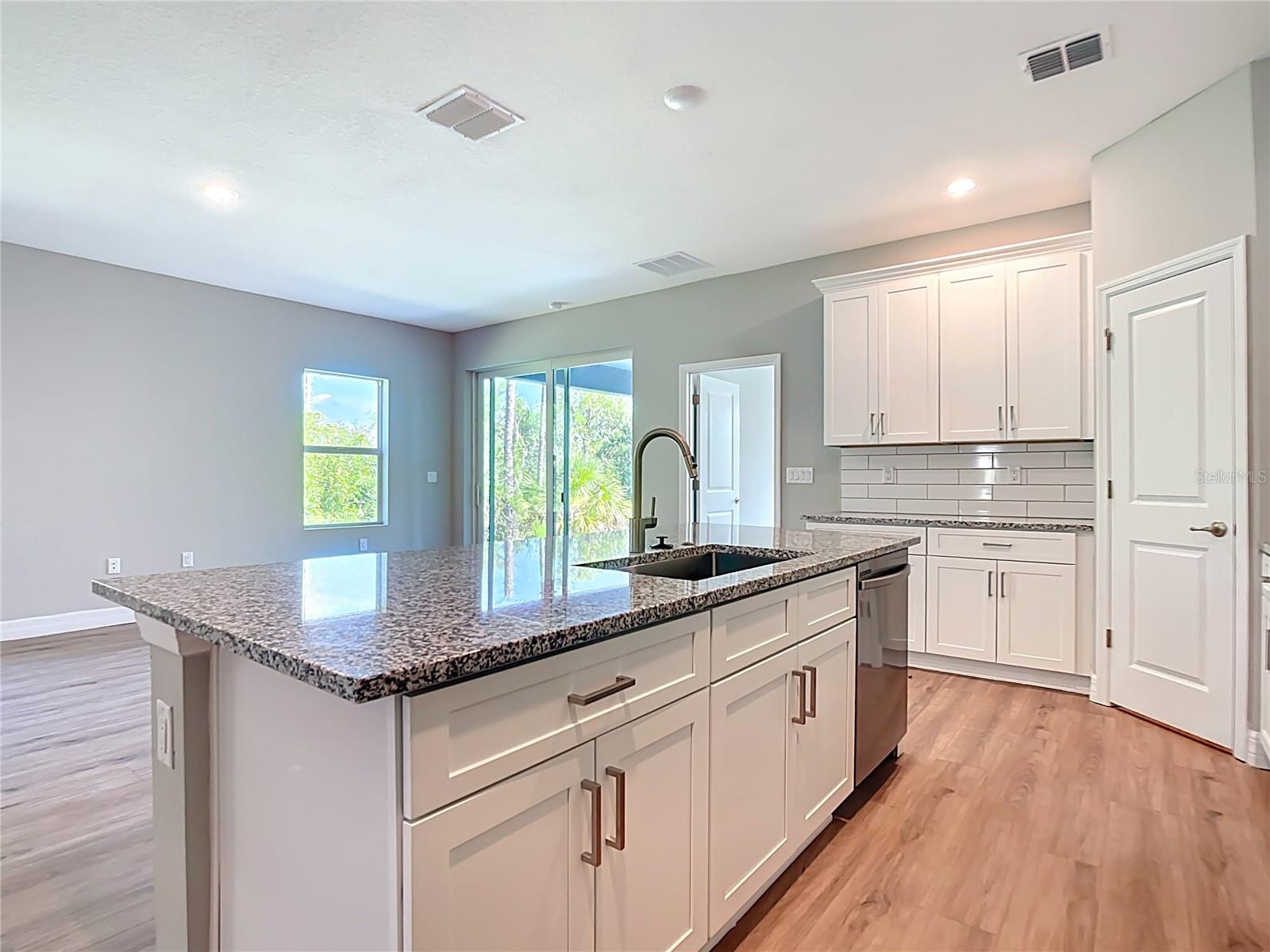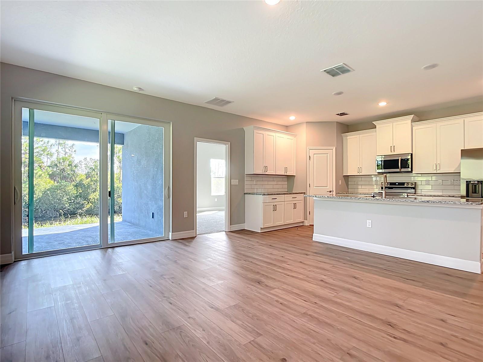 NEW CONSTRUCTION - Completed, move-in ready! This concrete block 4-bedroom 3-bathroom 2 car garage home has 80 ft canal frontage and is not in a Flood Zone. This home boast a modern design with high ceilings and features an open spacious floorplan design. With an awesome gourmet-inspired kitchen that features white cabinets with a large center island and subway backsplash and upgrades that include Stainless-steel Samsung appliance package with washer and dryer. Luxury wood-vinyl flooring throughout the common areas. A spacious master bedroom with tray ceilings, two walk-in closets, a private bathroom with dual vanity area, and large open walk-in shower. Front bedroom with bathroom is perfect for a guest room, mother in-law suite, or office. Home also features indoor laundry room connecting the attached garage, water softener, double pane windows, and sliding glassdoor that lead out to the open lanai. This brand new home is a must see.
