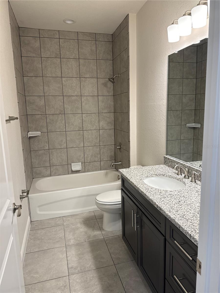 REDUCED PRICE!! MOVE IN READY! New construction. This 3 bedroom home has spacious rooms with an open/split floor plan. The kitchen has a granite countertop. Breakfast bar compliments the kitchen as an open concept. There are sliding glass doors from the great room which leads to the porch. The split bedroom plan has a primary bedroom which features a walk in closet, walk in shower, double sinks and garden bathtub. The home has a separate laundry room with a granite countertop and cabinet space situated between the kitchen and 2 car garage.