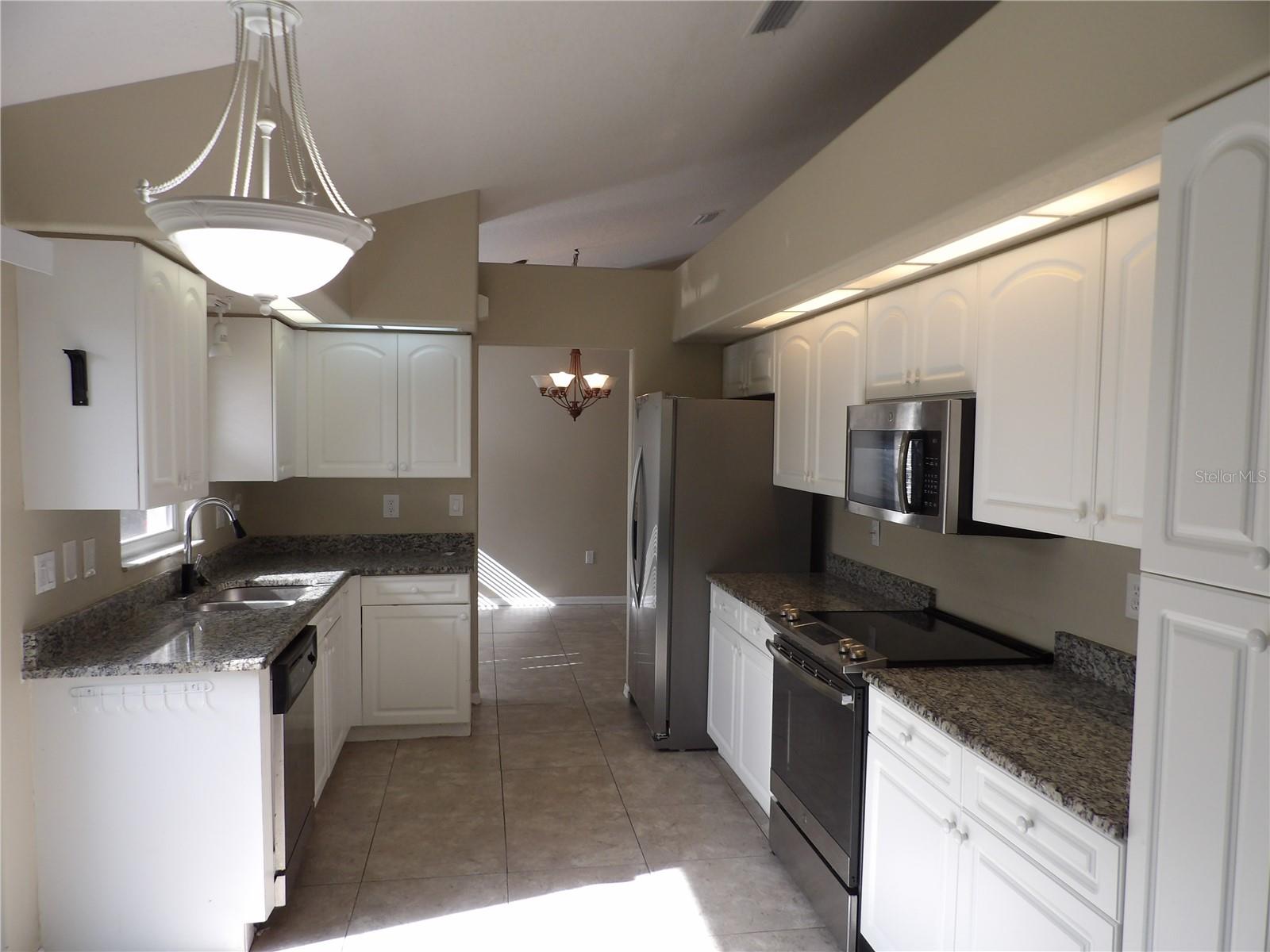 Significant price reduction! Discover this charming 3-bedroom, 3-bathroom home nestled in a serene community. Complete with a Clubhouse, Community Pool, and Tennis courts, it's situated on a peaceful cul-de-sac. Golf carts are welcome in this friendly neighborhood. The home boasts high, expansive ceilings throughout, enhancing its spacious feel. The large primary bedroom features two walk-in closets and an en suite bathroom equipped with dual sinks, a shower, and a garden tub. Stone countertops adorn the kitchen and bathrooms, adding a touch of elegance. The second bedroom comes with a private en suite bathroom, while the third bedroom has easy access to the guest bathroom. The kitchen offers ample space and is equipped with a new stainless refrigerator and stone countertops. The home's bright and airy ambiance is complemented by full tiling, with new carpeting in the bedrooms for added comfort. An inside laundry room leads to a two-car garage. Sliding doors open to an enclosed porch and an expansive screened patio. Currently vacant, this home is ready for a swift sale. The owner is open to considering a lease purchase (not lease option).This tranquil abode promises a quiet and relaxing lifestyle, just a short stroll from the clubhouse and pool, tennis court, and close proximity to numerous stores, restaurants, and healthcare facilities.Welcome to sunny Florida!