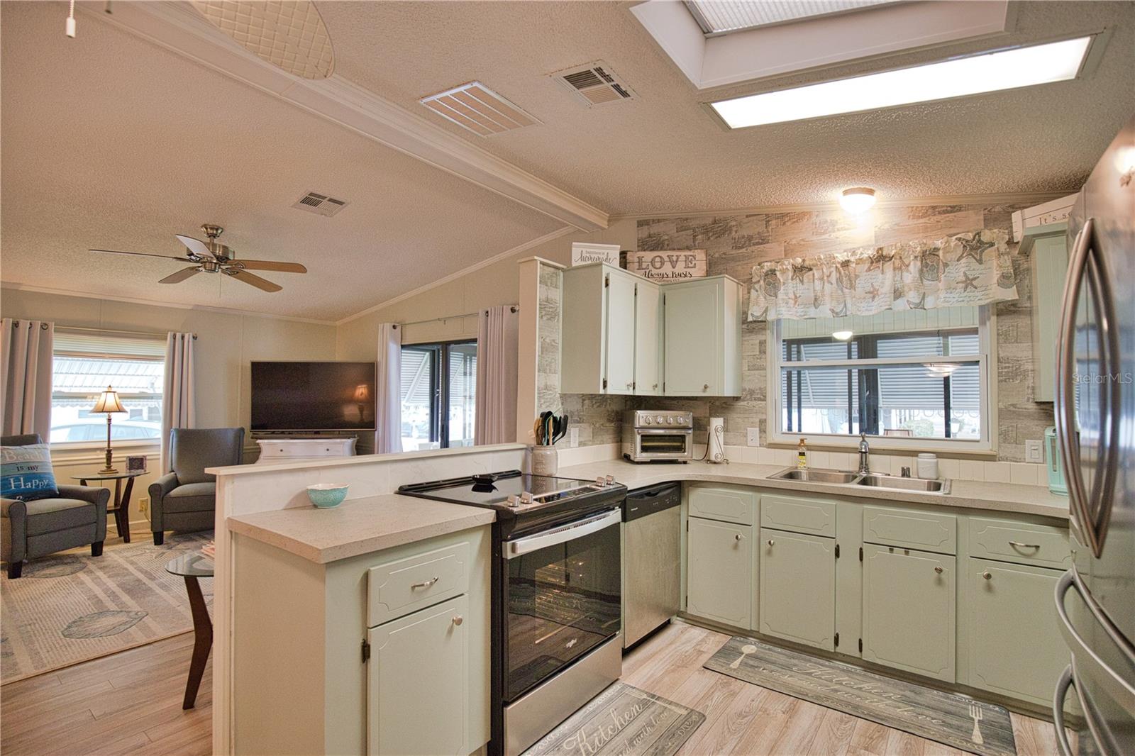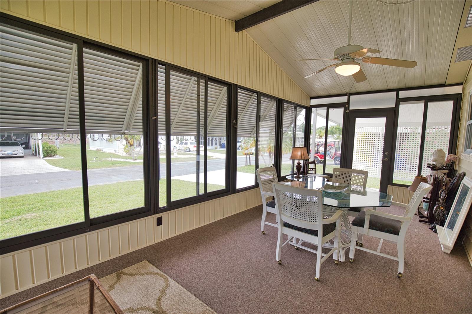Step inside this captivating 2-bedroom, 2-bath gem, where an open floor plan greets you. The remodeled kitchen shines with a pantry, a skylight that bathes the space in natural light, modern appliances, and a convenient pass-through window that connects to the cheerful Florida room. The elegant dining room features a built-in hutch, while the living room, with its sliding door, opens to a sprawling acrylic-enclosed Florida room measuring 10' x 24', adorned with front awnings and a door leading to the carport. Retreat to the primary bedroom, which includes both a walk-in closet and an additional spacious double closet. Its remodeled dressing area features a stylish double-sink corner vanity and a dedicated dressing table, complemented by a solar tube skylight for an inviting ambiance. The primary bath boasts an indulgent walk-in shower and elegant luxury vinyl flooring. The guest bedroom, complete with a generous walk-in closet, offers a comfortable retreat. The beautifully updated guest bath showcases a new vanity top, a new commode, luxurious vinyl flooring, and a delightful solar tube skylight. A handy linen/utility closet is conveniently located in the hallway. With luxury vinyl flooring and new subfloors throughout the kitchen, dining room, hallway, and partially in the living room, this home exudes both style and comfort. The newly replaced windows enhance the brightness, while the vaulted ceilings in the kitchen, dining room, living room, and primary bedroom create a sense of openness and elegance. Recent upgrades ensure peace of mind, including a new water heater (October 2022), a new electrical panel box (December 2018), and a new AC unit (July 2022). The property's well-planned enhancements also involve replaced tie downs, new vapor barrier, and floor insulation just completed in 2025, along with a humidistat and ceiling fans for added comfort. Outside, a beautifully painted concrete driveway leads you to a spacious screened lanai and a utility room equipped with a washer, dryer, and ample storage. With a host of thoughtful upgrades and charming features, this lovely home is your ticket to tranquility on a picturesque street in La Casa. Discover the ultimate lifestyle on Florida's stunning Gulf Coast, perfectly nestled between the vibrant communities of Sarasota and Fort Myers, with convenient boat access to the sparkling waters of the Gulf. Welcome to La Casa, a serene 55+ community that boasts 974 charming homes, enveloped by lush native trees and beautiful common areas that showcase eight delightful lakes. Embrace the Good Life! This vibrant community offers abundant recreational opportunities, including two inviting clubhouses and two heated pools, ensuring there's never a dull moment for residents seeking both relaxation and adventure. Embrace your dream lifestyle today!