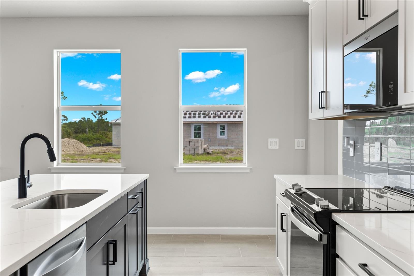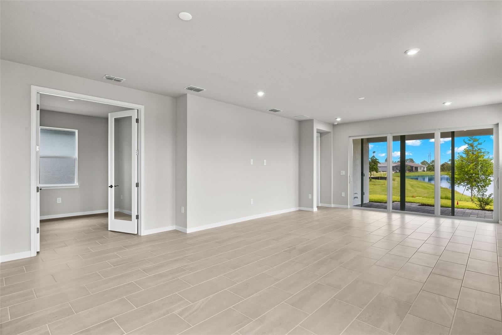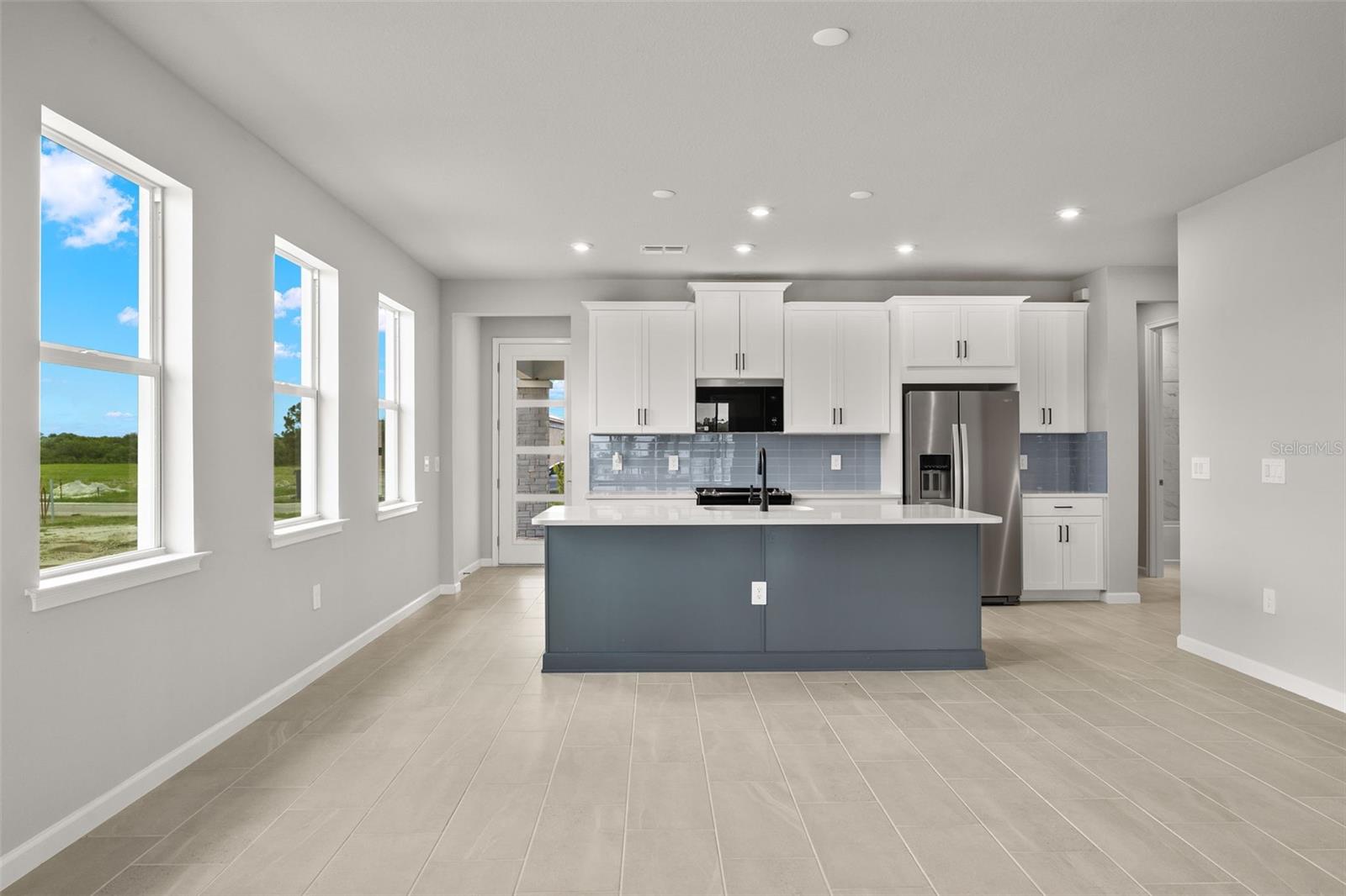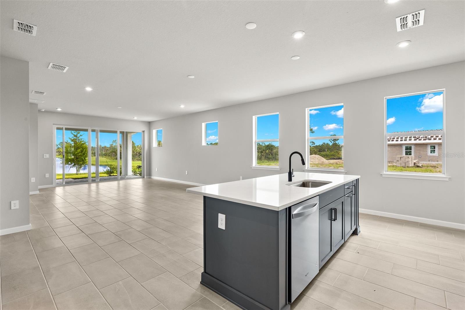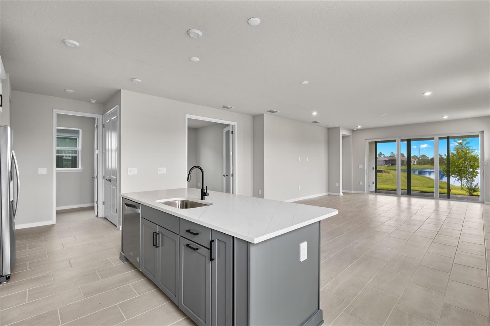 The Coral is a single-family home design with 1,611 sq. ft. of open and airy living space situated on a water homesite. The layout has plenty of natural light and timeless, modern styling to make both everyday living and special gatherings brilliant and memorable. The designer-coordinated kitchen, dining area, and Great Room overlook the covered lanai which boasts an outdoor kitchen pre-plumb. This exquisitely planned kitchen features dual-colored cabinets with a rich Boulder on the island and bright Linen on the perimeter cabinets. Marble styled quartz countertops in Calacatta Ultra brings out the color of the island and ties the kitchen together along with the glass tiled backsplash. A study provides a versatile living space to use as you please. The owner's suite has a private bath with a dual sink raised vanity, linen closet and spacious walk-in closet. The lanai is accessible from the Great Room through the oversized 12' sliders. This allows views all the way from the kitchen. The garage has a four-foot extension for all of your storage needs. The home also includes impact windows and a smart home tech package. Photos, renderings and plans are for illustrative purposes only, and should never be relied upon and may vary from the actual home. The photos are from the home offered for sale.