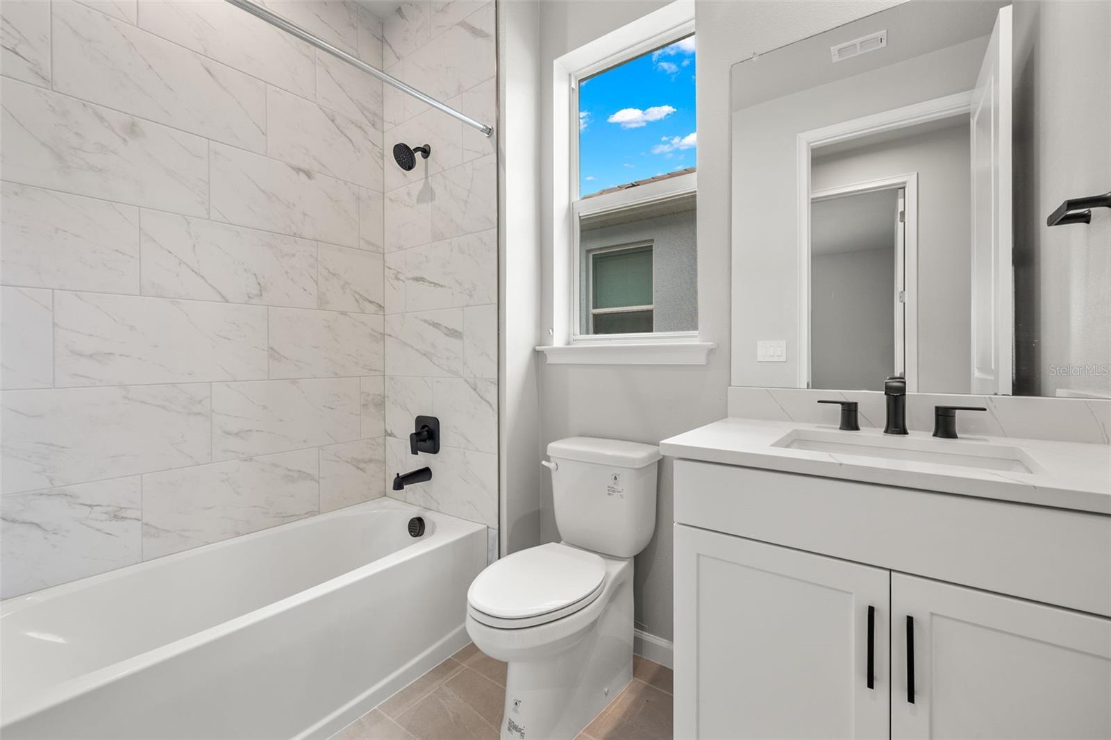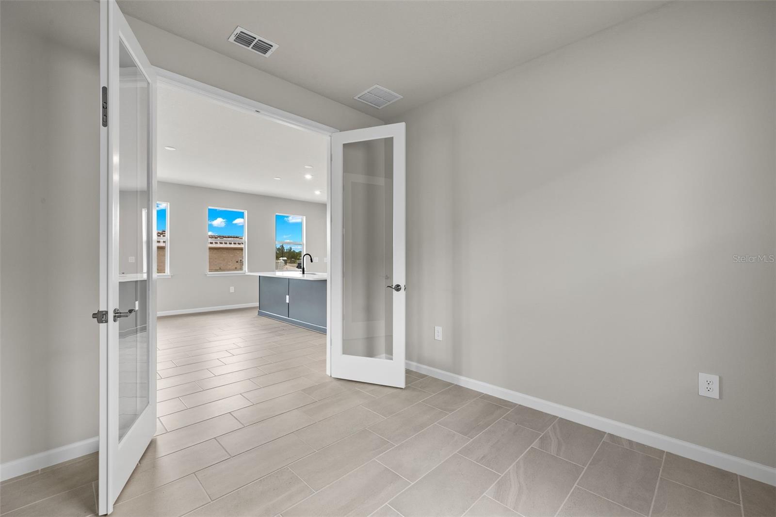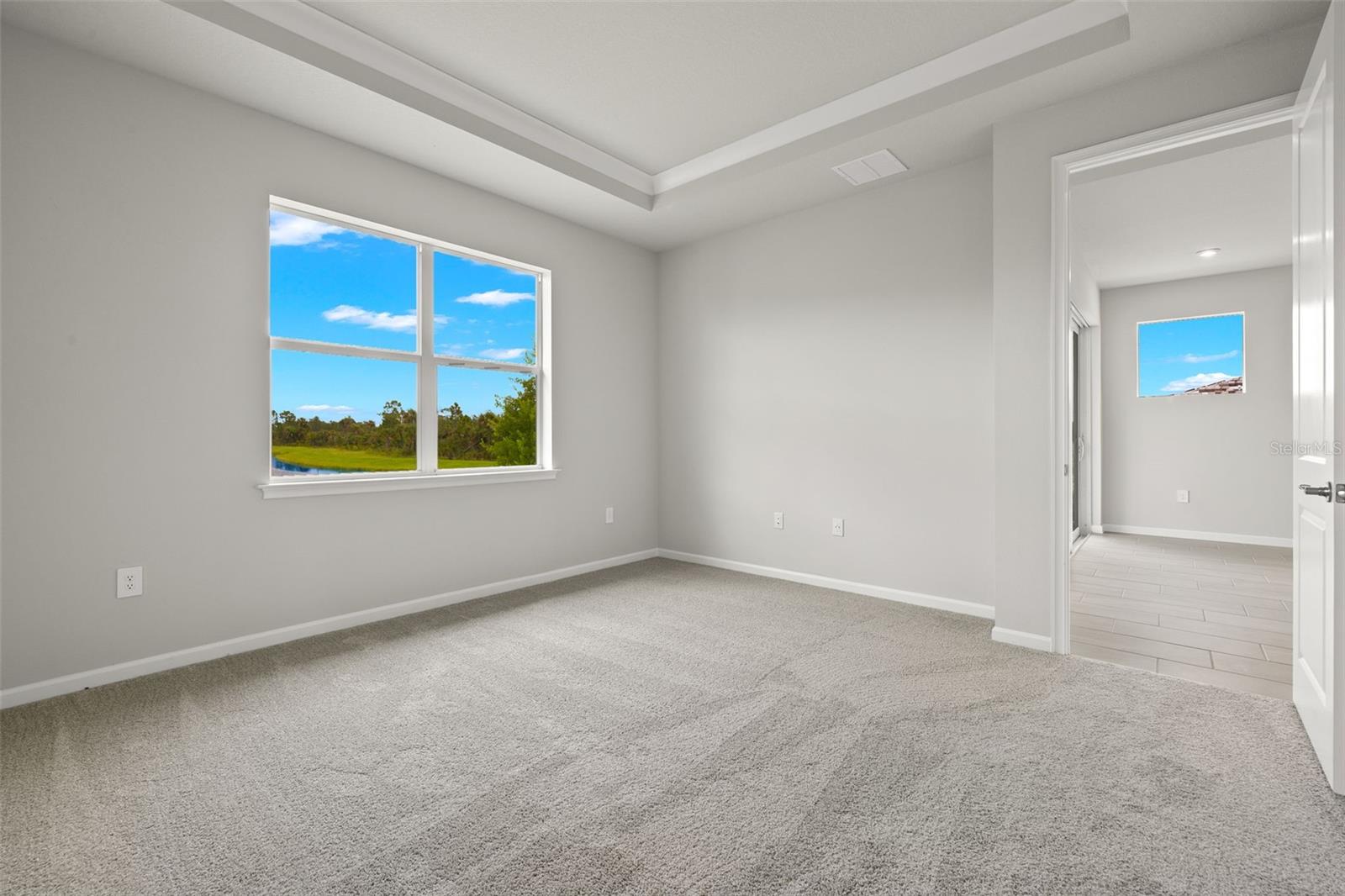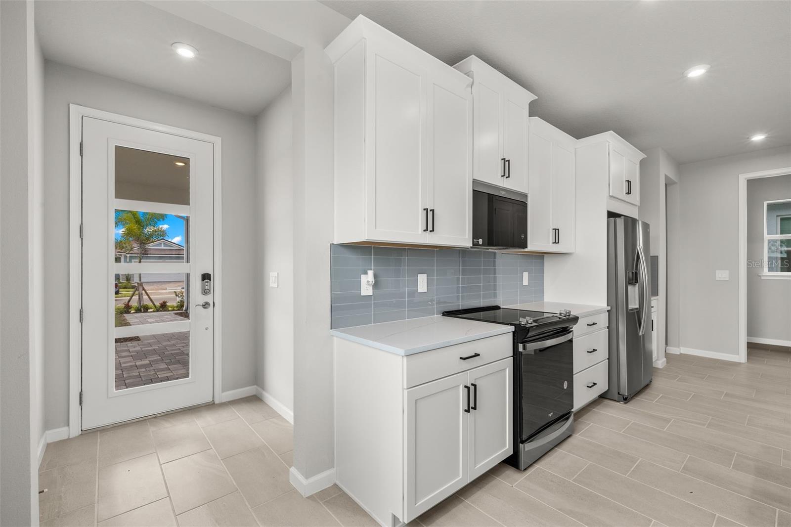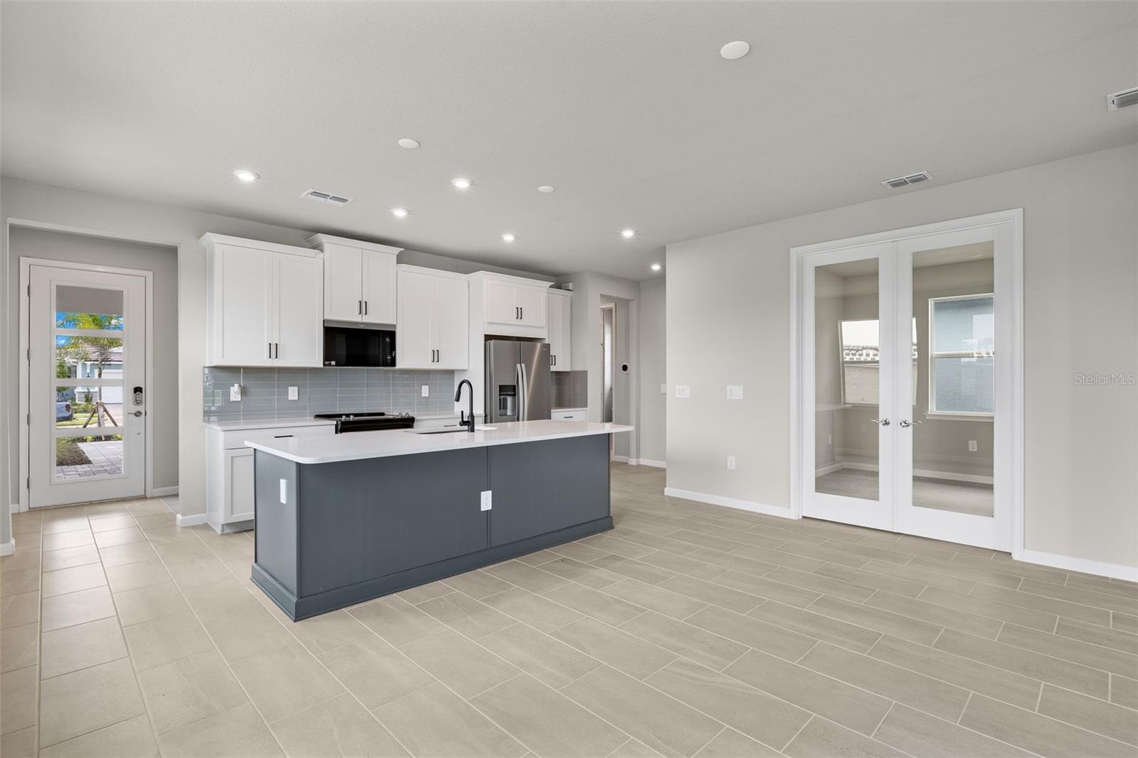 The Coral is a single-family home design with 1,611 sq. ft. of open and airy living space situated on a water homesite. The layout has plenty of natural light and timeless, modern styling to make both everyday living and special gatherings brilliant and memorable. The designer-coordinated kitchen, dining area, and Great Room overlook the covered lanai which boasts an outdoor kitchen pre-plumb. This exquisitely planned kitchen features dual-colored cabinets with a rich Boulder on the island and bright Linen on the perimeter cabinets. Marble styled quartz countertops in Calacatta Ultra brings out the color of the island and ties the kitchen together along with the glass tiled backsplash. A study provides a versatile living space to use as you please. The owner's suite has a private bath with a dual sink raised vanity, linen closet and spacious walk-in closet. The lanai is accessible from the Great Room through the oversized 12' sliders. This allows views all the way from the kitchen. The garage has a four-foot extension for all of your storage needs. The home also includes impact windows and a smart home tech package. Photos, renderings and plans are for illustrative purposes only, and should never be relied upon and may vary from the actual home. The photos are from the home offered for sale.