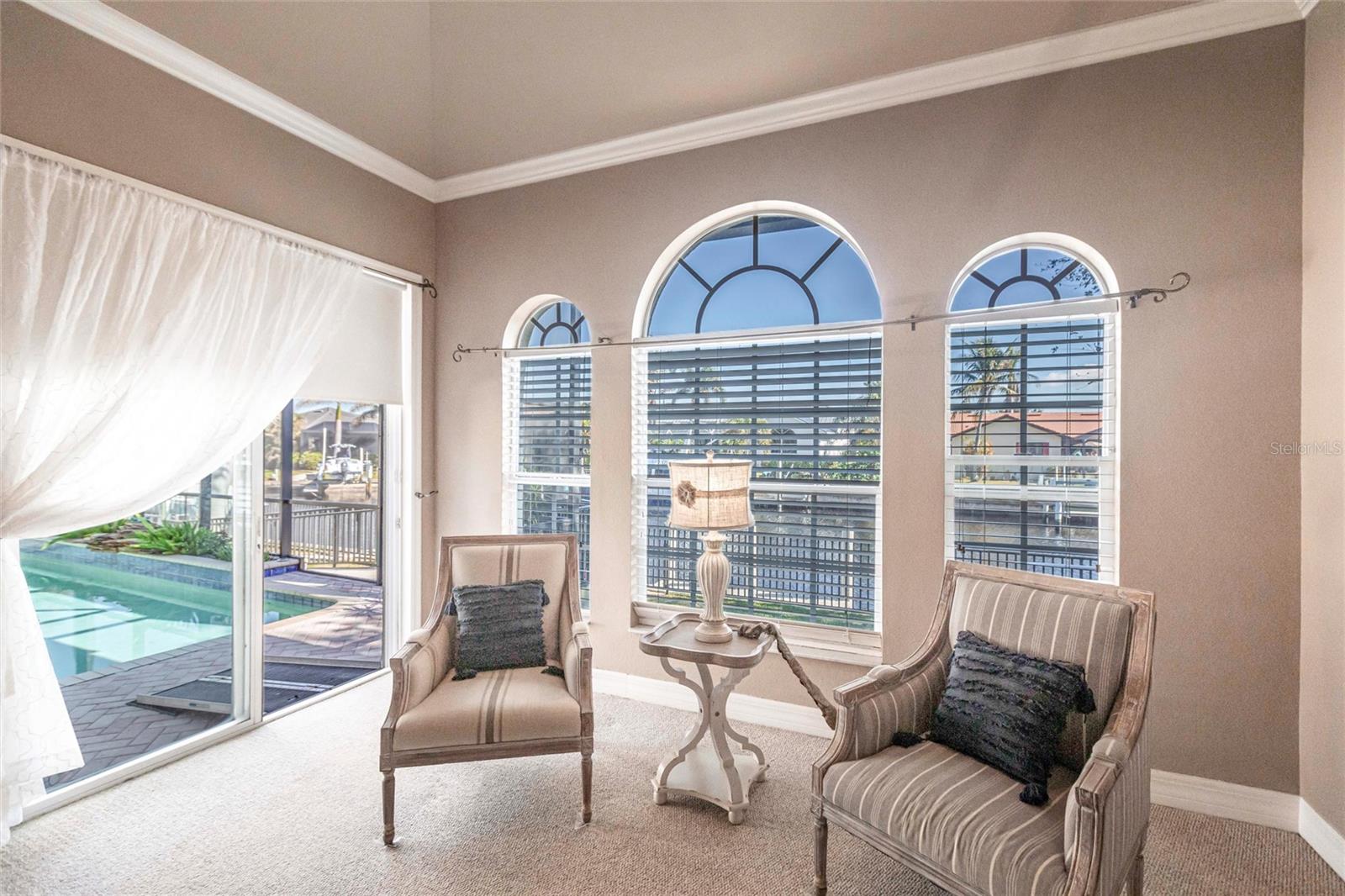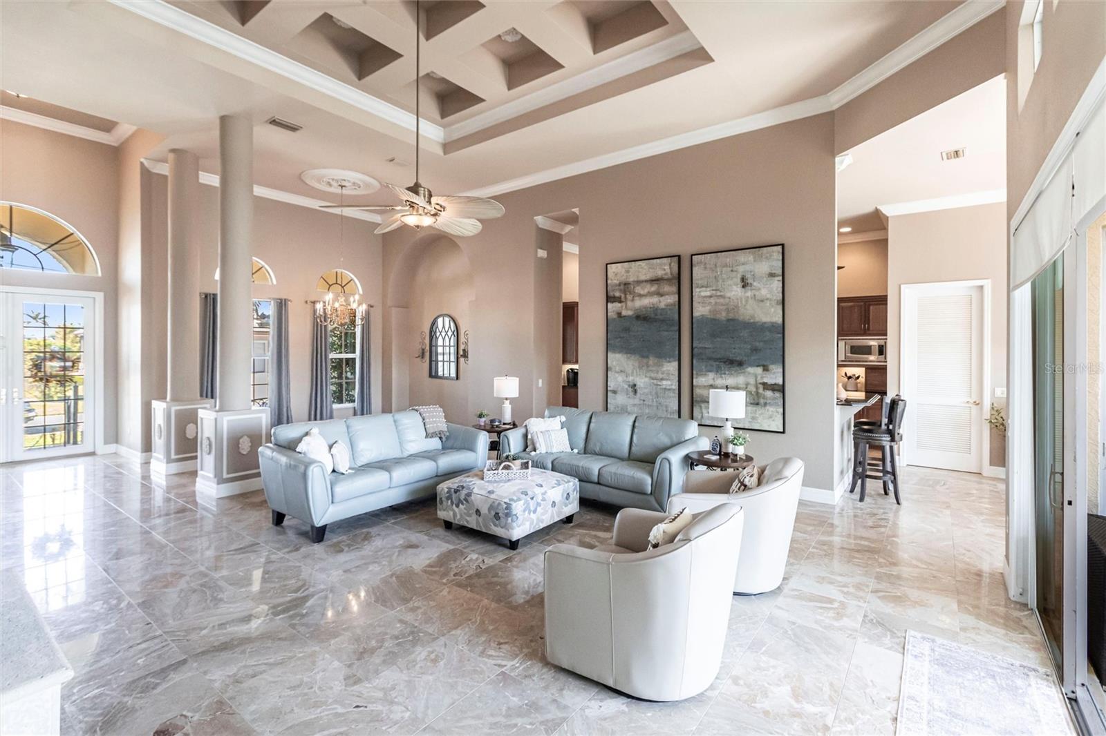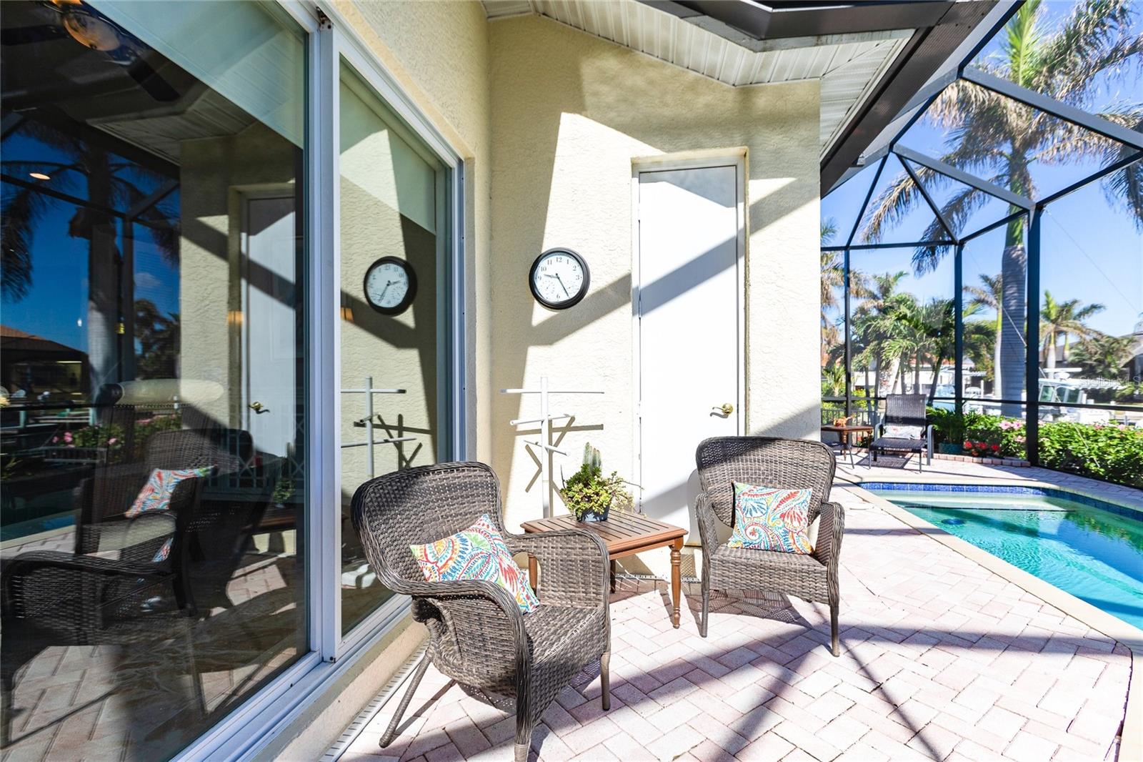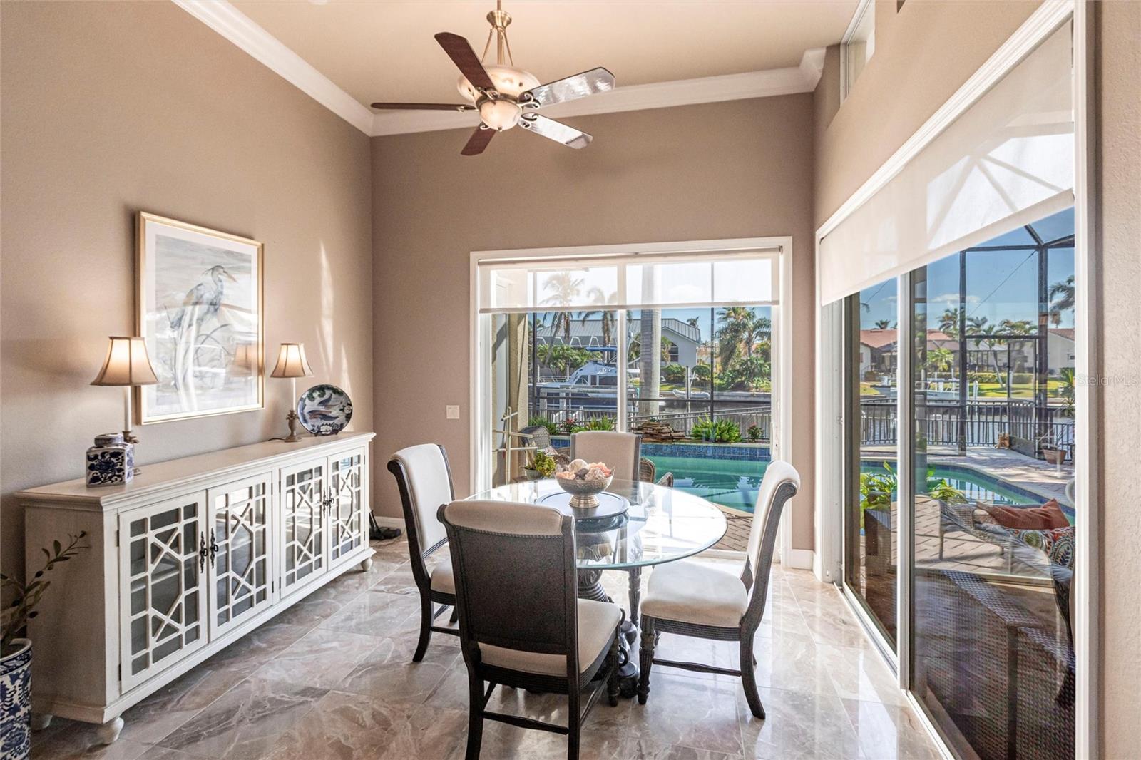 **Experience Waterfront Elegance and Boating Bliss** Indulge in the ultimate waterfront lifestyle with this luxurious 3-bedroom, 2-bathroom + den home, nestled along a deepwater canal just minutes from open water, and no bridges limiting height access. Designed for both comfort and sophistication, this exquisite property boasts two private docks, one equipped with a 10,000 lb boat lift and 30-amp power, offering the perfect haven for your boating adventures. Step into a home where refined details greet you at every turn. From the gleaming marble floors to the intricate coffered ceilings, the artistry and craftsmanship are undeniable. The expansive open-concept layout seamlessly connects the great room, formal dining area, and chef's kitchen, all framed by captivating views of the pool and canal. A wood-burning fireplace anchors the great room, providing warmth and ambiance, while columns, crown molding, transom windows, and arched entryways add architectural charm. The gourmet kitchen is a chef's dream, featuring granite countertops, custom wood cabinetry, a center island, breakfast bar, and premium stainless steel appliances, including a 6-burner gas range with hood and built-in double ovens. The adjacent breakfast nook is perfect for casual dining with serene water views. Retreat to the luxurious primary suite, a private sanctuary with lanai access, stunning canal views, and double walk-in closets. The spa-inspired primary bath offers a jetted garden tub, a dual-entry shower with twin showerheads, split vanities, and a private water closet. The split-bedroom floor plan ensures privacy, with two guest rooms, one with sliding door pool-access, and a pool-access guest bath. Step outside to your personal paradise. The expansive lanai features a brick-paver deck, a sparkling in-ground pool, and a summer kitchen complete with a JennAir grill, prep sink, and bar refrigerator--perfect for entertaining. The 85 ft. of water frontage includes a city-maintained seawall, and two concrete docks, complete with water and electric hookups, making this home a boater's dream. Additional features include whole-house hurricane protection with a mix of impact windows and shutters, a brand-new roof, an oversized two-car garage, a built-in wall safe, and a network hub in the laundry room. This home combines elegant waterfront living with practical functionality, offering the ultimate Florida lifestyle. Additional amenities of Punta Gorda Isles include the St. Andrews Golf Course, Punta Gorda Nature Park, and biking trails throughout. Paradise is possible for you in this stunning home!