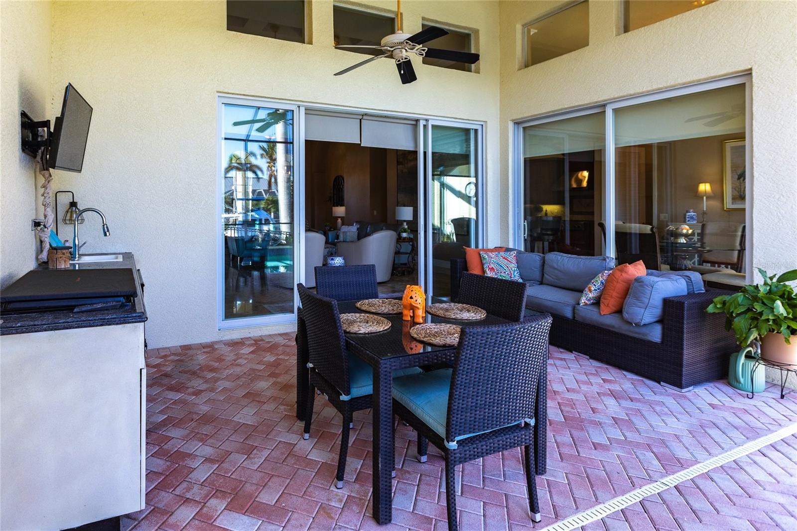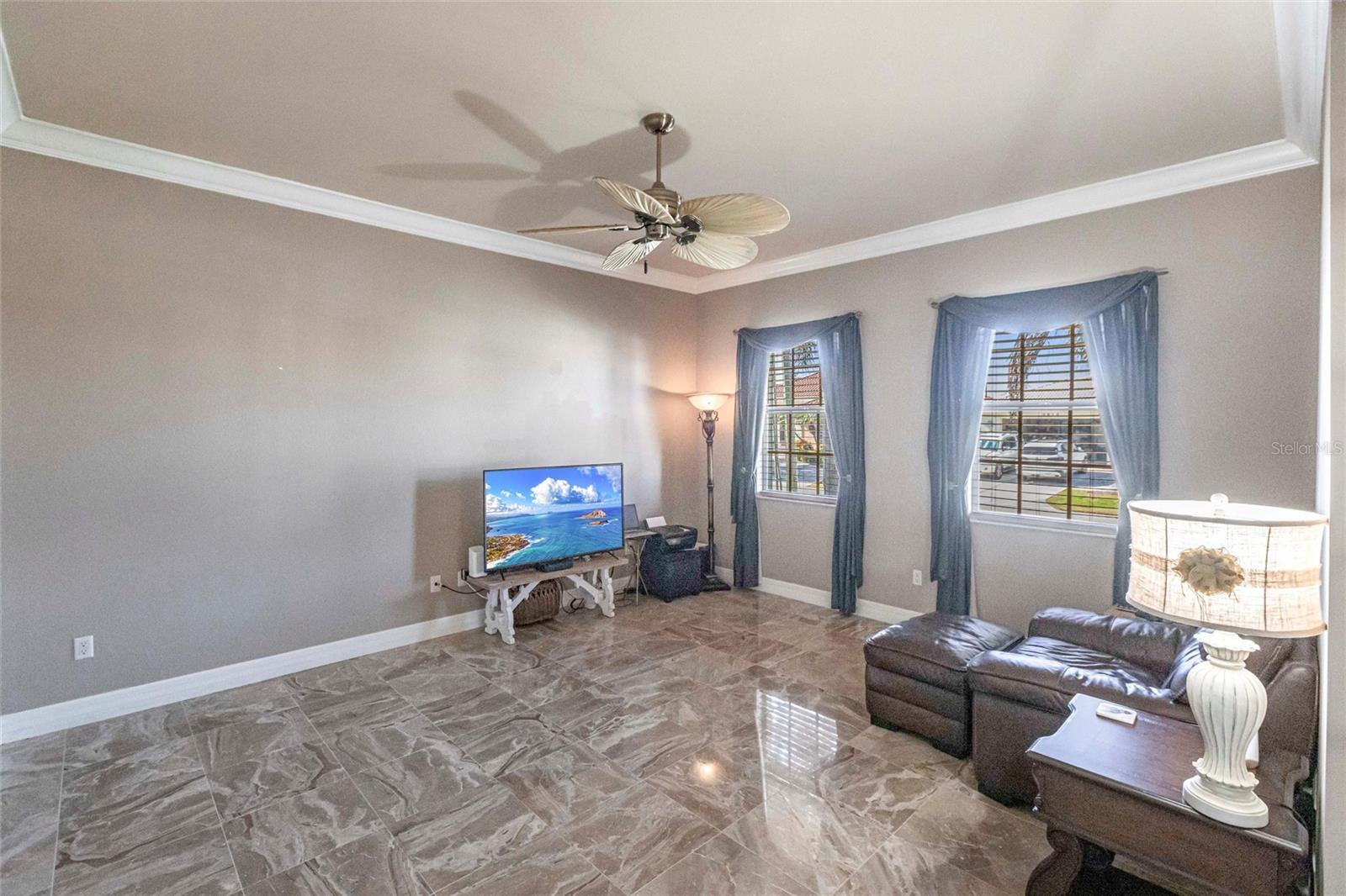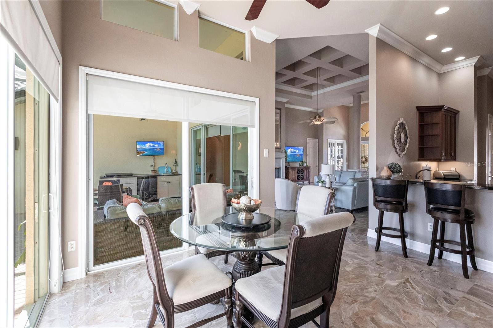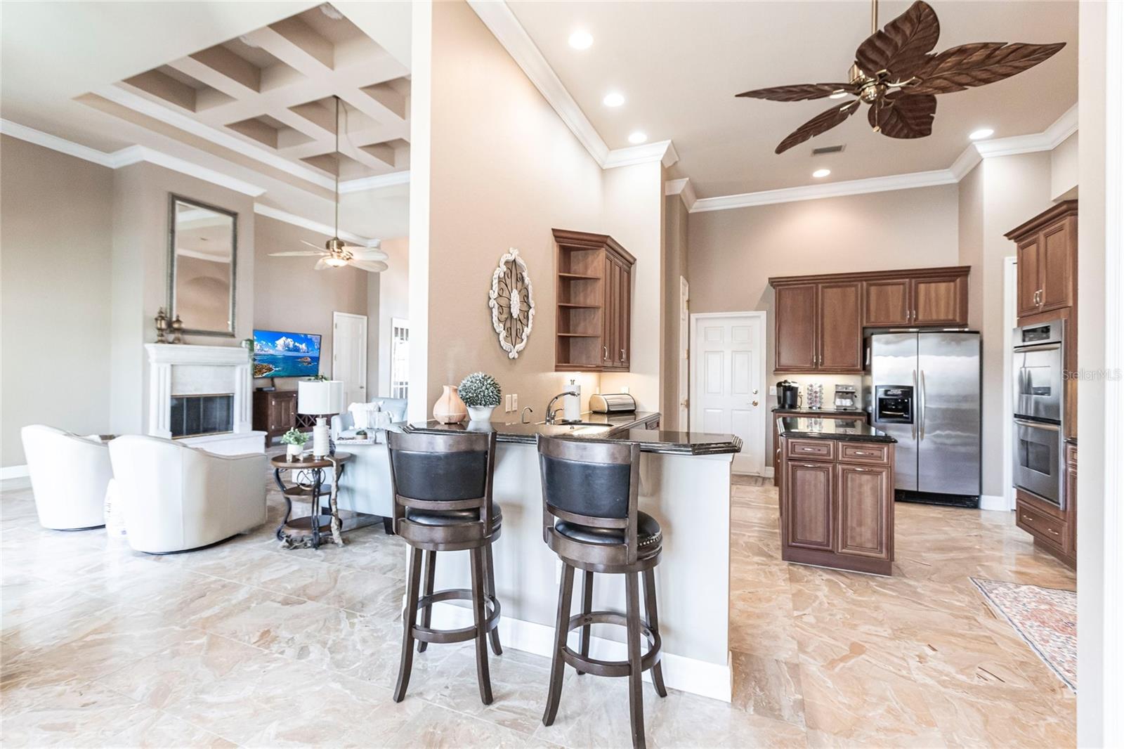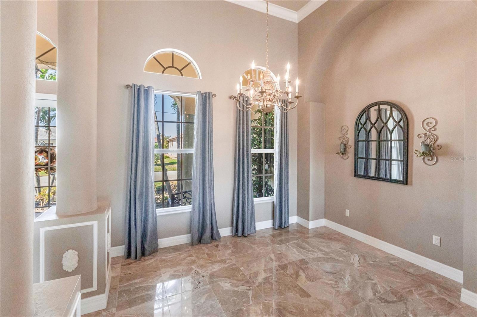 **Experience Waterfront Elegance and Boating Bliss** Indulge in the ultimate waterfront lifestyle with this luxurious 3-bedroom, 2-bathroom + den home, nestled along a deepwater canal just minutes from open water, and no bridges limiting height access. Designed for both comfort and sophistication, this exquisite property boasts two private docks, one equipped with a 10,000 lb boat lift and 30-amp power, offering the perfect haven for your boating adventures. Step into a home where refined details greet you at every turn. From the gleaming marble floors to the intricate coffered ceilings, the artistry and craftsmanship are undeniable. The expansive open-concept layout seamlessly connects the great room, formal dining area, and chef's kitchen, all framed by captivating views of the pool and canal. A wood-burning fireplace anchors the great room, providing warmth and ambiance, while columns, crown molding, transom windows, and arched entryways add architectural charm. The gourmet kitchen is a chef's dream, featuring granite countertops, custom wood cabinetry, a center island, breakfast bar, and premium stainless steel appliances, including a 6-burner gas range with hood and built-in double ovens. The adjacent breakfast nook is perfect for casual dining with serene water views. Retreat to the luxurious primary suite, a private sanctuary with lanai access, stunning canal views, and double walk-in closets. The spa-inspired primary bath offers a jetted garden tub, a dual-entry shower with twin showerheads, split vanities, and a private water closet. The split-bedroom floor plan ensures privacy, with two guest rooms, one with sliding door pool-access, and a pool-access guest bath. Step outside to your personal paradise. The expansive lanai features a brick-paver deck, a sparkling in-ground pool, and a summer kitchen complete with a JennAir grill, prep sink, and bar refrigerator--perfect for entertaining. The 85 ft. of water frontage includes a city-maintained seawall, and two concrete docks, complete with water and electric hookups, making this home a boater's dream. Additional features include whole-house hurricane protection with a mix of impact windows and shutters, a brand-new roof, an oversized two-car garage, a built-in wall safe, and a network hub in the laundry room. This home combines elegant waterfront living with practical functionality, offering the ultimate Florida lifestyle. Additional amenities of Punta Gorda Isles include the St. Andrews Golf Course, Punta Gorda Nature Park, and biking trails throughout. Paradise is possible for you in this stunning home!