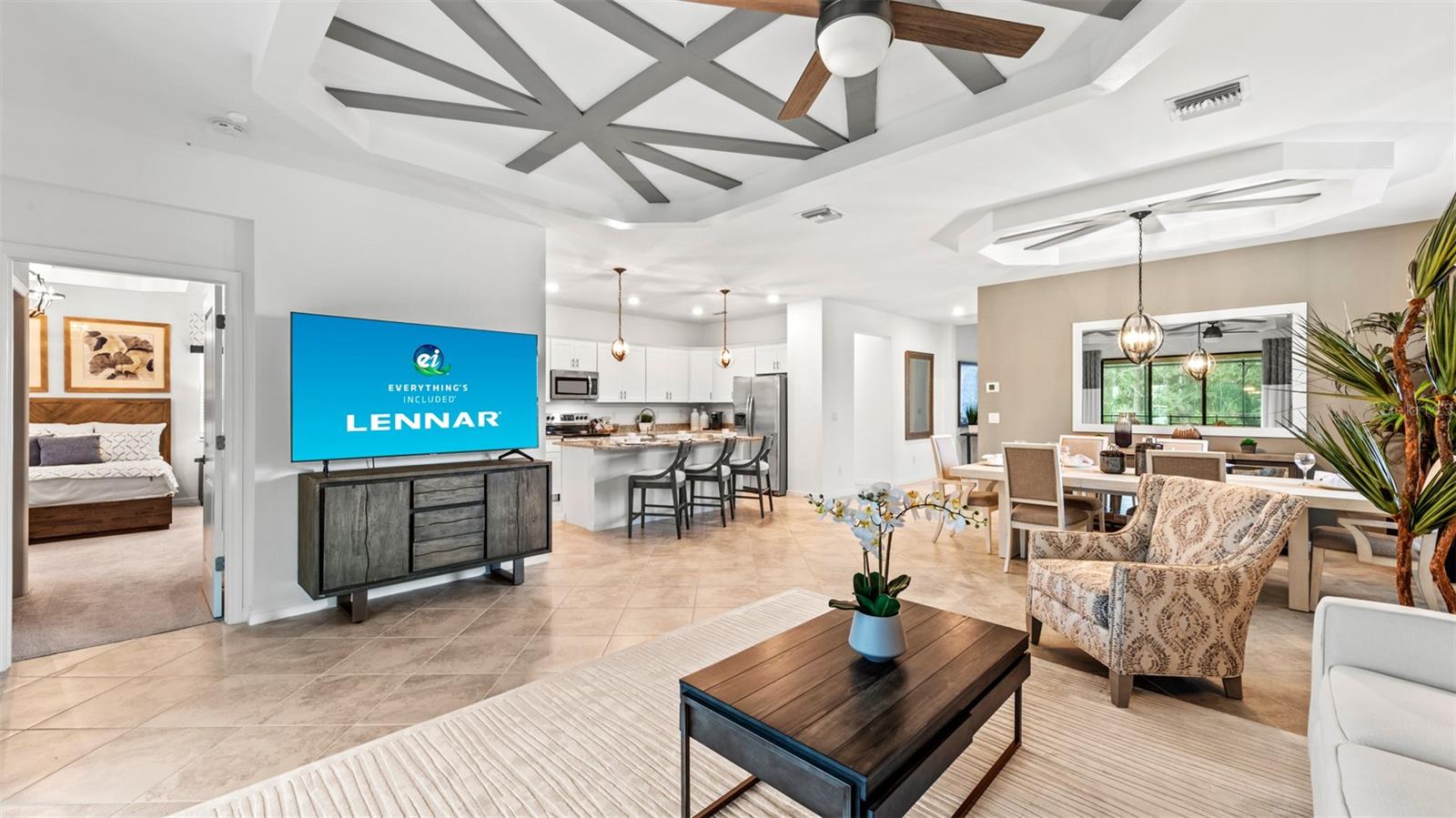Under Construction. Island Lakes at Coco Bay is a master-planned community of new homes that seamlessly blends coastal living with modern comfort, now selling in Englewood, FL. Island Lakes at Coco Bay offers the perfect balance of relaxation and activity to suit your desired lifestyle. The modest yet inviting clubhouse is where neighbors become friends. Dive into the refreshing waters of the resort-style pool or indulge infriendly competition on the sports courts. This single-story home offers versatile living, with an open design among the dining room, kitchen and family room, which lead to a covered lanai for outdoor experiences. Surrounding the space are all four bedrooms, including the lavish owner's suite with an adjoining bathroom and a large walk-in closet. A versatile two-car garage completes the home. Prices and features may vary and are subject to change. Photos are for illustrative purposes only. Estimated delivery date is Jan/Feb 2025.