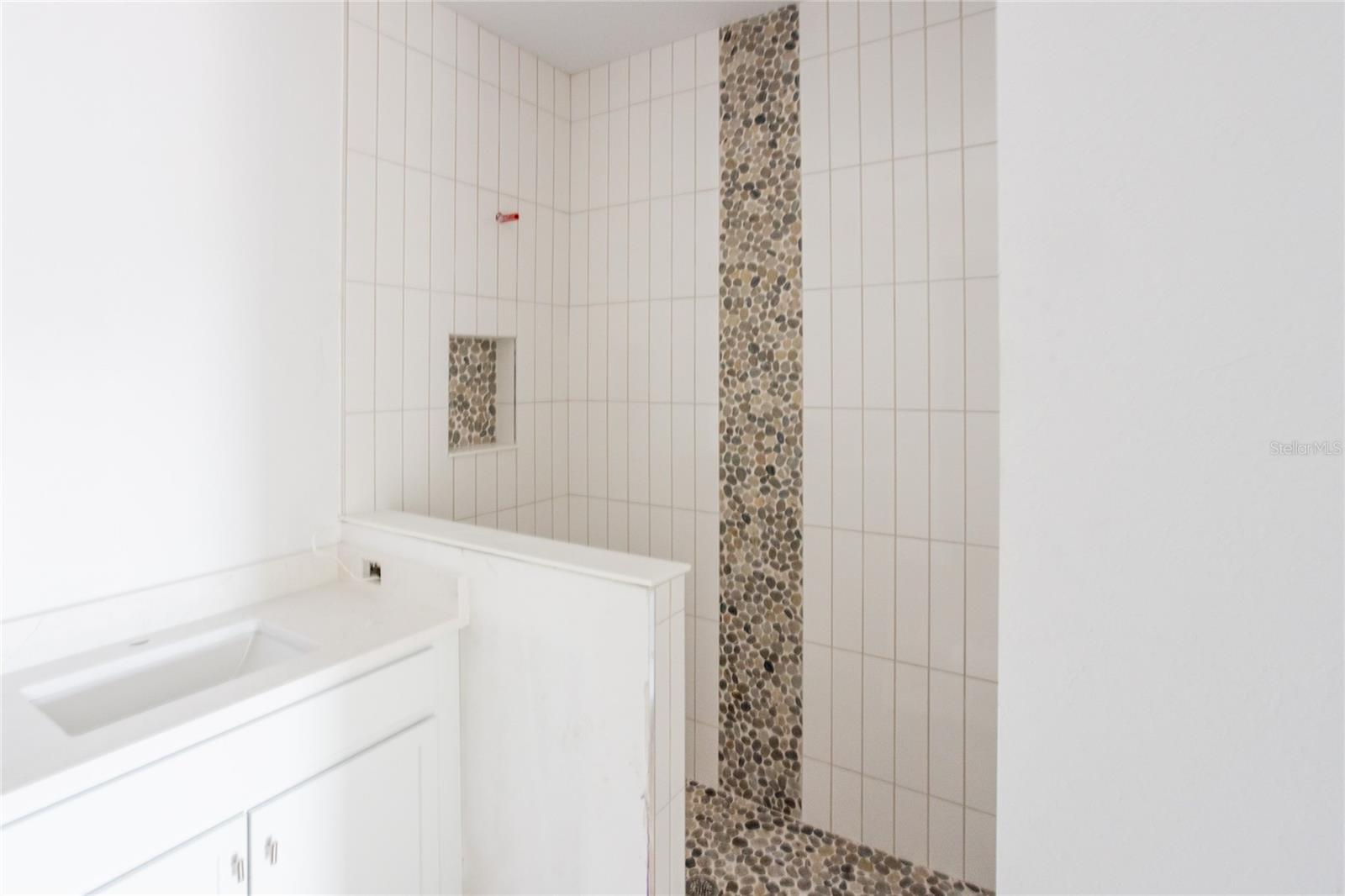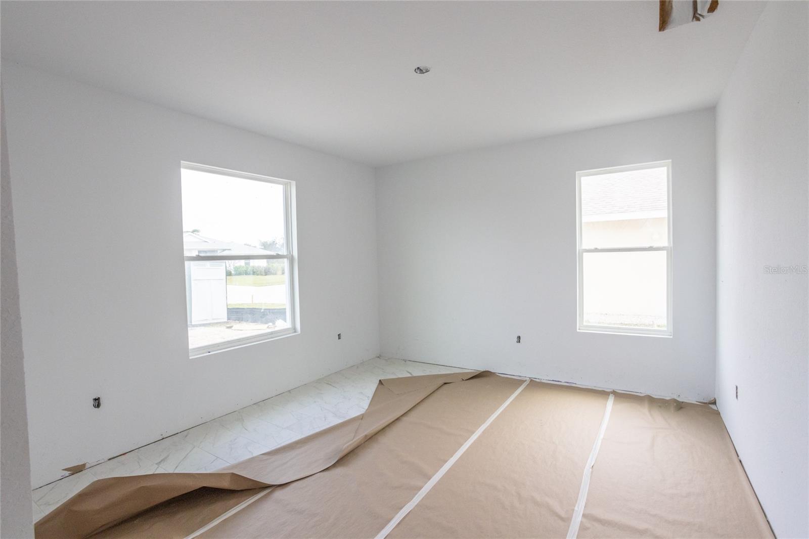 Under Construction. Welcome to elevated living at its finest with the stunning Boca floorplan by Carpenter Homes--a true masterpiece within the Signature Series, proudly certified by the Florida Green Building Coalition (FGBC). This exquisite new construction boasts 3 spacious bedrooms, an oversized office/flex room, and 2 full bathrooms--perfectly designed to envelop you in luxury, comfort, and style. As you enter, be captivated by the custom-designed kitchen that serves as the heart of the home. An expansive oversized Waterfall island flows effortlessly into the open living and dining areas, creating a perfect space for entertaining and daily living. The kitchen dazzles with soft-close 42" painted cabinets, a beautiful Anatolia Bliss Glass & Stone 5/8"x5/8" Mosaic Tile Iceland backsplash, and sleek Cambria 3cm Quartz Sandgate waterfall countertops. Every detail has been carefully curated, including a Moen Sleek chrome kitchen faucet with a contemporary zero radius kitchen sink, energy-efficient stainless steel appliances, and a built-in garbage disposal--merging style with function. The great room features a soaring vaulted ceiling, and expansive 8 foot 3-panel sliding glass doors that lead to your private, oversized patio--an oasis designed for relaxation and entertaining. Enjoy the luxurious Brushed Nickel Chandeliers in your dining room & breakfast nook. The 52" Indoor Brushed Nickel 5-Blade Modern Reversible Ceiling Fans in every bedroom and the great room keep the air flowing in the Florida warmth, while the stunning 12"x24" Ceramic Tile flooring ties the space together with modern elegance. The Owner's suite is nothing short of a luxurious retreat, featuring dual sinks, an upgraded glass-enclosed shower adorned with SOHO 4"x16" Canvas White Ceramic Tile walls, complemented by Anatolia Zen Flat Pebble vertical listello accents, a striking 72x36" contemporary mirror with front and back LED lighting, anti-fog technology, customizable color settings with a dimmer, and two expansive walk-in closets--offering both indulgence and practicality. The second bathroom continues the luxe experience with the front and back LED mirror, Valor White quartz vanity, and Moen Genta LX chrome fixtures for a sleek, polished look. Thoughtfully designed with every convenience in mind, this home includes a utility room with a wash basin, energy-efficient R-4.1 insulation on exterior concrete walls, Taexx pest control tubes, and metal hurricane shutters for every window. The Florida-friendly landscaping is complemented by an irrigation system with a rain sensor, ensuring a sustainable and low-maintenance outdoor retreat. The expansive 2.5-car garage provides ample space for your vehicles and storage needs, equipped with an electronic door opener and two remotes for convenience. The 13x26' outdoor pool with a water feature is a standout addition of this home, offering a luxurious sun shelf and enclosed with a birdcage for year-round enjoyment. The pool is 3-5 feet deep and includes stunning 2-color LED lighting, a variable-speed circulation pump, and an advanced salt-chlorine generator. Additional upgrades include a heater for comfortable swimming in any season, plus smart automation with a cell phone adapter, allowing you to control the pool's settings from anywhere. Available for viewing anytime--schedule your tour today!