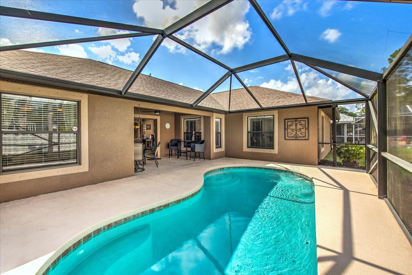 WOW! A POOL HOME at an incredible price--plus, no flood zone! Just 8 miles from the boat ramp, this home is perfect for boat and RV owners, with an extra-wide driveway offering plenty of space. This meticulously maintained 3-bedroom, 2-bath home offers nearly 2,000 sq. ft. of spacious living. With two living areas, two dining areas, a two-car garage, plus a shed, there's room for everyone and everything! The split-bedroom floor plan ensures privacy, while the oversized walk-in closet (yes, even room for your husband's clothes!) and the primary bath with an oversized shower and double sinks add to the home's comfort. The kitchen is designed for both cooking and entertaining, with 42" wood cabinets, a walk-in pantry, recessed lighting, and even a built-in desk area. The stove/range is just 6 months old!Big-ticket updates already done: ROOF 2022, HVAC 2018, Water Heater 2019--plus the benefit of city water and a low-maintenance septic systemLocated near shopping, dining, and just 30 minutes from the soft, sandy beaches of Venice, this home truly has it all. Come see it for yourself and make it yours!