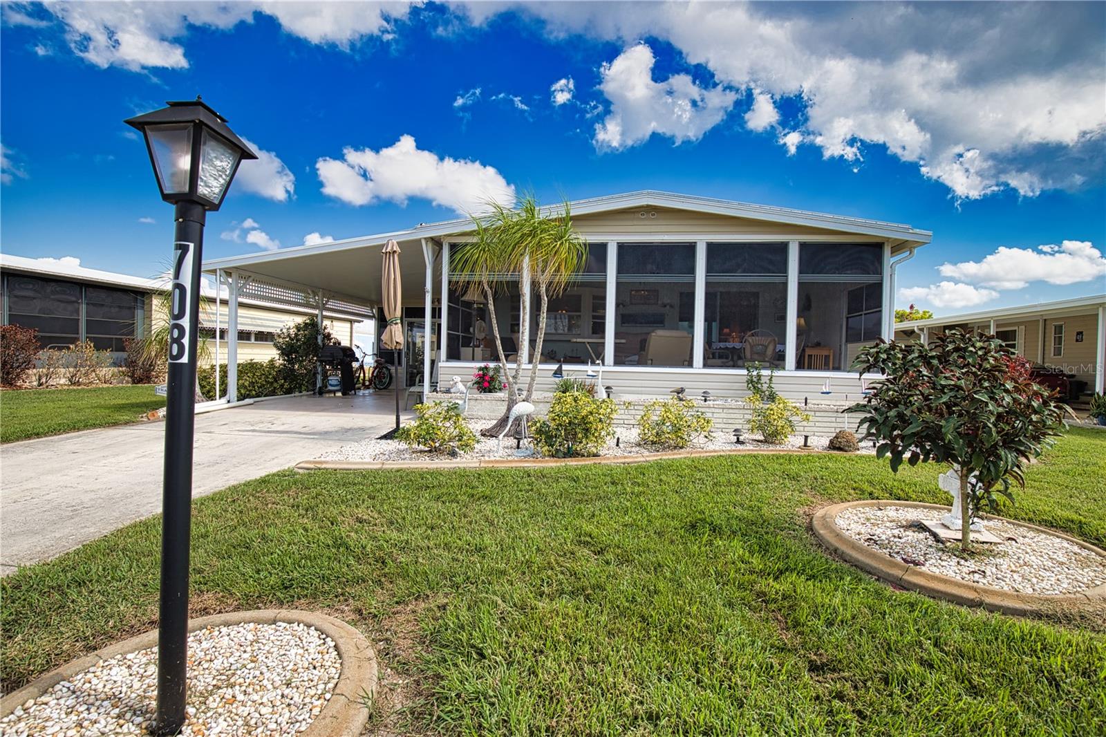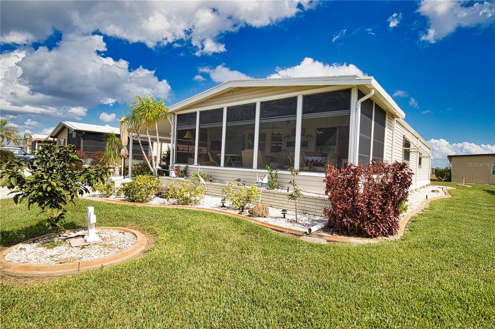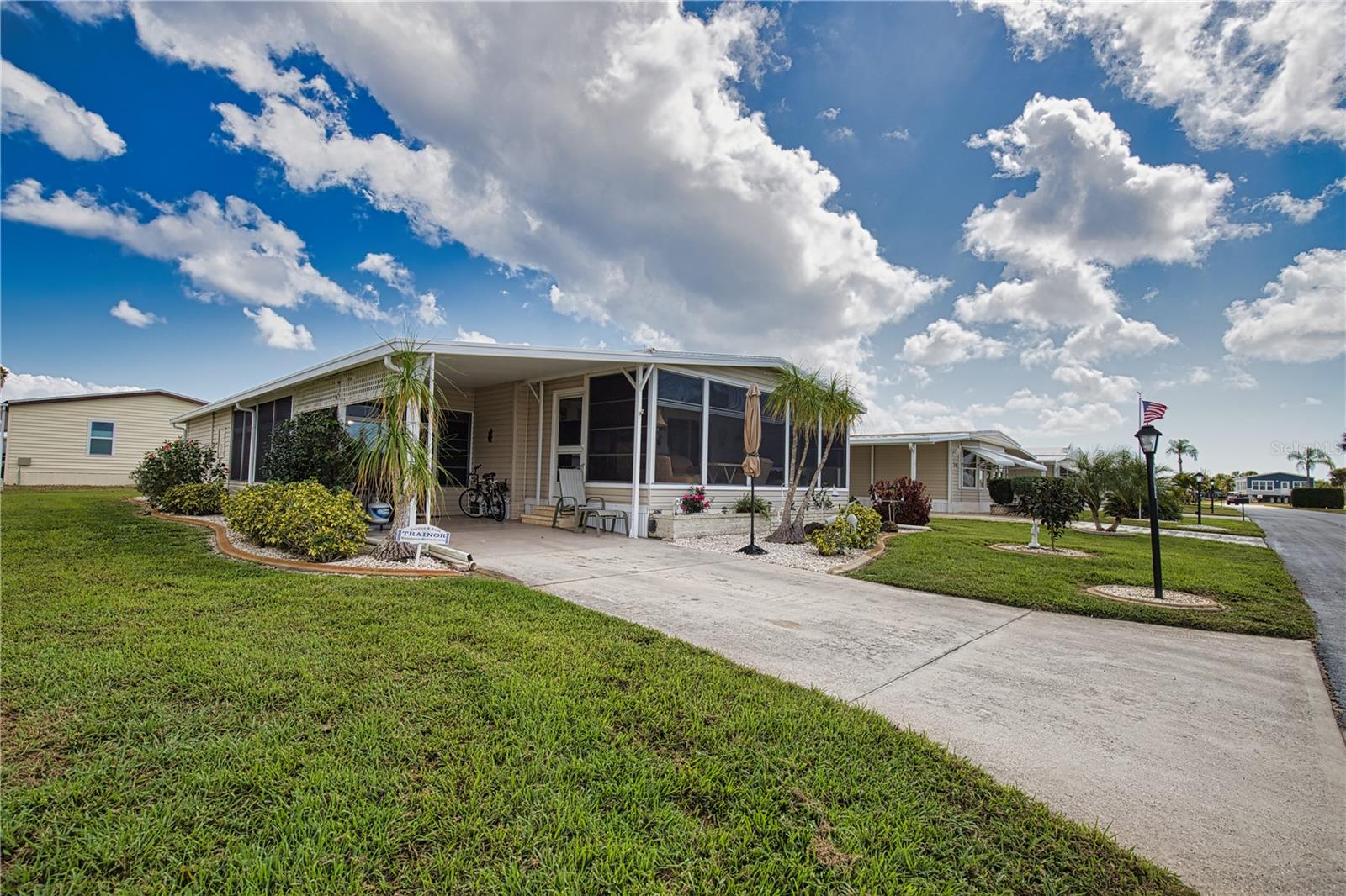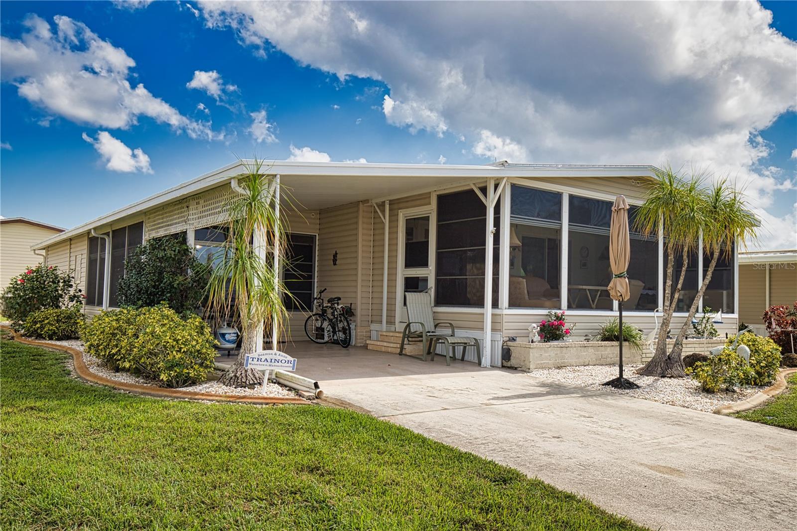 Discover Florida living at its absolute finest! This enchanting home is nestled at the back of the park, overlooking one of our most picturesque lakes. As you approach, you'll be greeted by lush, vibrant landscaping that sets the tone for the beauty that awaits inside. Step onto the spacious lanai, adorned with elegant ceramic tile flooring, which seamlessly connects to an oversized shed--offering generous space for a laundry area and a tool shed. Inside, the open-concept kitchen, dining room, and living room create a welcoming atmosphere perfect for entertaining family and friends. From the living room, you'll be drawn into the impressively large Florida Room. Bathed in natural light from its extra-large windows, this serene space boasts ceramic tile floors and sheetrock walls, providing breathtaking views of the tranquil lake. Whether hosting gatherings or enjoying a quiet moment, this room is an idyllic retreat. The primary bedroom offers a serene escape, featuring an ensuite bathroom complete with a stylish tile floor, a spacious walk-in closet, and a luxurious walk-in shower. Your guests will enjoy unparalleled comfort in the second bedroom, conveniently located across the hall from a well-appointed bathroom. Since its purchase in 2001, this home has undergone numerous enhancements. Notable updates include the stunning Florida Room (214 sq ft) with its oversized windows, a beautifully tiled lanai (144 sq ft), and a functional tool shed (120 sq ft). Enjoy peace of mind with double-glazed windows throughout, and a durable roof featuring all-weather roofing that includes a transferable lifetime warranty. La Casa boasts 974 homes nestled among a variety of native trees with spacious common grounds surrounding our eight lakes. The ultimate lifestyle on Florida's Gulf Coast is located between Sarasota and Fort Myers and is a boaters dream with access to the Gulf of Mexico. It is convenient for shopping, sightseeing, golfing, fishing, and boating, as well as all the culture and elegance the Southwest Florida area is noted for. Residents and visitors enjoy the warmth of Southwest Florida winters in a relaxed and unhurried environment far removed from the hustle of Florida's east coast. You'll be surrounded by hundreds of palms reaching for the sky and beautiful mature lush landscaping which demonstrates the utmost level of care our property receives from residents and management. La Casa may have the best pools in the area. Our extremely large, 40 X 60-foot swimming pool is our crown jewel and that is kept at a perfect 87 degrees. Our smaller 20 x 40 pool is quietly nestled between the clubhouse and the Activity Building. Both pools have adjacent hot tubs which are ideal for soaking muscles that are tired from golfing or tennis. Wireless Internet (Wi-Fi) is available at the Clubhouse, Activity Building, and Recreation Hall area where these pools & spas are located, so you can catch some rays while you catch up on your email! Sound enticing? La Casa is a friendly, family community. You will be away from the hustle and bustle except when you want to be part of it. When you leave our gates, North Port is only 1.5 miles from the city center, where you will find every kind of retail store and service you could need. Come for a visit to this self-contained oasis and see for yourself why La Casa is the ultimate destination for both snowbirds and year-round.