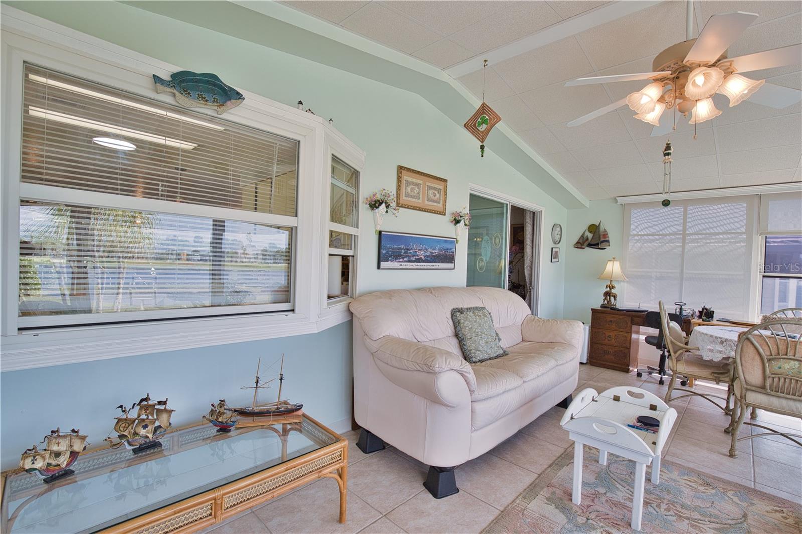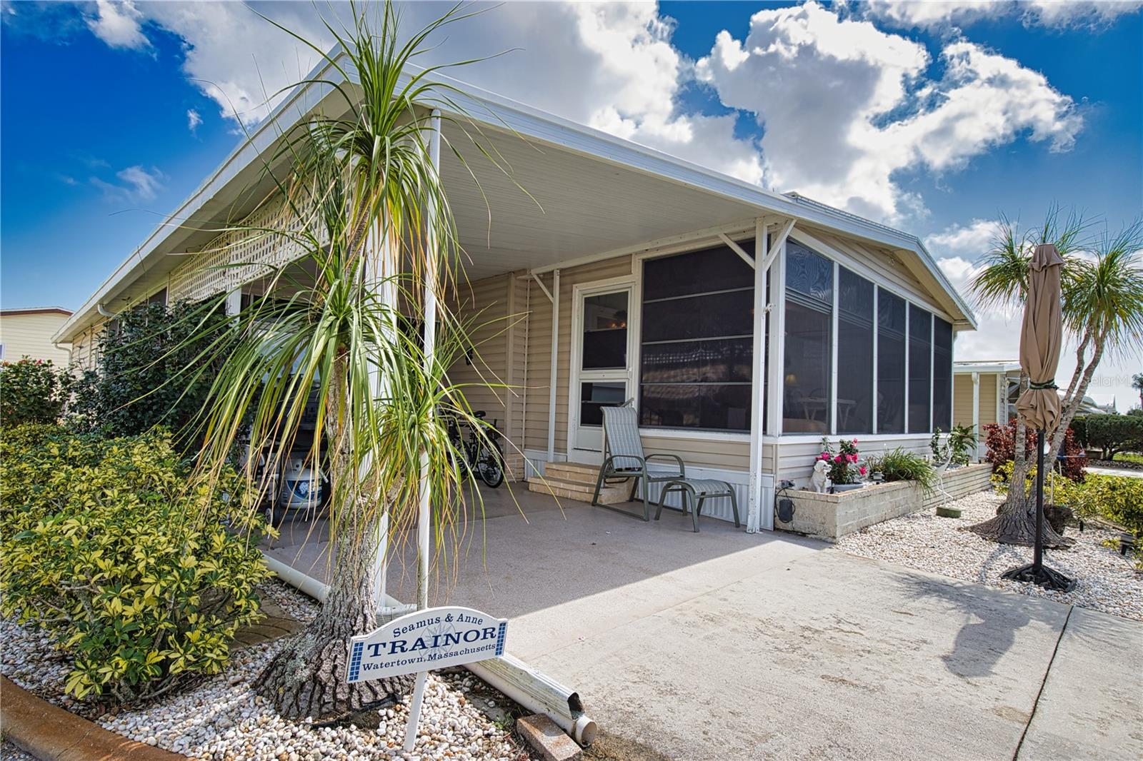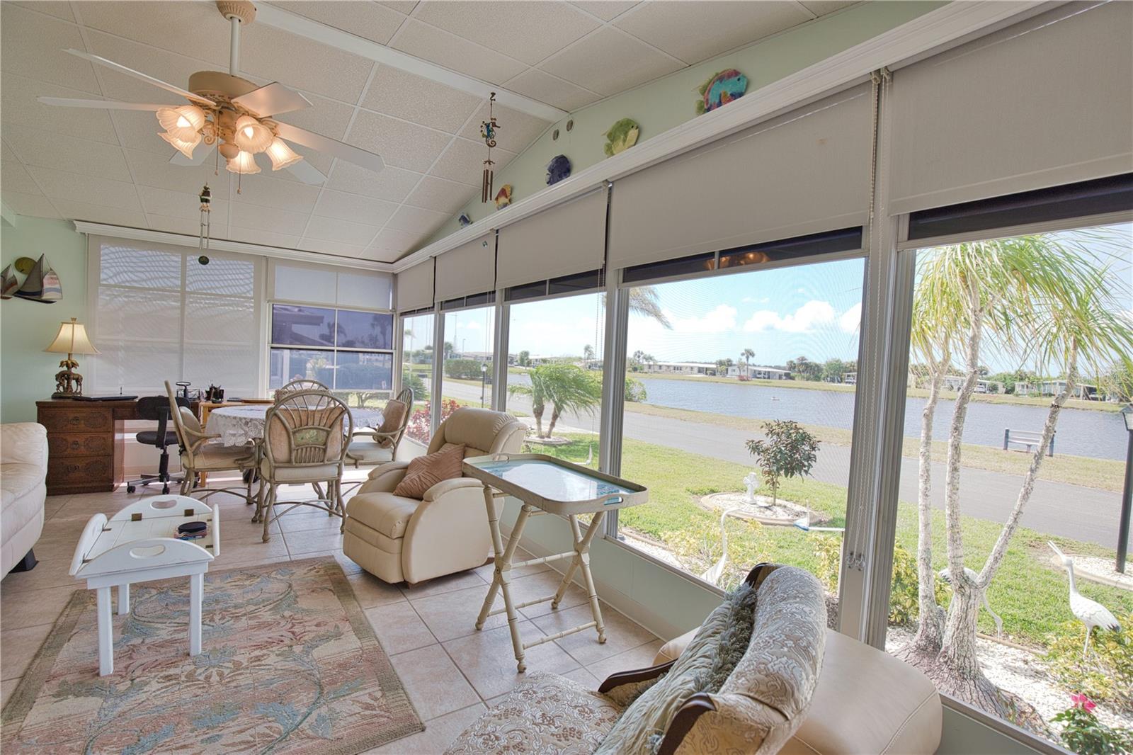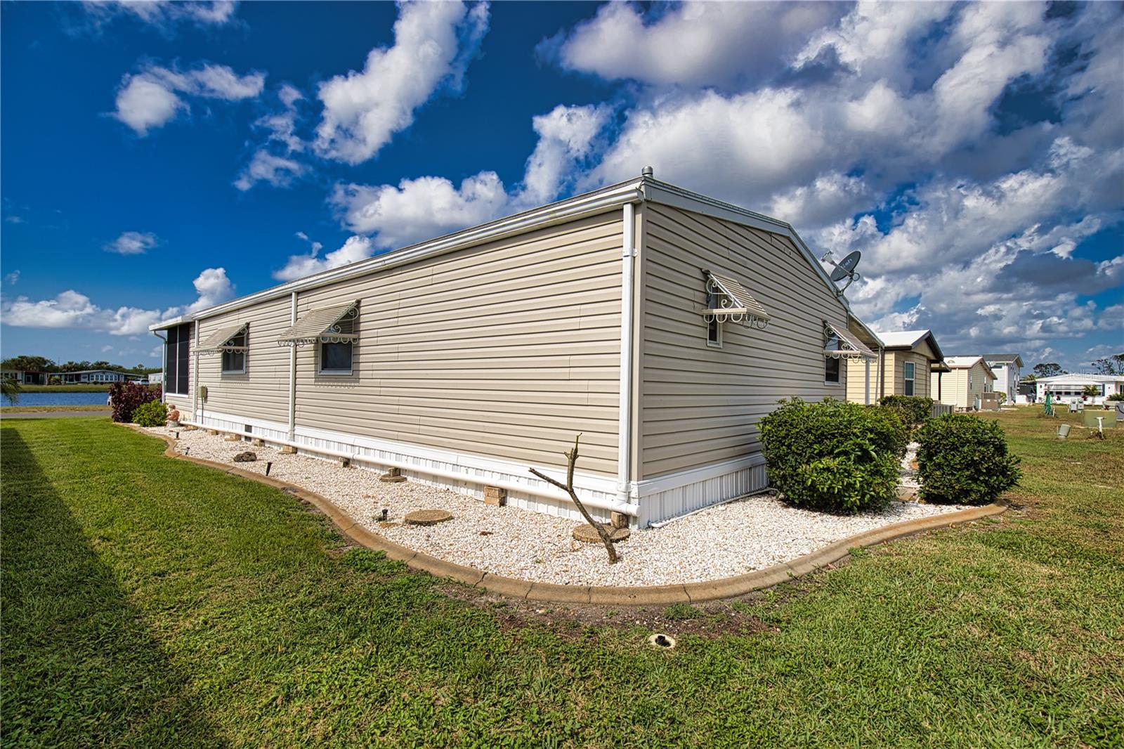 Discover Florida living at its absolute finest! This enchanting home is nestled at the back of the park, overlooking one of our most picturesque lakes. As you approach, you'll be greeted by lush, vibrant landscaping that sets the tone for the beauty that awaits inside. Step onto the spacious lanai, adorned with elegant ceramic tile flooring, which seamlessly connects to an oversized shed--offering generous space for a laundry area and a tool shed. Inside, the open-concept kitchen, dining room, and living room create a welcoming atmosphere perfect for entertaining family and friends. From the living room, you'll be drawn into the impressively large Florida Room. Bathed in natural light from its extra-large windows, this serene space boasts ceramic tile floors and sheetrock walls, providing breathtaking views of the tranquil lake. Whether hosting gatherings or enjoying a quiet moment, this room is an idyllic retreat. The primary bedroom offers a serene escape, featuring an ensuite bathroom complete with a stylish tile floor, a spacious walk-in closet, and a luxurious walk-in shower. Your guests will enjoy unparalleled comfort in the second bedroom, conveniently located across the hall from a well-appointed bathroom. Since its purchase in 2001, this home has undergone numerous enhancements. Notable updates include the stunning Florida Room (214 sq ft) with its oversized windows, a beautifully tiled lanai (144 sq ft), and a functional tool shed (120 sq ft). Enjoy peace of mind with double-glazed windows throughout, and a durable roof featuring all-weather roofing that includes a transferable lifetime warranty. La Casa boasts 974 homes nestled among a variety of native trees with spacious common grounds surrounding our eight lakes. The ultimate lifestyle on Florida's Gulf Coast is located between Sarasota and Fort Myers and is a boaters dream with access to the Gulf of Mexico. It is convenient for shopping, sightseeing, golfing, fishing, and boating, as well as all the culture and elegance the Southwest Florida area is noted for. Residents and visitors enjoy the warmth of Southwest Florida winters in a relaxed and unhurried environment far removed from the hustle of Florida's east coast. You'll be surrounded by hundreds of palms reaching for the sky and beautiful mature lush landscaping which demonstrates the utmost level of care our property receives from residents and management. La Casa may have the best pools in the area. Our extremely large, 40 X 60-foot swimming pool is our crown jewel and that is kept at a perfect 87 degrees. Our smaller 20 x 40 pool is quietly nestled between the clubhouse and the Activity Building. Both pools have adjacent hot tubs which are ideal for soaking muscles that are tired from golfing or tennis. Wireless Internet (Wi-Fi) is available at the Clubhouse, Activity Building, and Recreation Hall area where these pools & spas are located, so you can catch some rays while you catch up on your email! Sound enticing? La Casa is a friendly, family community. You will be away from the hustle and bustle except when you want to be part of it. When you leave our gates, North Port is only 1.5 miles from the city center, where you will find every kind of retail store and service you could need. Come for a visit to this self-contained oasis and see for yourself why La Casa is the ultimate destination for both snowbirds and year-round.