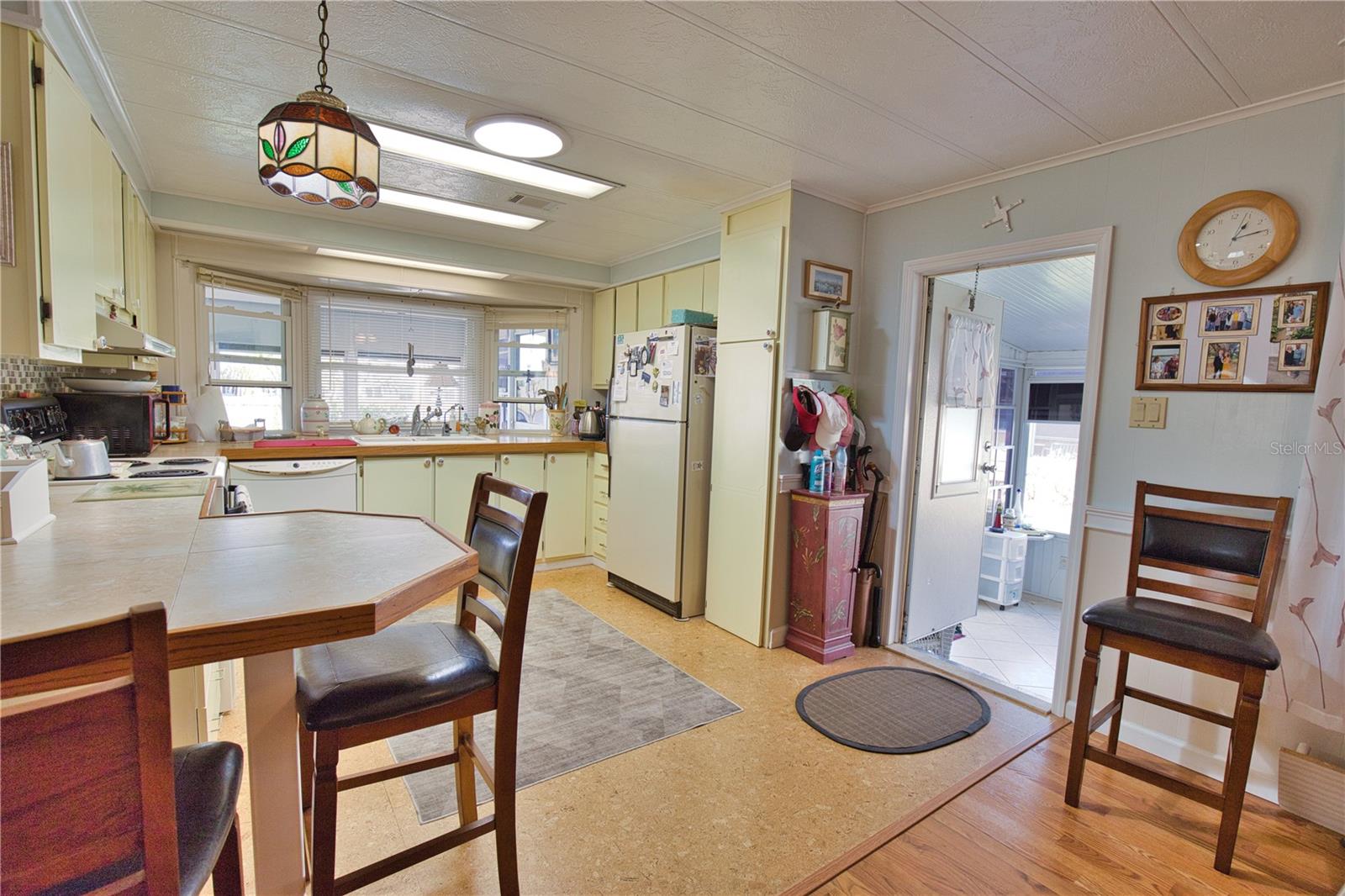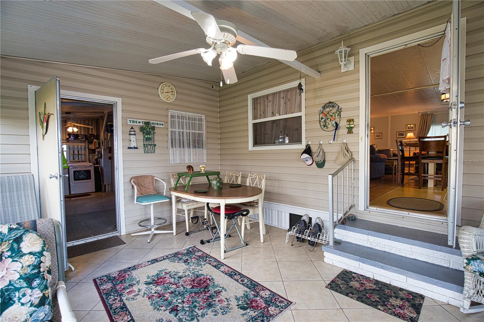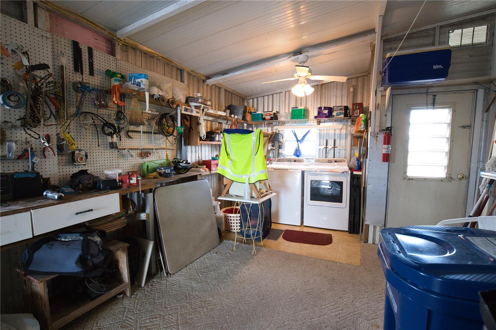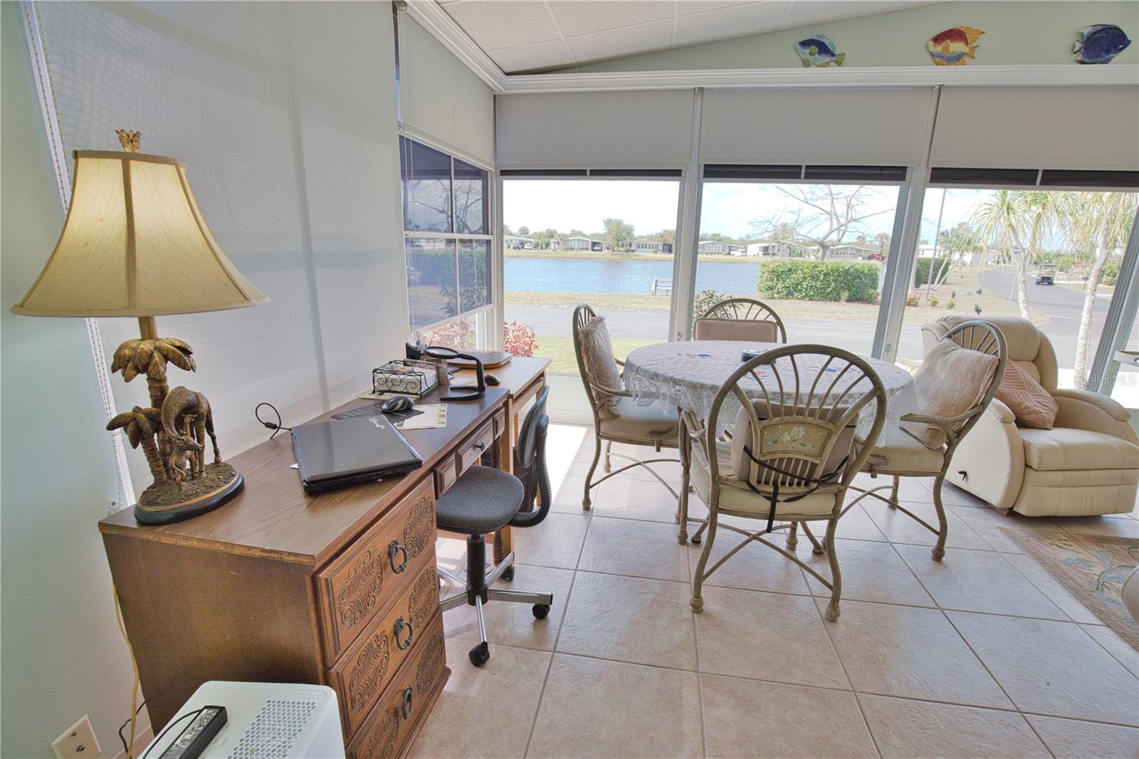 Discover Florida living at its absolute finest! This enchanting home is nestled at the back of the park, overlooking one of our most picturesque lakes. As you approach, you'll be greeted by lush, vibrant landscaping that sets the tone for the beauty that awaits inside. Step onto the spacious lanai, adorned with elegant ceramic tile flooring, which seamlessly connects to an oversized shed--offering generous space for a laundry area and a tool shed. Inside, the open-concept kitchen, dining room, and living room create a welcoming atmosphere perfect for entertaining family and friends. From the living room, you'll be drawn into the impressively large Florida Room. Bathed in natural light from its extra-large windows, this serene space boasts ceramic tile floors and sheetrock walls, providing breathtaking views of the tranquil lake. Whether hosting gatherings or enjoying a quiet moment, this room is an idyllic retreat. The primary bedroom offers a serene escape, featuring an ensuite bathroom complete with a stylish tile floor, a spacious walk-in closet, and a luxurious walk-in shower. Your guests will enjoy unparalleled comfort in the second bedroom, conveniently located across the hall from a well-appointed bathroom. Since its purchase in 2001, this home has undergone numerous enhancements. Notable updates include the stunning Florida Room (214 sq ft) with its oversized windows, a beautifully tiled lanai (144 sq ft), and a functional tool shed (120 sq ft). Enjoy peace of mind with double-glazed windows throughout, and a durable roof featuring all-weather roofing that includes a transferable lifetime warranty. La Casa boasts 974 homes nestled among a variety of native trees with spacious common grounds surrounding our eight lakes. The ultimate lifestyle on Florida's Gulf Coast is located between Sarasota and Fort Myers and is a boaters dream with access to the Gulf of Mexico. It is convenient for shopping, sightseeing, golfing, fishing, and boating, as well as all the culture and elegance the Southwest Florida area is noted for. Residents and visitors enjoy the warmth of Southwest Florida winters in a relaxed and unhurried environment far removed from the hustle of Florida's east coast. You'll be surrounded by hundreds of palms reaching for the sky and beautiful mature lush landscaping which demonstrates the utmost level of care our property receives from residents and management. La Casa may have the best pools in the area. Our extremely large, 40 X 60-foot swimming pool is our crown jewel and that is kept at a perfect 87 degrees. Our smaller 20 x 40 pool is quietly nestled between the clubhouse and the Activity Building. Both pools have adjacent hot tubs which are ideal for soaking muscles that are tired from golfing or tennis. Wireless Internet (Wi-Fi) is available at the Clubhouse, Activity Building, and Recreation Hall area where these pools & spas are located, so you can catch some rays while you catch up on your email! Sound enticing? La Casa is a friendly, family community. You will be away from the hustle and bustle except when you want to be part of it. When you leave our gates, North Port is only 1.5 miles from the city center, where you will find every kind of retail store and service you could need. Come for a visit to this self-contained oasis and see for yourself why La Casa is the ultimate destination for both snowbirds and year-round.