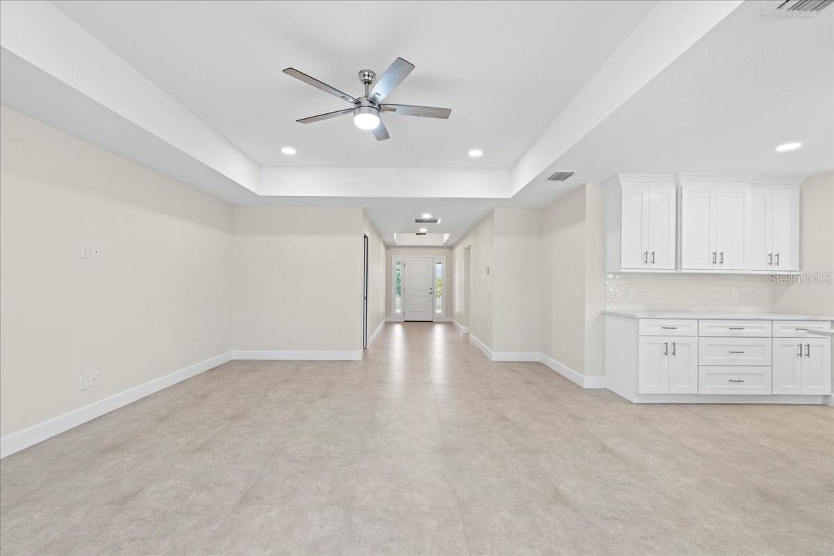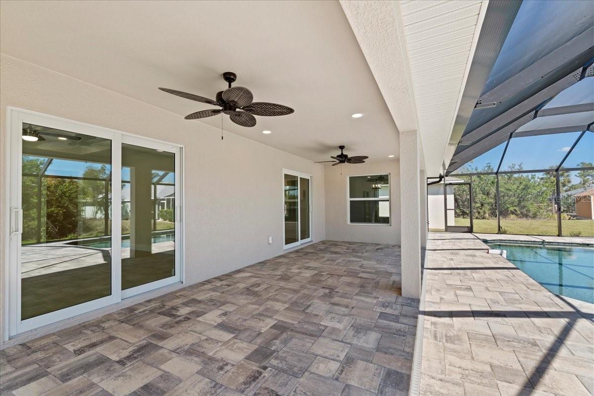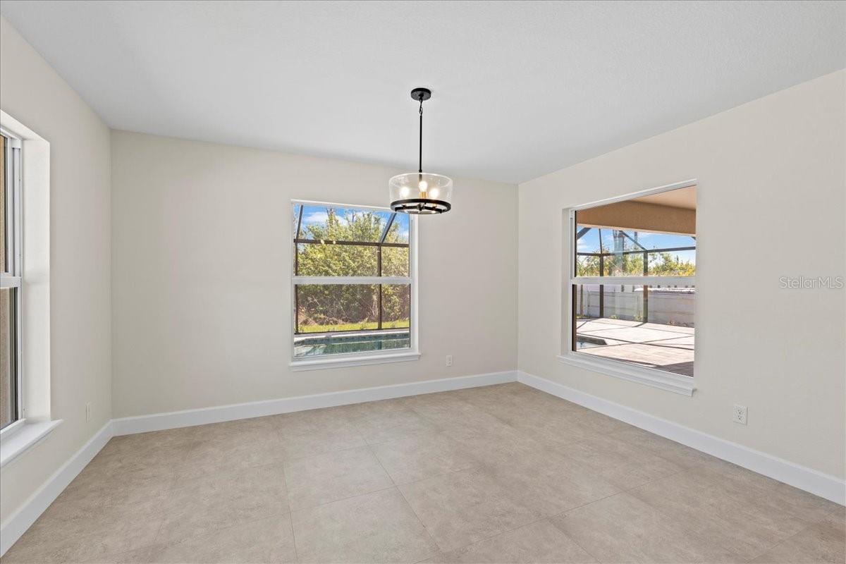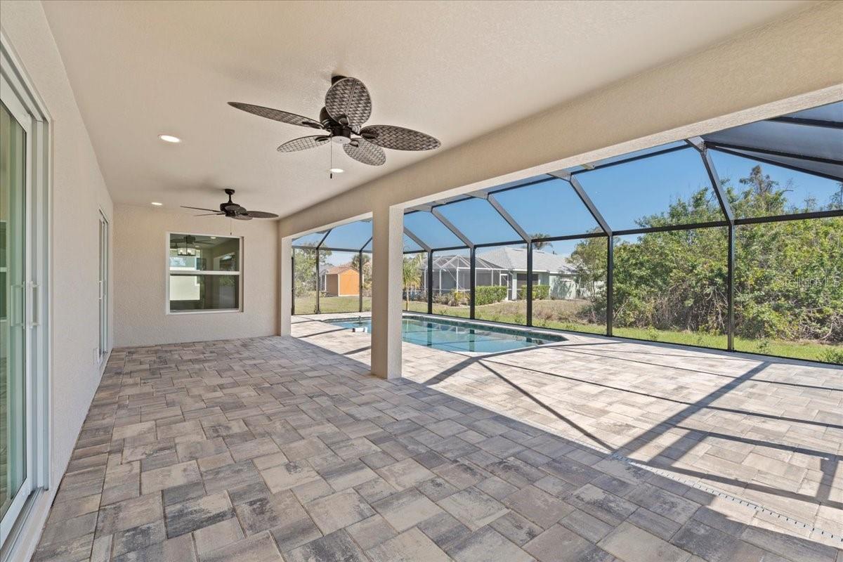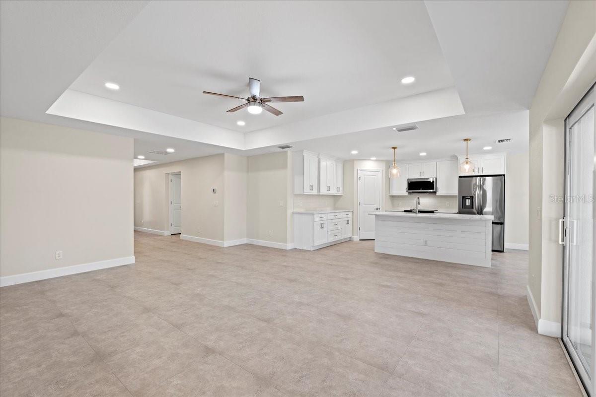 Welcome to your dream home in the thriving Rotonda Lakes neighborhood of Rotonda West! This stunning Regina model, constructed by JWM Residential, is 100% complete and ready for sale. This exquisite pool home is in an X flood zone, boasts ALL IMPACT WINDOWS AND SLIDERS allowing peace of mind during the next hurricane season. Come see the modern design and the array of desirable features that will capture your heart. Step inside and be greeted by an inviting open-concept living space, adorned with elegant tray ceilings that create a sense of spaciousness and comfort. The front porch offers ample room for seating, providing the perfect spot to unwind and soak in the surroundings. High-quality porcelain tile flows throughout the entire home, adding a touch of luxury to every corner. The kitchen, features Quartz countertops, a tasteful tile backsplash, and shaker cabinets with crown molding. Stainless steel Samsung appliances and a convenient walk-in pantry complete the picture, ensuring both style and functionality. The laundry room offers proper cabinets for added storage. The owner's suite bathroom is a private oasis, boasting dual vanities and private toilet facilities. The second bath offers a tub-shower combo for added convenience. Thoughtfully designed, the home includes a comprehensive ceiling fan and lighting fixture package, as well as energy-efficient LED recessed lighting in the kitchen, living room, and owner's suite. Outside, the front porch features a textured Spraycrete surface, adding to the overall aesthetic. The spacious garage, with its attractive epoxy chip floor finish, offers ample space for your vehicles and storage needs. Sliding glass doors open to the pool deck from both the living area and the owner's suite, seamlessly blending indoor and outdoor living. The screened pool deck, covered lanai enclosure, and luxurious Pebble-Tec finished concrete pool create the ultimate relaxation and entertainment space, measuring 43x20 feet, 29x10 feet, and 23x12 feet. The well-maintained yard is beautifully landscaped and fully irrigated with a RainBird system, ensuring a lush and vibrant outdoor environment. And that's not all - the builder has added many thoughtful extras that any homeowner will undoubtedly appreciate. Don't miss the opportunity to explore all that this exceptional home has to offer. Schedule your showing today
