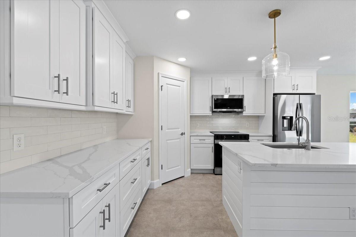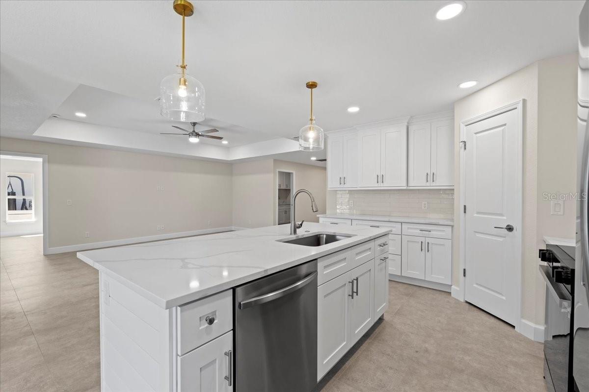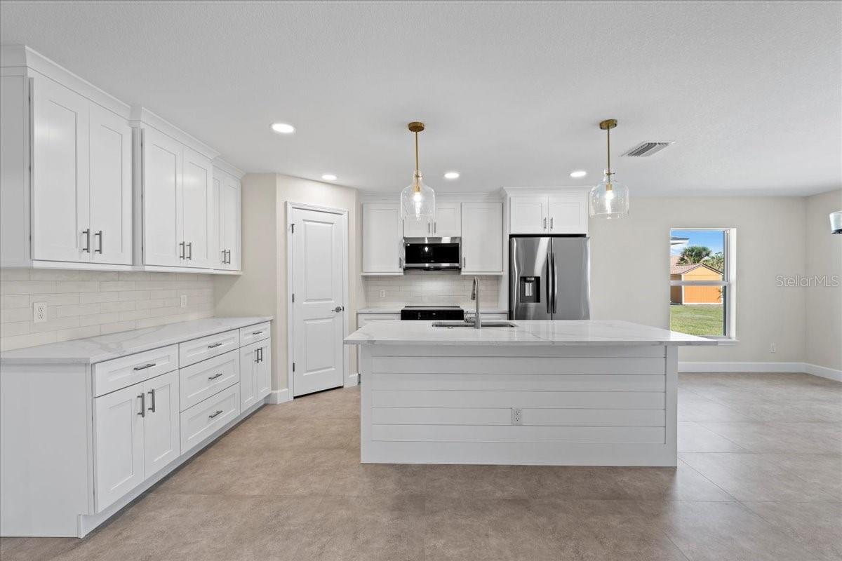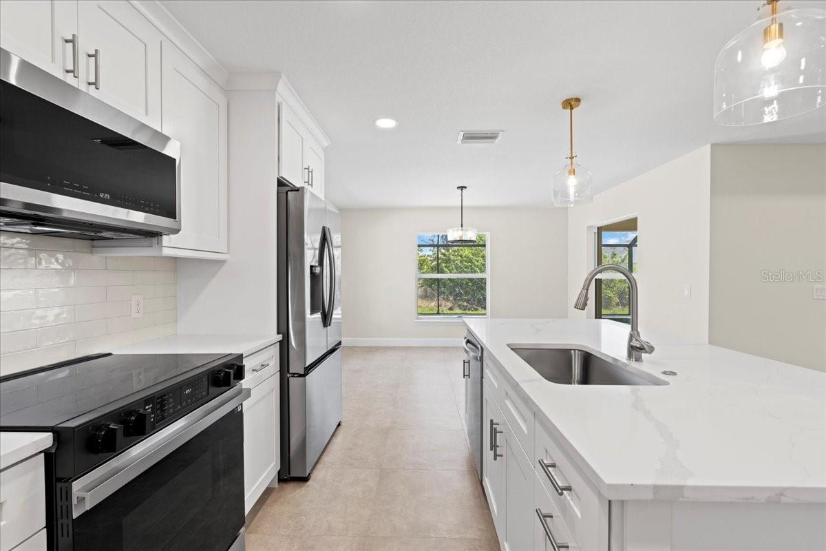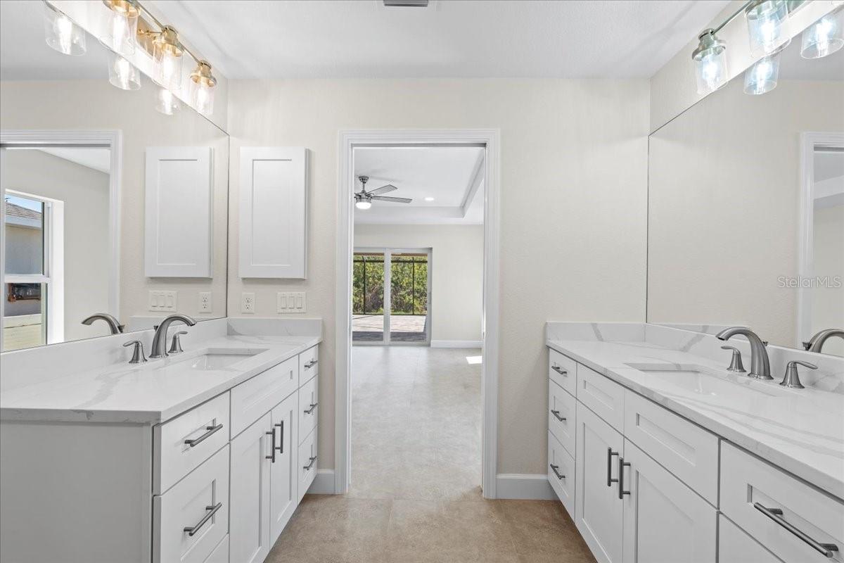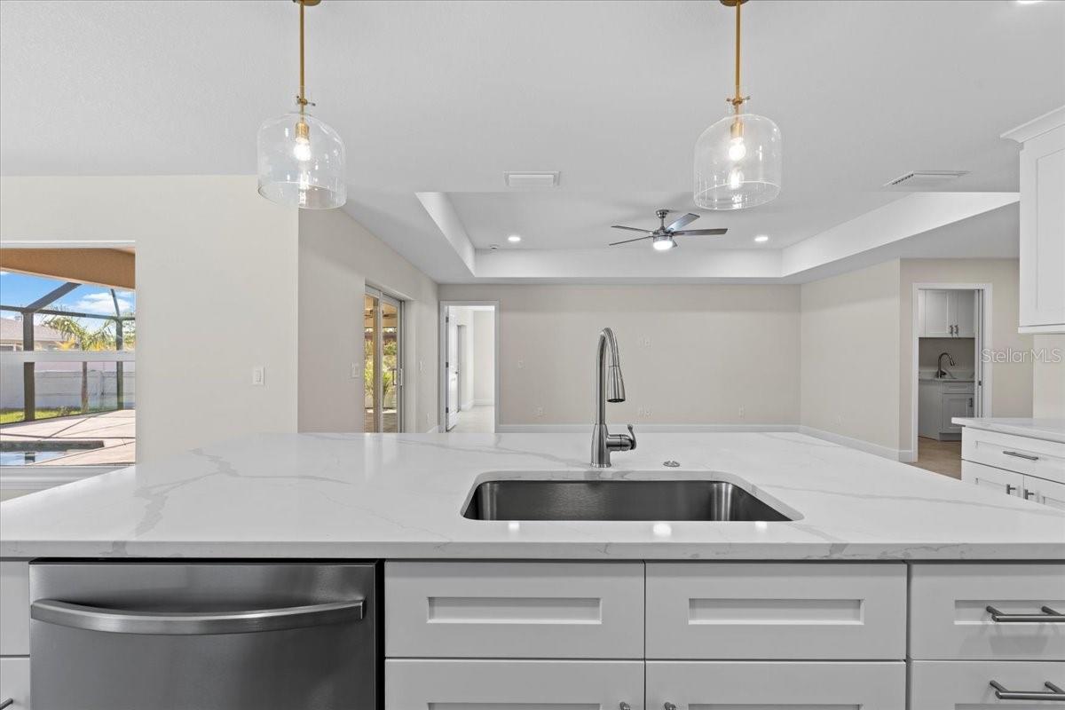 Welcome to your dream home in the thriving Rotonda Lakes neighborhood of Rotonda West! This stunning Regina model, constructed by JWM Residential, is 100% complete and ready for sale. This exquisite pool home is in an X flood zone, boasts ALL IMPACT WINDOWS AND SLIDERS allowing peace of mind during the next hurricane season. Come see the modern design and the array of desirable features that will capture your heart. Step inside and be greeted by an inviting open-concept living space, adorned with elegant tray ceilings that create a sense of spaciousness and comfort. The front porch offers ample room for seating, providing the perfect spot to unwind and soak in the surroundings. High-quality porcelain tile flows throughout the entire home, adding a touch of luxury to every corner. The kitchen, features Quartz countertops, a tasteful tile backsplash, and shaker cabinets with crown molding. Stainless steel Samsung appliances and a convenient walk-in pantry complete the picture, ensuring both style and functionality. The laundry room offers proper cabinets for added storage. The owner's suite bathroom is a private oasis, boasting dual vanities and private toilet facilities. The second bath offers a tub-shower combo for added convenience. Thoughtfully designed, the home includes a comprehensive ceiling fan and lighting fixture package, as well as energy-efficient LED recessed lighting in the kitchen, living room, and owner's suite. Outside, the front porch features a textured Spraycrete surface, adding to the overall aesthetic. The spacious garage, with its attractive epoxy chip floor finish, offers ample space for your vehicles and storage needs. Sliding glass doors open to the pool deck from both the living area and the owner's suite, seamlessly blending indoor and outdoor living. The screened pool deck, covered lanai enclosure, and luxurious Pebble-Tec finished concrete pool create the ultimate relaxation and entertainment space, measuring 43x20 feet, 29x10 feet, and 23x12 feet. The well-maintained yard is beautifully landscaped and fully irrigated with a RainBird system, ensuring a lush and vibrant outdoor environment. And that's not all - the builder has added many thoughtful extras that any homeowner will undoubtedly appreciate. Don't miss the opportunity to explore all that this exceptional home has to offer. Schedule your showing today