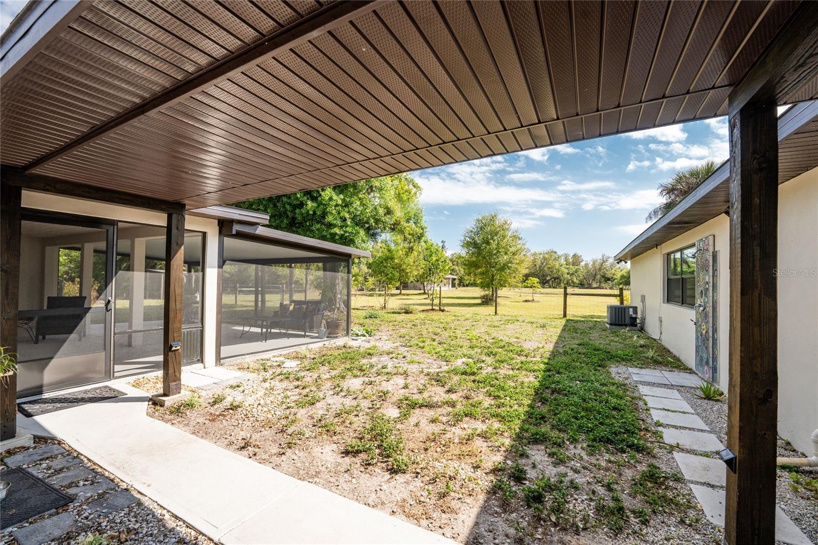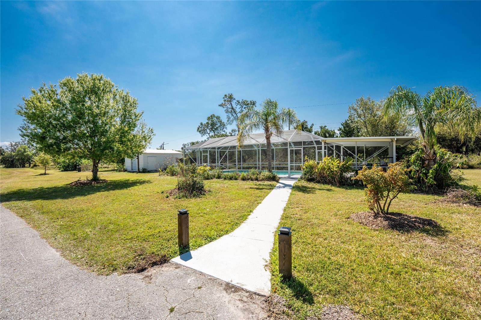 Private property estate featuring a main house and a mother in-law suite/guest house located in Suncoast Estates in Port Charlotte. The main house offers 1,891 sq ft of living space, and the in-law is 946 sq ft (sq footage not including the AC garage). This 4.9 acreage property is very private, fenced in and offers 2 block houses, a separate pool, pond, barn, and many fruit trees. The main house has 3 bedrooms, 2.5 baths, an enclosed large screened in lanai, fenced area, outdoor shower and a breezeway that connects both houses. The roof, plumbing, windows, garage door, kitchen has all been updated within the last 3-4 years. Gutters and landscaping new in 2025. The guest house/ in-law suite features a large living area, 1 bedroom and 1 bath, front porch and an air conditioned 2-car garage. Enjoy privacy in the large screened in pool which is not connected to either of the houses. This property is conveniently located within 5-10 min away from shopping, food, 20 min from PG airport and is close to the interstate and US 41. No HOA's and plenty of room to bring your own horses or chickens. No flood zone. All rooms and measurements to be verified by buyer. Both living rooms have been virtually staged, as well as 2 guest bedrooms in the main house. Agent is related to the seller. Appointment only. More pictures and video upon request.