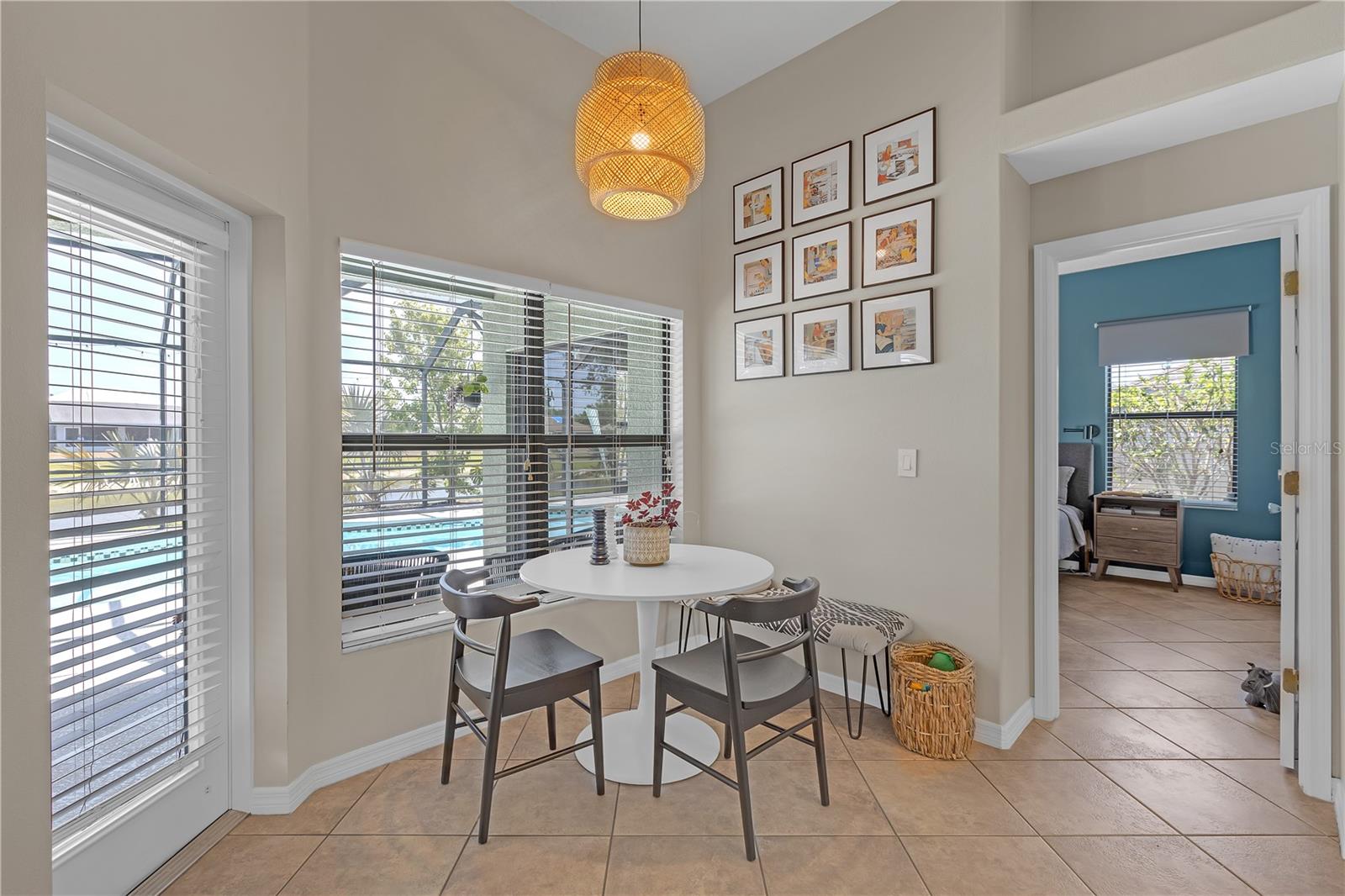 Nestled in the serene Sugar Mill Lakes community, 4535 29th Avenue Circle East in Palmetto, FL, offers a harmonious blend of comfort, style, and outdoor enjoyment. This meticulously maintained 3-bedroom, 2-bathroom home spans 1,941 square feet and sits on a generous .22-acre lot, providing ample space for both relaxation and entertainment.Interior Features:Open Floor Plan: The home boasts an open layout with 18-inch diagonal tile flooring throughout, creating a seamless flow between rooms.Spacious Living Areas: A large family room and a cozy breakfast nook offer versatile spaces for daily living and gatherings.Gourmet Kitchen: The well-appointed kitchen includes modern appliances and ample cabinetry, catering to both everyday meals and special occasions.Master Suite Retreat: The expansive master bedroom features a tray ceiling, two walk-in closets, and direct access to the pool area. The en-suite bathroom offers a garden tub and dual sinks, providing a spa-like experience.Guest Bedrooms: Two generously sized guest bedrooms each come with oversized closets, ensuring comfort and storage space.Outdoor Living:Screened Pool Area: Step outside to a screened lanai featuring a kidney-shaped pool measuring 28x13 feet and nearly 7 feet deep. The pool is prewired for electronic entertainment and can easily be converted to saltwater.Private Backyard Oasis: The semi-private backyard is adorned with swaying bamboo, mature trees, and a heated pool, creating an ideal setting for barbecues and evening relaxation.Landscaped Grounds: The property showcases updated landscaping with stone walkways, river rock, mulch, and a variety of shrubs and plants, enhancing its curb appeal.Additional Amenities:Garage: The 476-square-foot garage features epoxy flooring, a utility sink, and ample space for two vehicles, storage, or a workshop area. Storage:Spacious attic accessible via a stair system.Community Features: Residents of Sugar Mill Lakes enjoy access to tennis courts, a playground, and a picnic area overlooking scenic ponds, all with low HOA fees and no CDD fees.This home is a must-see for those seeking a blend of indoor comfort and outdoor leisure in a tranquil setting. Its thoughtful design and prime location make it an exceptional choice for your next move