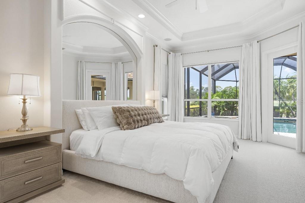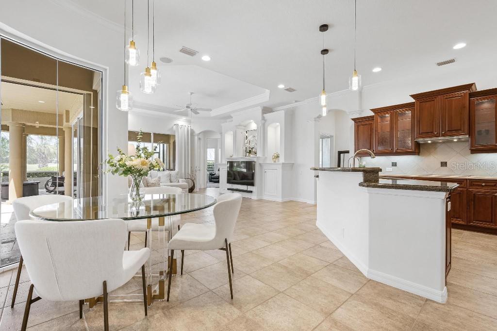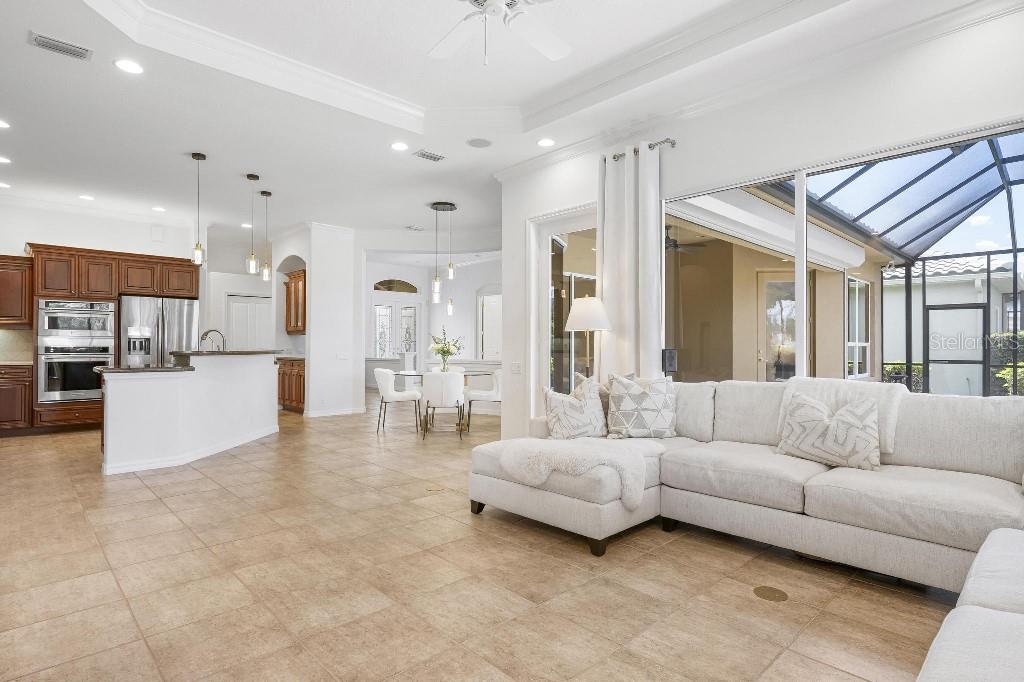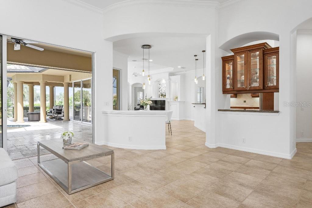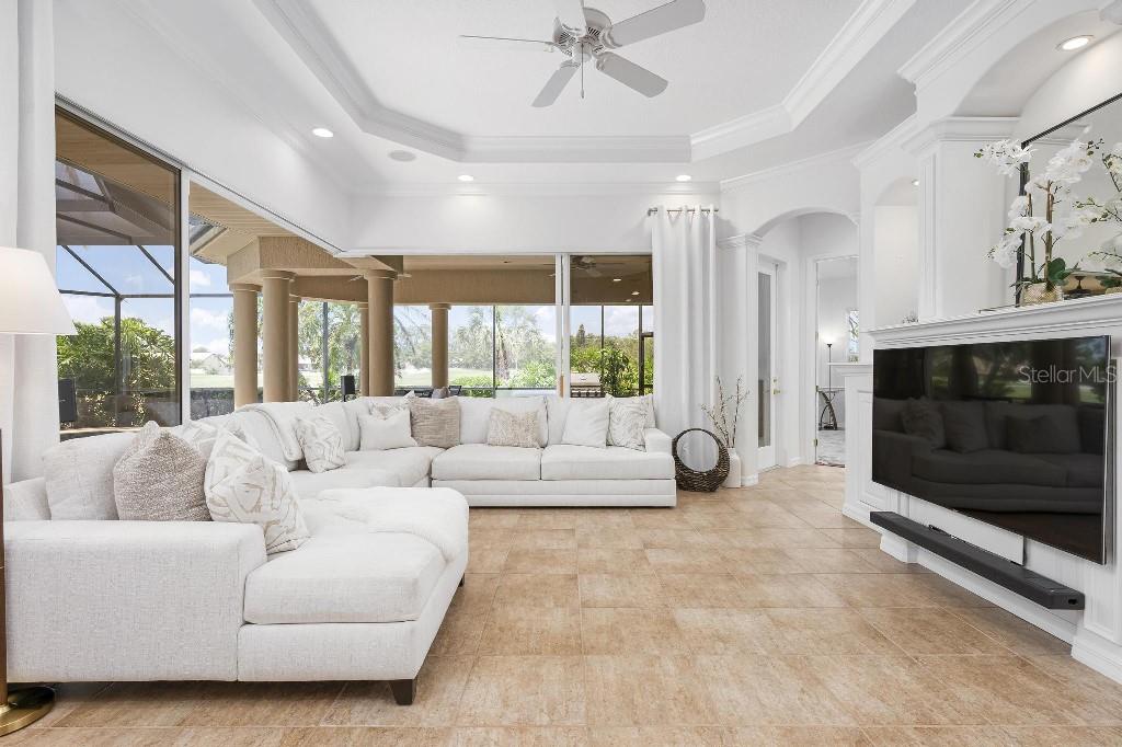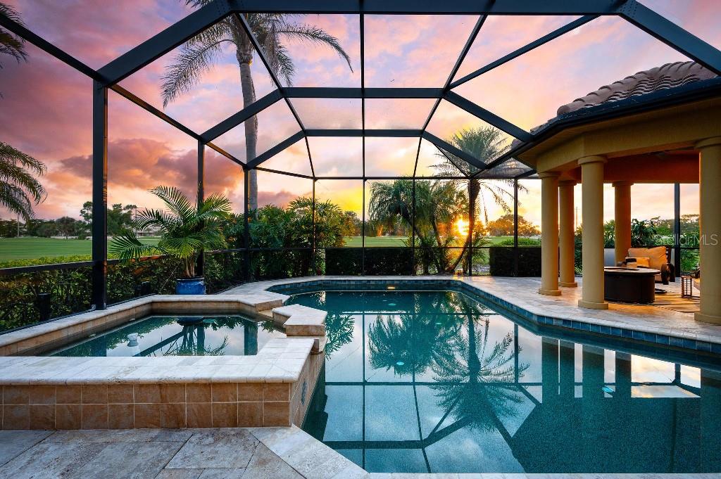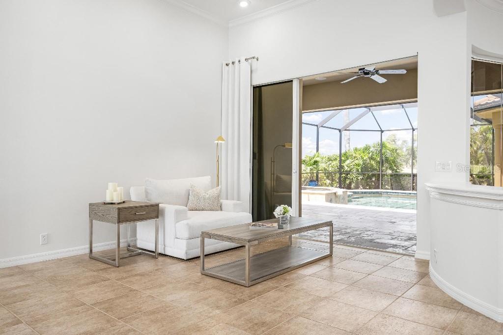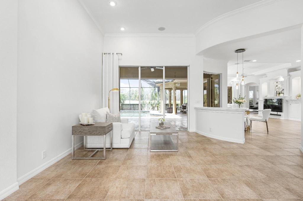 Experience the ultimate Florida lifestyle in the exclusive, award-winning gated community of Pelican Pointe Golf and Country Club. This Arthur Rutenberg-designed home offers the perfect blend of luxury, comfort, and resort-style living. With 3 bedrooms, 3 full bathrooms, a versatile den/office/bonus room, a Pebble Tec heated pool and spa, plus a large 3-car garage, this home is designed for both style and practicality. Enjoy the assurance and peace of mind of the recently installed tile roof (2023), equipped with a whole-house 22kw Generac generator with a buried 500 gallon natural gas tank, added safety and convenience with impact windows in the front of the home, electric storm shutters across the back lanai and accordion for the side windows. Step inside to high-end details, including soaring 10 and 12-foot ceilings with crown molding, 8-foot doors. The chef-inspired kitchen boasts 42" solid wood cabinets with pull-out shelving, high-end Kitchen Aid appliances. Designer touches include new pendant lights, under cabinet lighting, full-length aquarium window. A whole-house water filtration system and water softener, plus an under-the-counter reverse osmosis for the kitchen. Enjoy the convenience of a central vacuum system for everyday ease, and surround sound ceiling speakers throughout the home for both indoor and outdoor entertainment. The luxurious primary suite features a spa-inspired en suite bath with a walk-in Roman shower, soaking tub, dual sinks, a private water closet, and added luxury of 2 separate walk-in closets. The open concept design allows natural light to flood the home with a dramatic zero corner sliding glass doors for a seamless indoor-outdoor resort-style living space on your 15x24 covered cabana with a built-in wet bar. Surround yourself with elegance as you step onto the timeless beauty of Travertine pavers around the pool to watch the perfect sunsets! Additional upgrades include: (2025)Pentair 3.0 hp WiFi pool pump, (2025) water Heater with a recirculation system for instant hot water, (2023)Tile Roof, (2024)New professionally painted interior, including ceilings and trim, Sherwin Williams (2025)New interior doors, (2025) Custom closet doors, (2024) New carpet in all bedrooms, (2024) Window treatments and shades, (2024) Electrolux washer and dryer, (2025) Interior Lighting. Low HOA fees include lawn care, ground maintenance, cable TV, Internet, 24-hour Guard, irrigation, social membership, Fitness center, heated pool, tennis, and pickleball. Pelican Pointe offers unparalleled amenities that cater to every lifestyle with a full-service clubhouse with restaurant and bar, as well as a Golf Pro shop. For the golf enthusiasts, the 27-hole championship golf course, membership optional! Schedule your showing today. Visit the Website for additional pictures and info.
