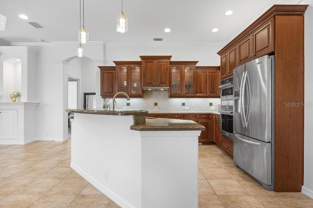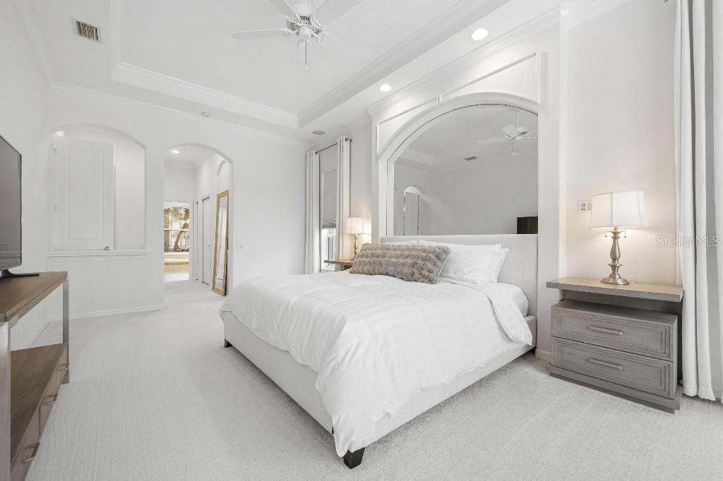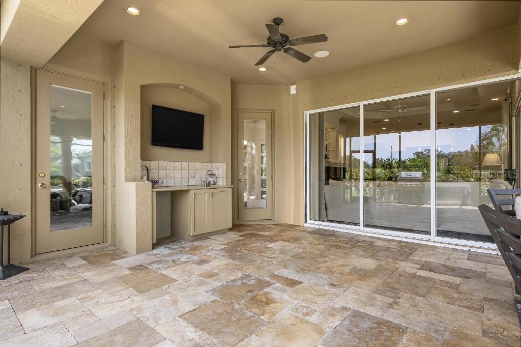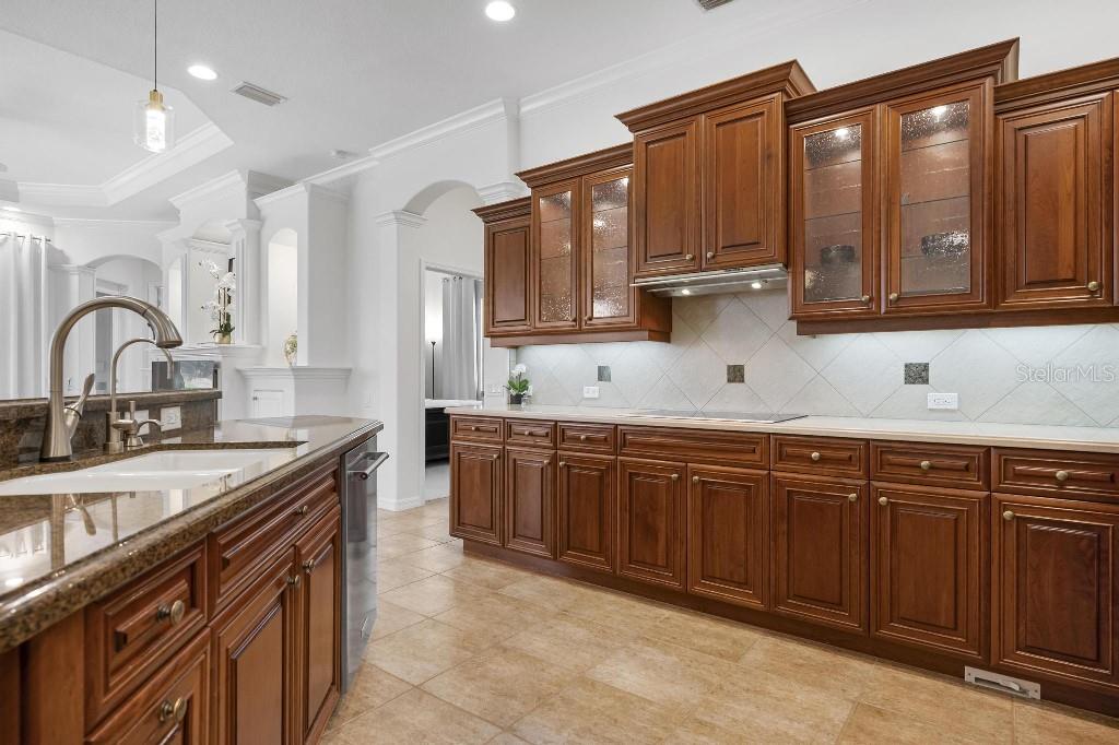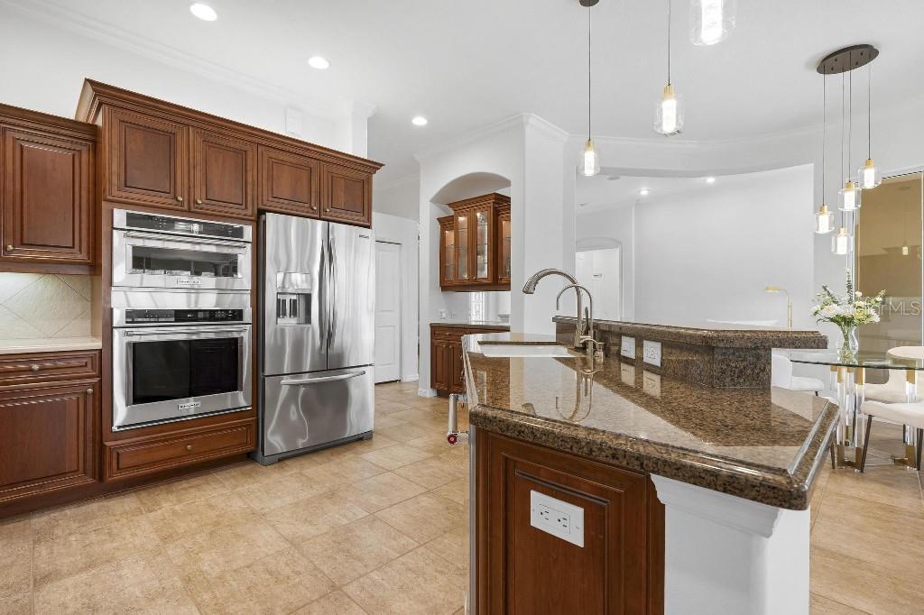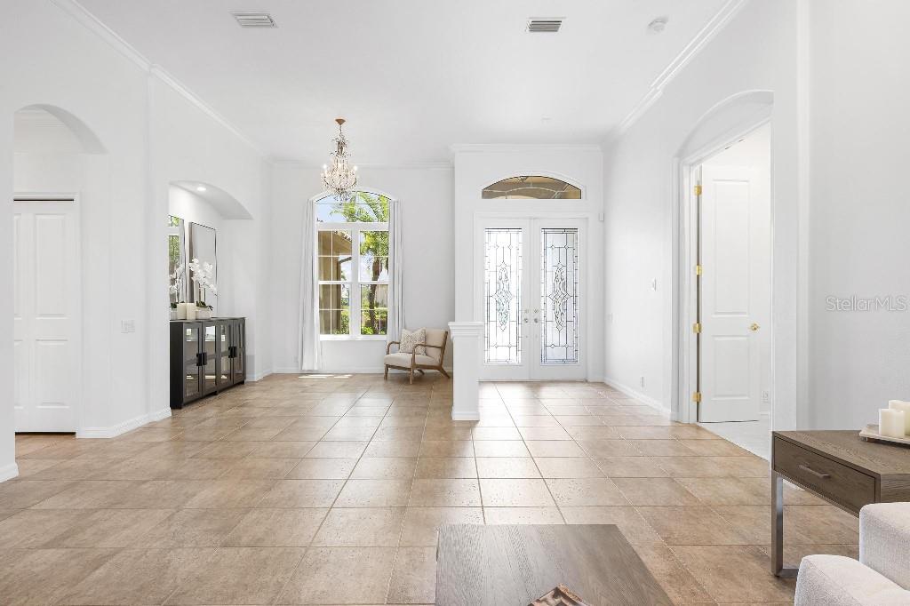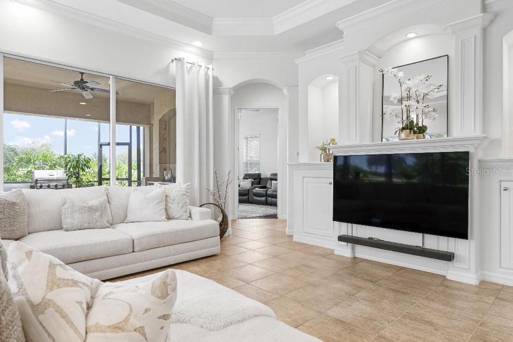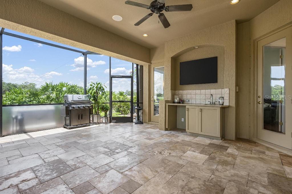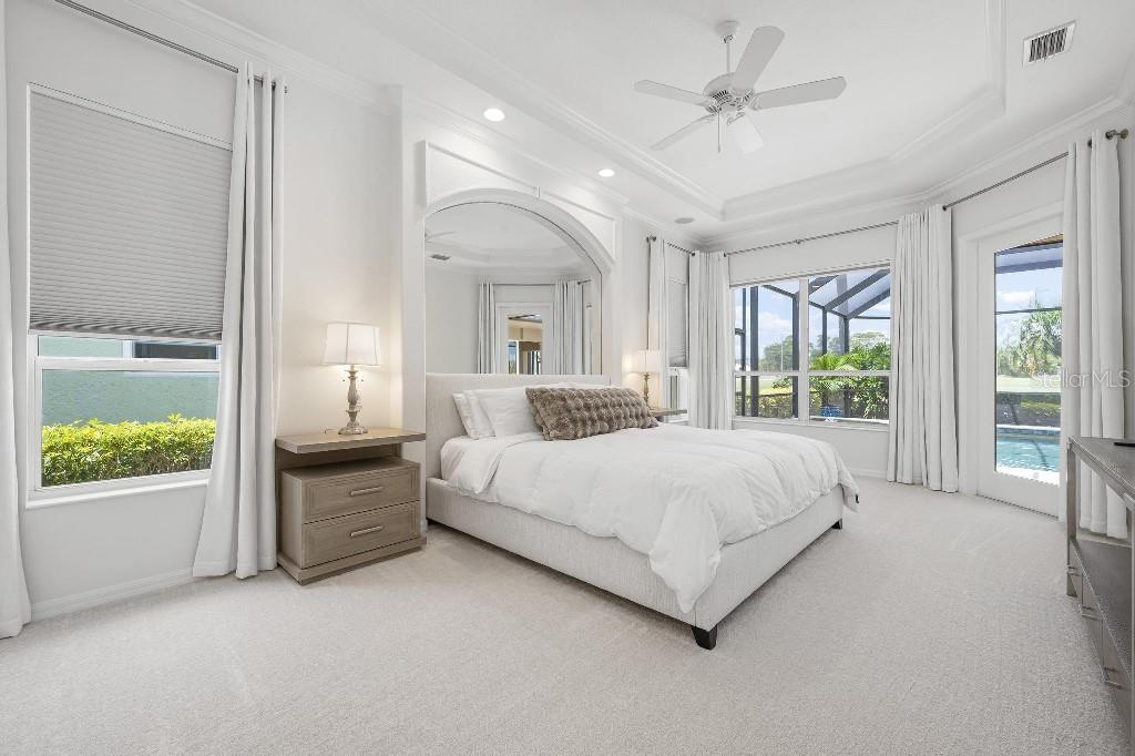 Experience the ultimate Florida lifestyle in the exclusive, award-winning gated community of Pelican Pointe Golf and Country Club. This Arthur Rutenberg-designed home offers the perfect blend of luxury, comfort, and resort-style living. With 3 bedrooms, 3 full bathrooms, a versatile den/office/bonus room, a Pebble Tec heated pool and spa, plus a large 3-car garage, this home is designed for both style and practicality. Enjoy the assurance and peace of mind of the recently installed tile roof (2023), equipped with a whole-house 22kw Generac generator with a buried 500 gallon natural gas tank, added safety and convenience with impact windows in the front of the home, electric storm shutters across the back lanai and accordion for the side windows. Step inside to high-end details, including soaring 10 and 12-foot ceilings with crown molding, 8-foot doors. The chef-inspired kitchen boasts 42" solid wood cabinets with pull-out shelving, high-end Kitchen Aid appliances. Designer touches include new pendant lights, under cabinet lighting, full-length aquarium window. A whole-house water filtration system and water softener, plus an under-the-counter reverse osmosis for the kitchen. Enjoy the convenience of a central vacuum system for everyday ease, and surround sound ceiling speakers throughout the home for both indoor and outdoor entertainment. The luxurious primary suite features a spa-inspired en suite bath with a walk-in Roman shower, soaking tub, dual sinks, a private water closet, and added luxury of 2 separate walk-in closets. The open concept design allows natural light to flood the home with a dramatic zero corner sliding glass doors for a seamless indoor-outdoor resort-style living space on your 15x24 covered cabana with a built-in wet bar. Surround yourself with elegance as you step onto the timeless beauty of Travertine pavers around the pool to watch the perfect sunsets! Additional upgrades include: (2025)Pentair 3.0 hp WiFi pool pump, (2025) water Heater with a recirculation system for instant hot water, (2023)Tile Roof, (2024)New professionally painted interior, including ceilings and trim, Sherwin Williams (2025)New interior doors, (2025) Custom closet doors, (2024) New carpet in all bedrooms, (2024) Window treatments and shades, (2024) Electrolux washer and dryer, (2025) Interior Lighting. Low HOA fees include lawn care, ground maintenance, cable TV, Internet, 24-hour Guard, irrigation, social membership, Fitness center, heated pool, tennis, and pickleball. Pelican Pointe offers unparalleled amenities that cater to every lifestyle with a full-service clubhouse with restaurant and bar, as well as a Golf Pro shop. For the golf enthusiasts, the 27-hole championship golf course, membership optional! Schedule your showing today. Visit the Website for additional pictures and info.