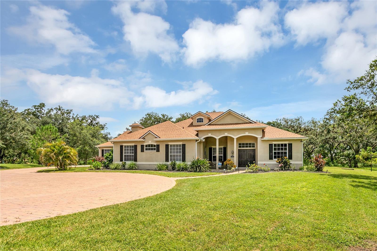 ONLY HOME WITH IT ALL! Pool 1+ Acre Lot Cul-de-sac No CDD Conservation Views New Roof 2022. Don't miss out on this custom-built home on over an acre with pool, conservation and wildlife views! Tucked away at the end of a quiet cul-de-sac, this one-of-a-kind home is a rare gem offering privacy, charm, and space to breathe. Situated on just over an acre of beautifully wooded land, this 4-bedroom, 2 full bath, 2 half bath residence blends comfort with natural beauty. Step inside to discover a spacious open-concept layout, perfect for entertaining or enjoying quiet evenings at home. The heart of the home features a bright and airy kitchen that flows seamlessly into the dining and living areas, all overlooking your private backyard oasis. Out back, a sparkling pool invites relaxation, while deer often wander through, creating a peaceful, almost storybook setting. Feed and watch them from your patio -- it's a daily delight! A new roof installed in 2022 offers peace of mind, and thoughtful touches throughout the home make it as functional as it is beautiful. There's also a buried propane tank which fuels the fireplace and has a hookup outside the pool bath to provide the possibility of an outdoor kitchen with a grill in the future. With generous bedrooms and bathrooms, and plenty of room to spread out, this property checks all the boxes for those seeking space, serenity, and something truly special. Don't miss this rare opportunity to own a slice of nature with all the comforts of home. SAVE MORE: 1% lender credit (based on loan amount) toward closing costs or rate buy-down with seller's preferred lender. Ask for details!