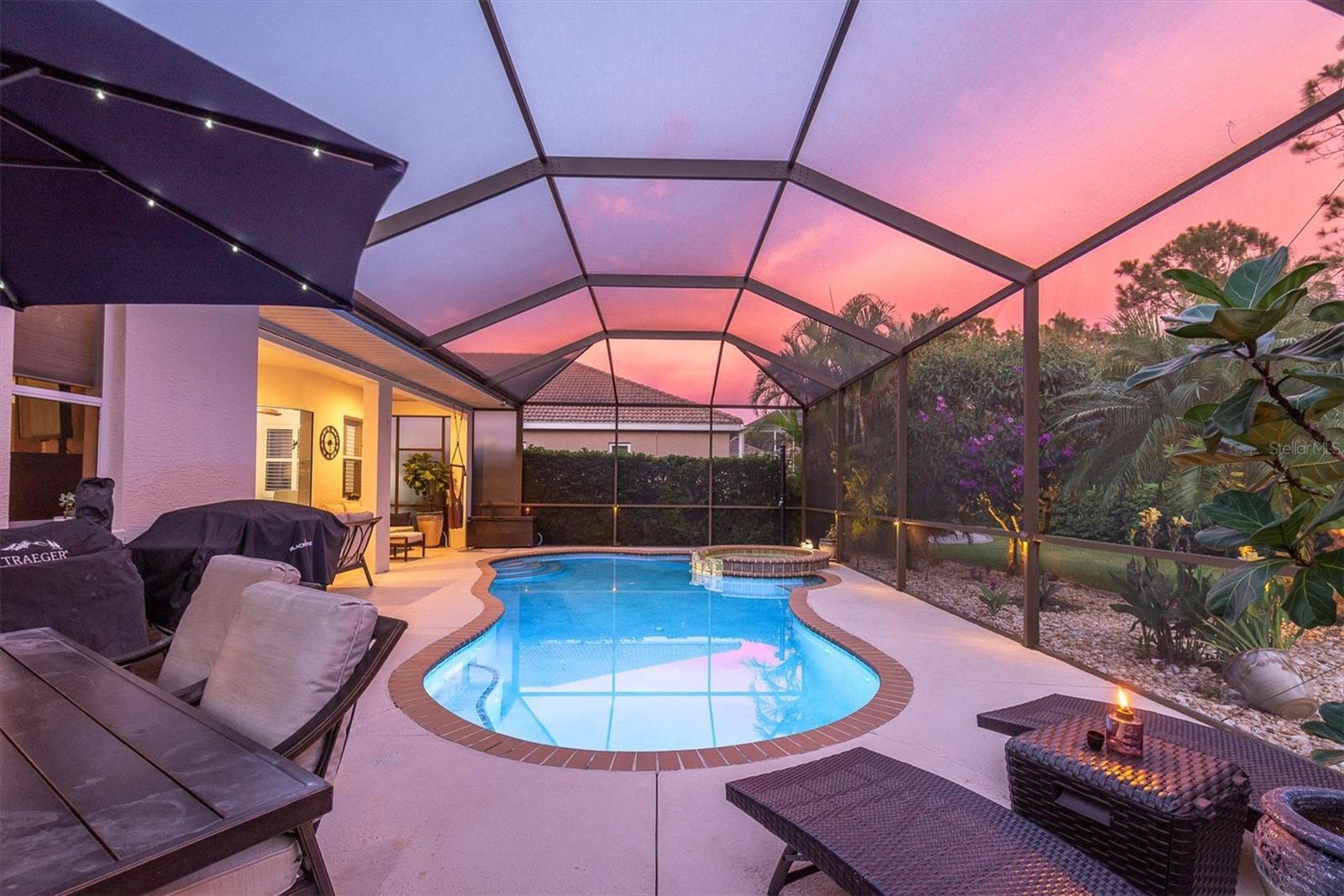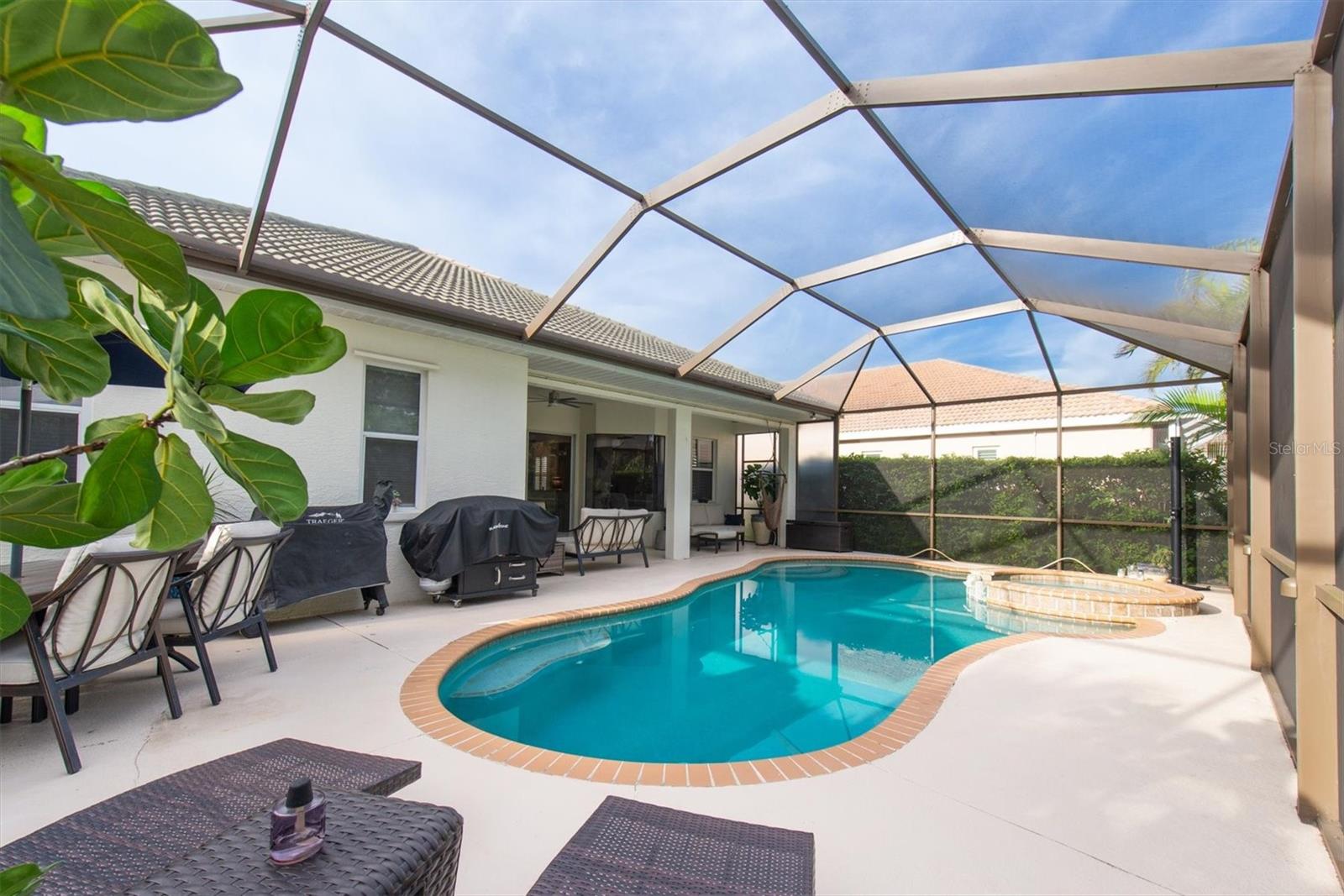 Price Reduced and Ready to Sell! If you want privacy and a large back yard with a gorgeous pool, this is a must see! Tucked away in the sought-after neighborhood of Mote Ranch, adjacent to University Park Country Club, with EXTREMELY LOW HOA fees and fantastic amenities, this 3-bedroom, 2-bathroom gem offers the perfect blend of luxury, comfort, and convenience. With a 2-car garage, tile roof with 20 years of life left, and a long list of premium upgrades, this home is move-in ready and made for modern living. Step inside to soaring high ceilings, all-new ceiling fans, and a no-carpet interior that feels fresh and contemporary. The open-concept kitchen and family room combo is ideal for everyday living, while the massive living/dining room offers the perfect flex space for a home office or entertaining. This home's chef's kitchen features stone countertops, a built-in range and oven, and a sleek, modern design that flows effortlessly into the living space. The updated master bathroom and walk-in closet in the large primary suite add to the home's luxurious feel. Your private backyard oasis awaits with a heated saltwater pool and spa, enclosed in a no-see-um proof pool cage for year-round enjoyment. Surrounded by stone landscaping, professional outdoor lighting, and no rear neighbors, this space is perfect for relaxing or entertaining in total privacy. This smart, secure & efficient home boasts a whole-home water purifier, filtration, and softener system, new AC (2023) for peace of mind, 3 Nest security cameras for added security, hurricane shutters for every window + soft shutter for the lanai, connection to a whole house generator system, seamless gutters, full irrigation system, and so much more. This home checks every box--luxury finishes, smart upgrades, and a location that can't be beat. Enjoy access to a clubhouse, pool, and playground, all while being just minutes from top-rated schools, UTC shopping, dining, and more. Schedule your private tour today and experience the lifestyle you've been dreaming of!