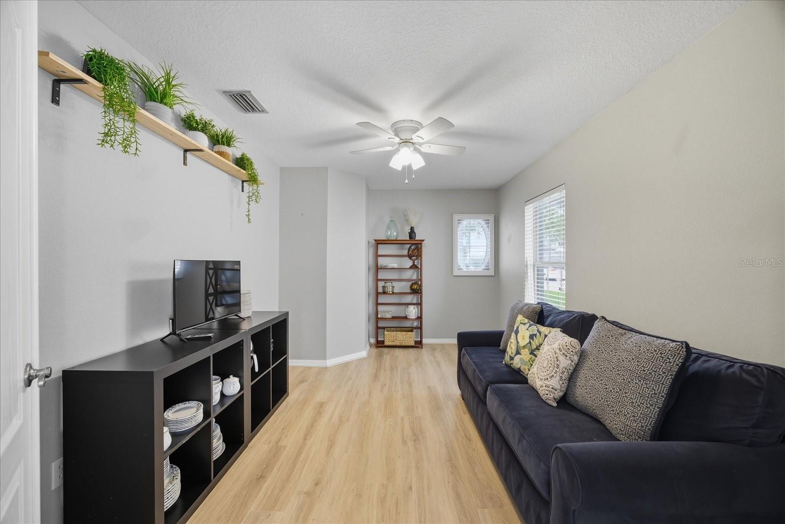 *** ROOF WILL BE DELIVERED PRIOR TO CLOSING*** This is a 3 bedroom, 2 bath home in the Aberdeen community of Parrish, built in 2005. DRIVEWAY just repaved (Sept 2025). It features a spacious open floor plan with high ceilings, creating a bright and airy feel upon entry. The kitchen includes solid wood cabinets, a breakfast bar, pantry, double stainless-steel sink, and sliders that open to a screened-in lanai. The lanai provides a peaceful setting overlooking a pond, home to various birds.The home features a split floor plan with the master bedroom at the back, offering pond views, two closets, and a private bath. Two additional bedrooms, a guest bath, and a den/office are off the great room. The total living area is 1,411 square feet.Located in the Aberdeen community on a quiet cul-de-sac, the property offers a walking trail, playground, and is pet friendly. The location provides convenient access to major highways, shopping, restaurants, schools, and other amenities.