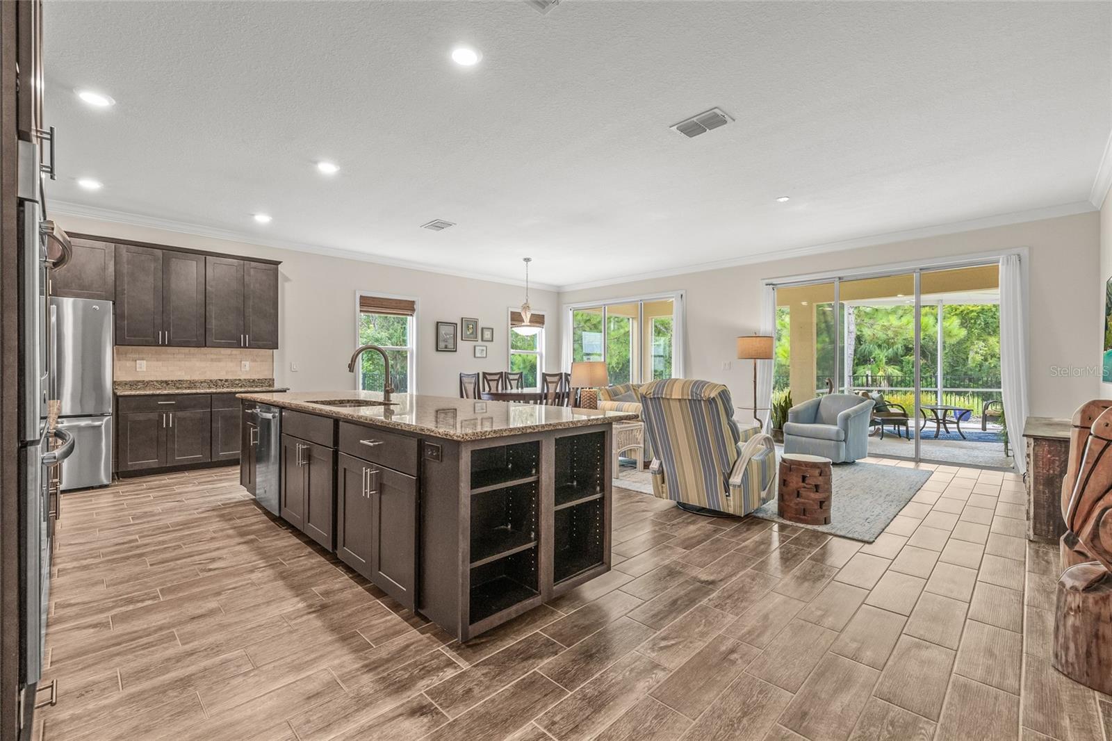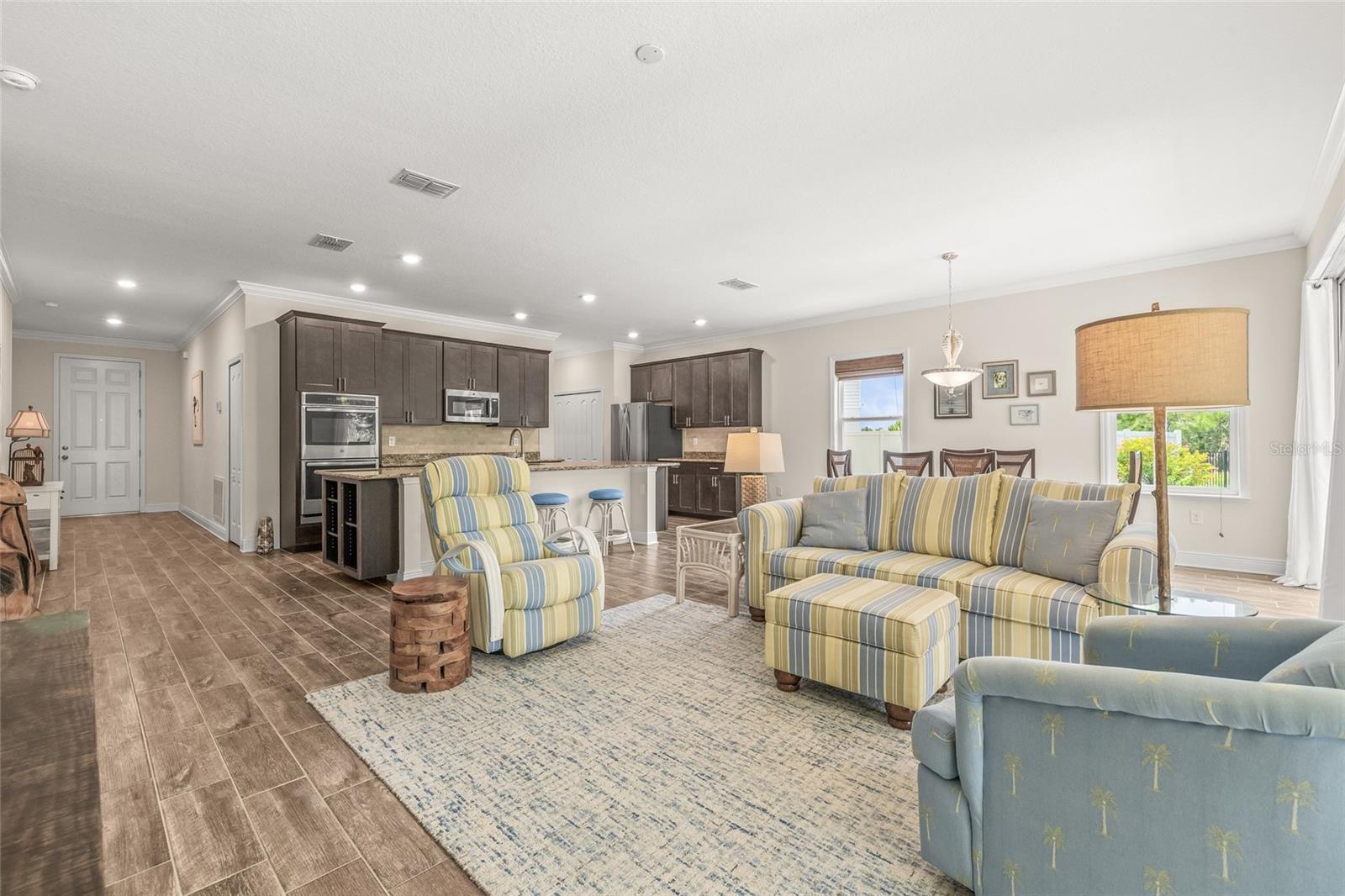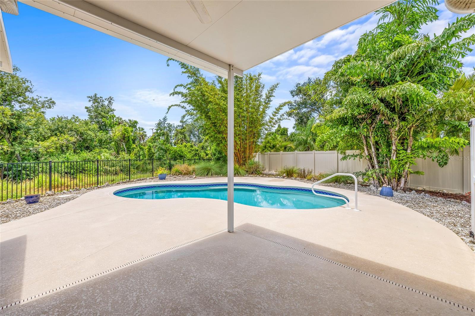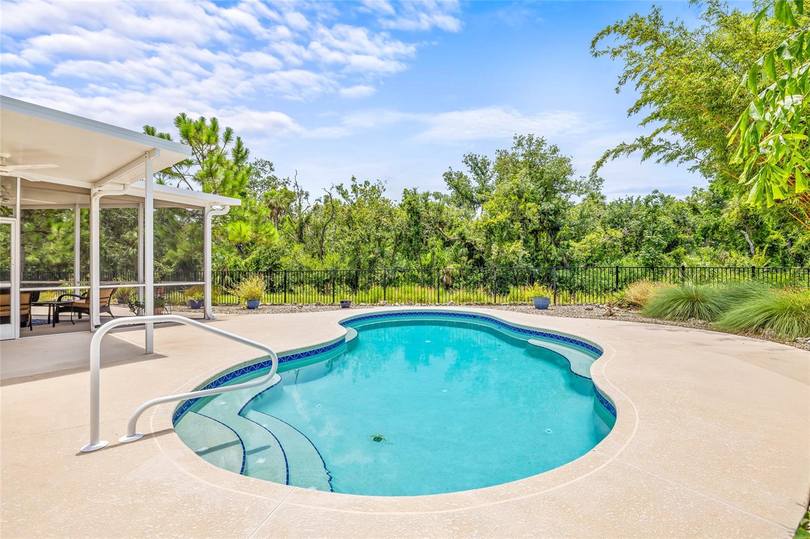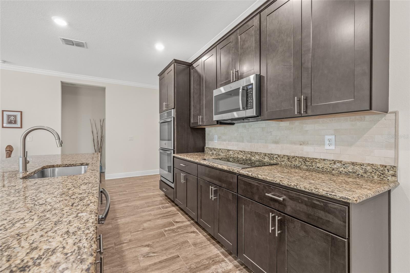 Tucked away at the end of a quiet cul-de-sac in the desirable Heron Creek community, this beautifully maintained 2018-built pool home offers 1,878 sq ft of thoughtfully designed living space. The open-concept floor planfeatures three spacious bedrooms and two full bathrooms, including a master suite with dual vanities and a luxurious rainfall shower for a spa-like experience. The kitchen is outfitted with high-end Wolf wood cabinetry,GE appliances including two self-cleaning ovens, and an oversized stainless steel sink with a Pfister kitchen faucet. You'll also appreciate the convenience of a pantry and USB/electrical outlets for easy device charging.Throughout the home, quality finishes such as granite countertops, brushed nickel light fixtures, and Kwikset satin nickel hardware add a touch of elegance. Step out to the generous screened lanai overlooking yoursolar-heated pool with automatic chlorine feed--a perfect setting for relaxing or entertaining. The .27-acre fenced backyard backs to open space with no rear neighbors, ensuring privacy and tranquility. Impact-grade,low-E dual pane vinyl windows provide added security and energy efficiency, complemented by R-30 ceiling insulation and a high-efficiency Trane heat pump with variable speed A/C. Additional features include an 8'8"first-floor ceiling height, Classique-style raised panel interior doors, decorative wood window sills, wall-to-wall carpet, Plank tile. The home is built with structural steel-reinforced concrete block exterior walls and a 10-yearstructural warranty for peace of mind, with hurricane shutters included. Outside, a brick driveway and walkway enhance the curb appeal, while a two-car garage offers ample storage space. Low HOA fees and no CDDcharges make this home an excellent value. Located in Flood Zone X with no flooding history, making flood insurance is not required. This move-in-ready home perfectly balances comfort, style, and functionality in one ofthe area's most sought-after neighborhoods.