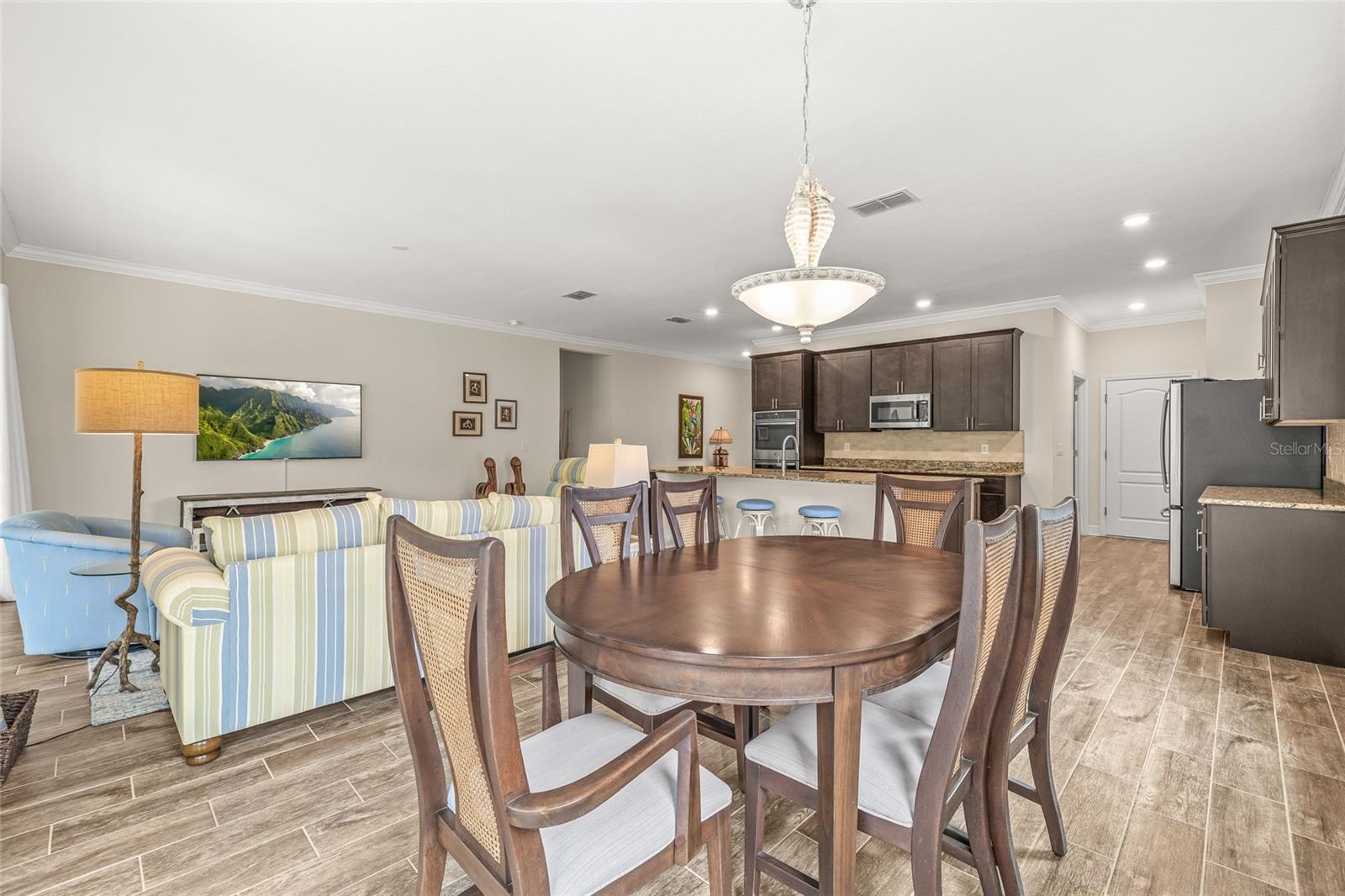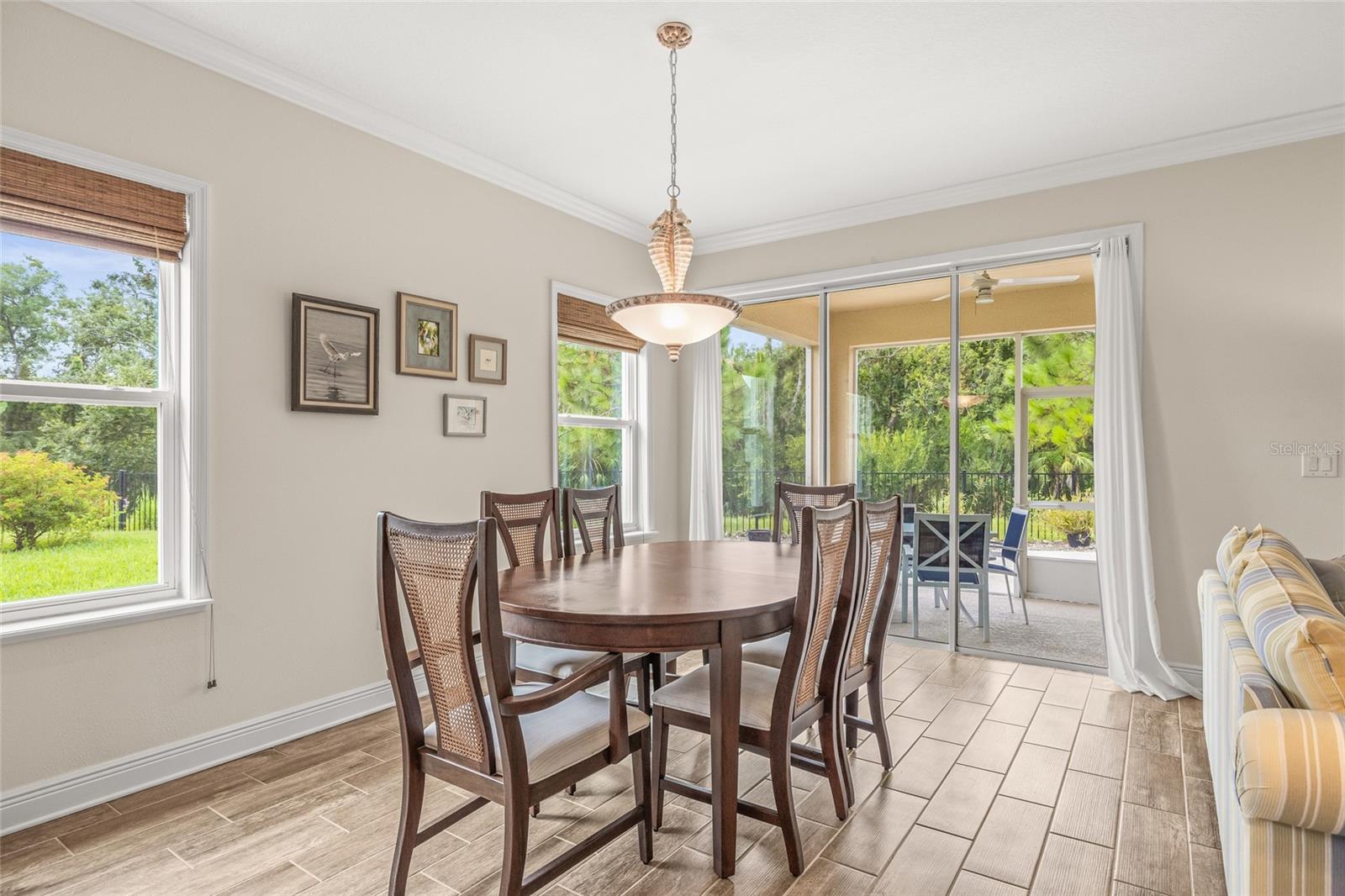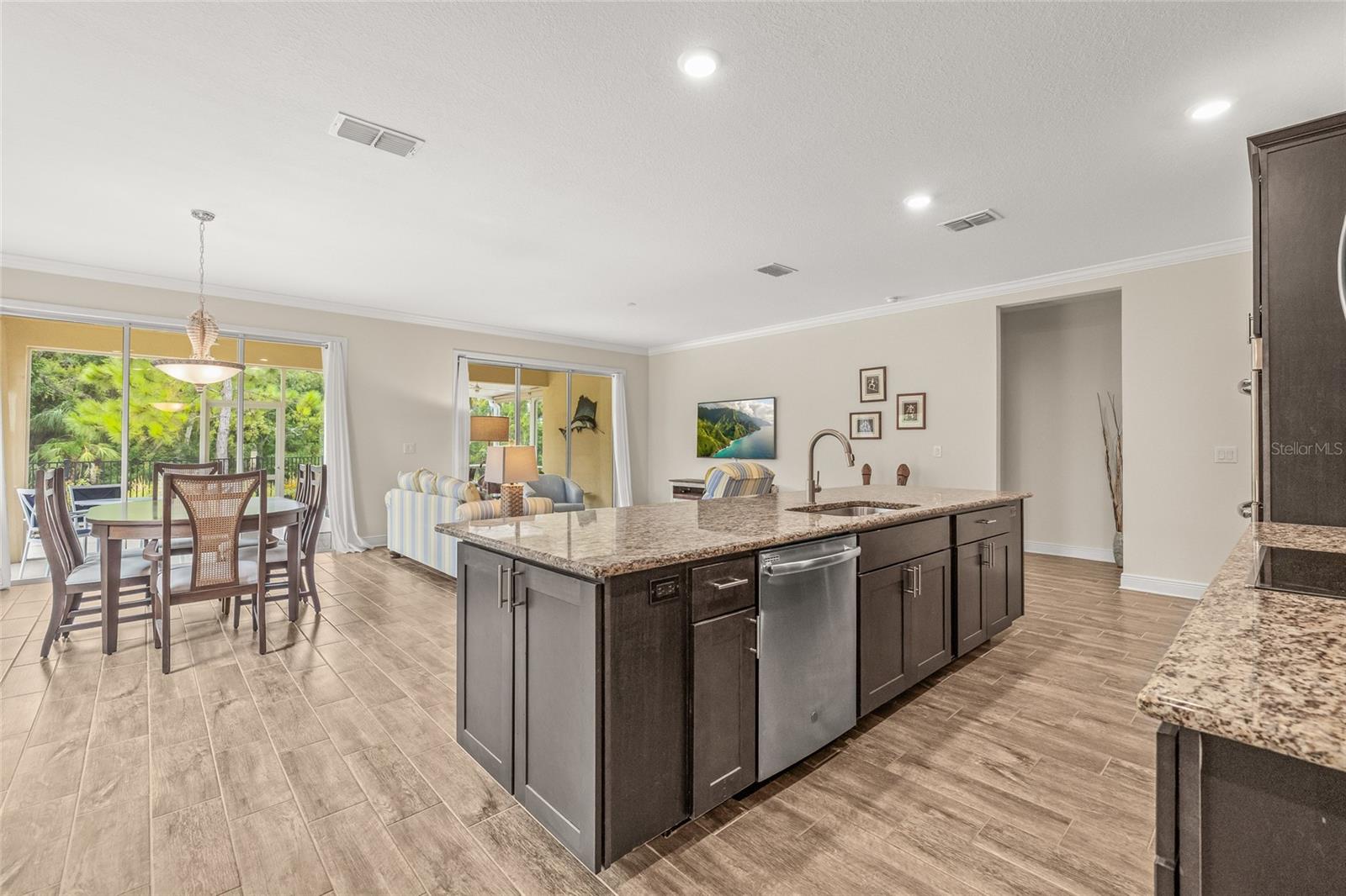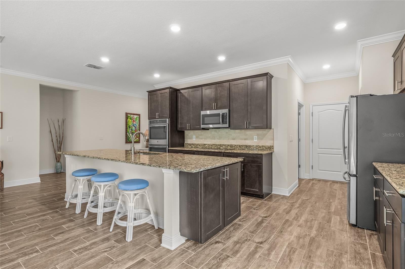 Tucked away at the end of a quiet cul-de-sac in the desirable Heron Creek community, this beautifully maintained 2018-built pool home offers 1,878 sq ft of thoughtfully designed living space. The open-concept floor planfeatures three spacious bedrooms and two full bathrooms, including a master suite with dual vanities and a luxurious rainfall shower for a spa-like experience. The kitchen is outfitted with high-end Wolf wood cabinetry,GE appliances including two self-cleaning ovens, and an oversized stainless steel sink with a Pfister kitchen faucet. You'll also appreciate the convenience of a pantry and USB/electrical outlets for easy device charging.Throughout the home, quality finishes such as granite countertops, brushed nickel light fixtures, and Kwikset satin nickel hardware add a touch of elegance. Step out to the generous screened lanai overlooking yoursolar-heated pool with automatic chlorine feed--a perfect setting for relaxing or entertaining. The .27-acre fenced backyard backs to open space with no rear neighbors, ensuring privacy and tranquility. Impact-grade,low-E dual pane vinyl windows provide added security and energy efficiency, complemented by R-30 ceiling insulation and a high-efficiency Trane heat pump with variable speed A/C. Additional features include an 8'8"first-floor ceiling height, Classique-style raised panel interior doors, decorative wood window sills, wall-to-wall carpet, Plank tile. The home is built with structural steel-reinforced concrete block exterior walls and a 10-yearstructural warranty for peace of mind, with hurricane shutters included. Outside, a brick driveway and walkway enhance the curb appeal, while a two-car garage offers ample storage space. Low HOA fees and no CDDcharges make this home an excellent value. Located in Flood Zone X with no flooding history, making flood insurance is not required. This move-in-ready home perfectly balances comfort, style, and functionality in one ofthe area's most sought-after neighborhoods.