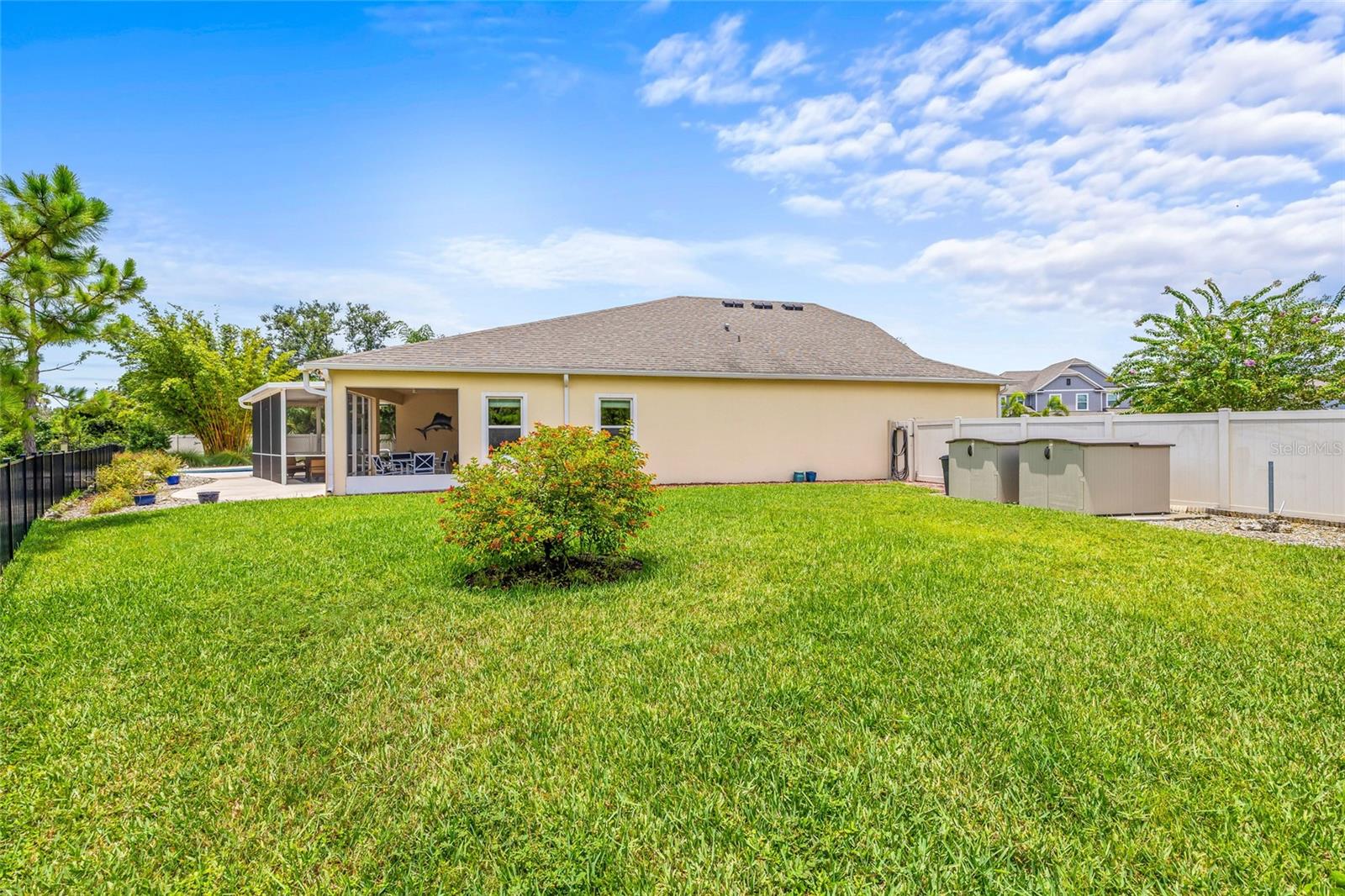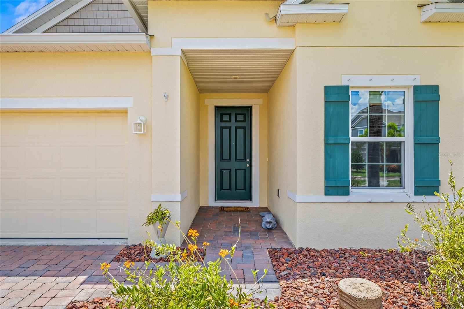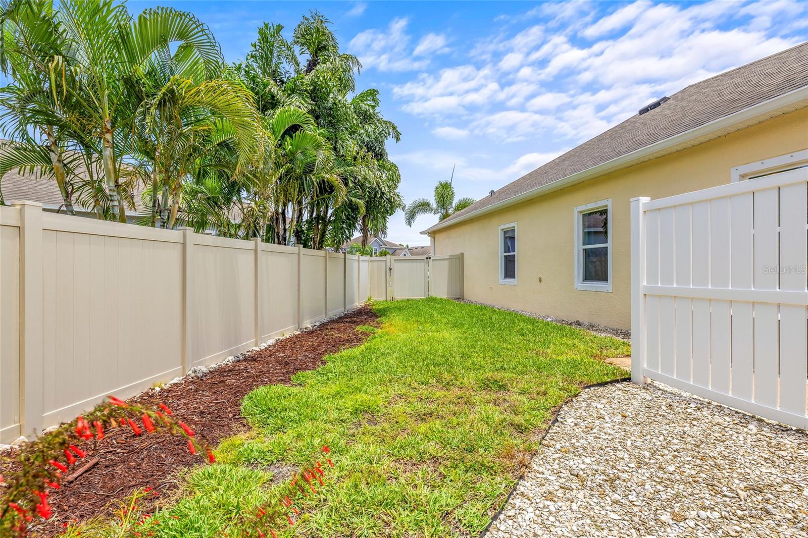 Exterior: Hurricane Shutters, Rain Gutters, Sidewalk, Storage