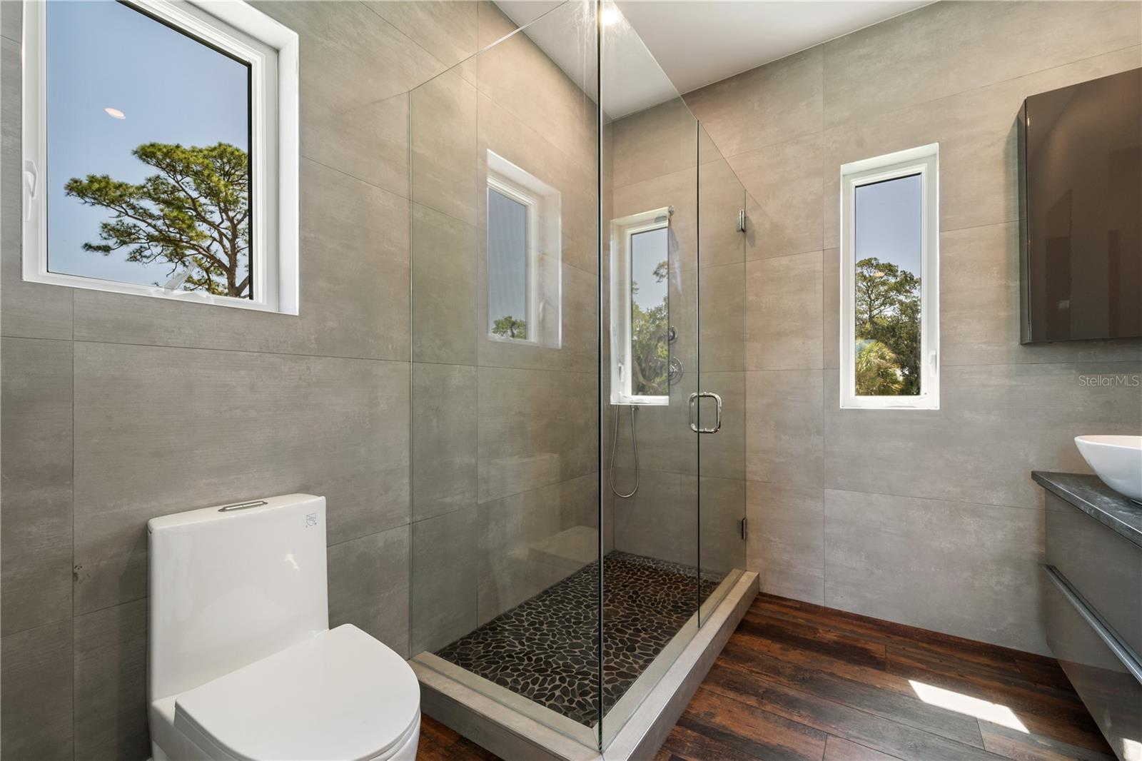 Seize the moment to own this custom designed architectural masterpiece. Truly unique, 4-bedroom, 4-bath resort-like contemporary home provides an abundance of privacy with peaceful water views. The open-concept floor plan seamlessly connects the living areas to the chef-inspired kitchen, creating the ideal space for both: intimate family gatherings and large-scale entertainment. This 6,000 sq/feet construction and up-scale pool area is a paradigm of contemporary Florida living. It is packed with luxury features such as large format porcelain tiles, natural stone, cypress ceilings, cable railings, extra-large kitchen island, floating vanities, barn doors, level-5 drywall finish, balconies, deck, heated saltwater pool with a hot tub and a tanning ledge, custom fence with accent walls, covered pergola with sitting and grilling area, landscaping, outdoor solar and pool lights, firepit, wall torches, outdoor shower, billiard entertainment area. Additional features and extras include hurricane windows & doors, LED recessed lights throughout, oversized driveway, quality construction with stem-wall foundation, 400 Amp service with 3 electrical panels, maintenance free synthetic stucco and flat roof tiles. Main Level features fully equipped gourmet kitchen with gorgeous Absolute Black granite and Brazilian teak countertops, modern European style cabinetry with touch and soft close features, Bosch appliances, huge island with plenty of counter space for your favorite meals and family gatherings. A grand, two-story living room is illuminated by massive picture windows and anchored by a custom- designed electric fireplace. For both comfort and accessibility, this floor provides a serene master suite along with two other bedrooms, ensuring you can relax without navigating stairs. The upstairs retreat boasts a dramatic open loft overlooking the living area and a private, luxurious second master suite. The impressive 2,100 sq/ft finished lower level serves a versatile living and entertainment hub. Guests will enjoy the spacious, air-conditioned bonus area and private powder room. The three-car garages and additional storage provide both luxury and practicality, while a private lanai offers a seamless transition to outdoor enjoyment. Minutes away from a variety of upscale shopping, fine dining and vibrant cultural attractions, offering a balance of privacy and convenience. With easy access to the charming downtown Venice, known for its quaint boutiques, cafes and art galleries, as well as the cultural heart of Sarasota, renowned for its theaters, museums and world-class dining. Additionally, within nearby airports, including Sarasota-Bradenton International and private jet service at Venice Municipal Airport. Sarasota Memorial Hospital just a short drive away. Laurel Nokomis School and Venice High School, located just minutes away, are among the area's top-performing educational institutions. Adjoining lot, MLS#TB8368087 is also for sale, which gives you an option to build another home for your family or combine the lots and build a guest house or mother-in-law unit. And/or you can purchase a waterfront lot adjacent and available (MLS# A4663008) and have water access. The property is fully furnished and owner occupied.