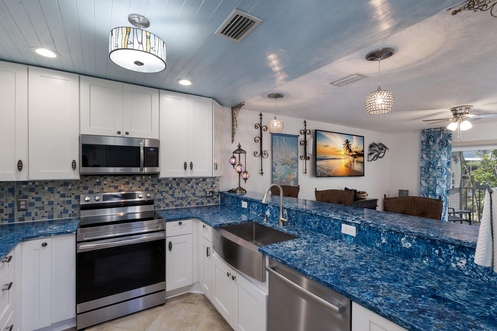 Step into elevated island living, less than two blocks from Anna Maria Island's pristine Gulf shoreline.This rare opportunity in the highly sought-after North Beach Village presents an updated 3-bedroom, 2.5-bath townhome designed for effortless coastal luxury.A spacious two-car garage with epoxy flooring, abundant storage, and versatile flex space sets the tone for convenience. Upstairs, the open-concept living area is bathed in natural light, showcasing a modern chef's kitchen with 42-inch shaker cabinetry, stainless steel appliances, Skye Cambria Quartz countertops, a custom backsplash, and inviting bar seating. Two expansive sliding glass doors seamlessly extend the living space to a private Trex-decked patio--perfect for sunset cocktails or morning coffee with island breezes. Across the main level, you'll find a formal dining area with its own patio retreat, a chic powder room, and a custom-designed laundry room.The upper level reveals a serene primary suite complete with a brand-new California Closet, a fully reimagined spa bath, and a private balcony for moments of escape. Two additional guest rooms feature custom closets--one enhanced with a built-in Murphy bed, desk, and shelving for stylish flexibility.Outdoor living is just as refined: a ground-level patio offers a grill station, sink, and outdoor shower for effortless entertaining after a day at the beach. Premium upgrades include hurricane-impact windows and doors, a reinforced garage door, custom cabinetry throughout, Trex decking, LED lighting, tankless water heater, plus a new roof and HVAC.Residents enjoy a newly refurbished heated pool just steps away, while the community allows weekly rentals--an exceptional opportunity for investment potential alongside personal enjoyment or just an amazing income producer. Best of all, there are no assessments.Here, you're not just purchasing a home--you're embracing the coveted North Beach Village lifestyle, with Anna Maria Island's sugar-white sands, vibrant eateries, and boutique shopping all at your doorstep.