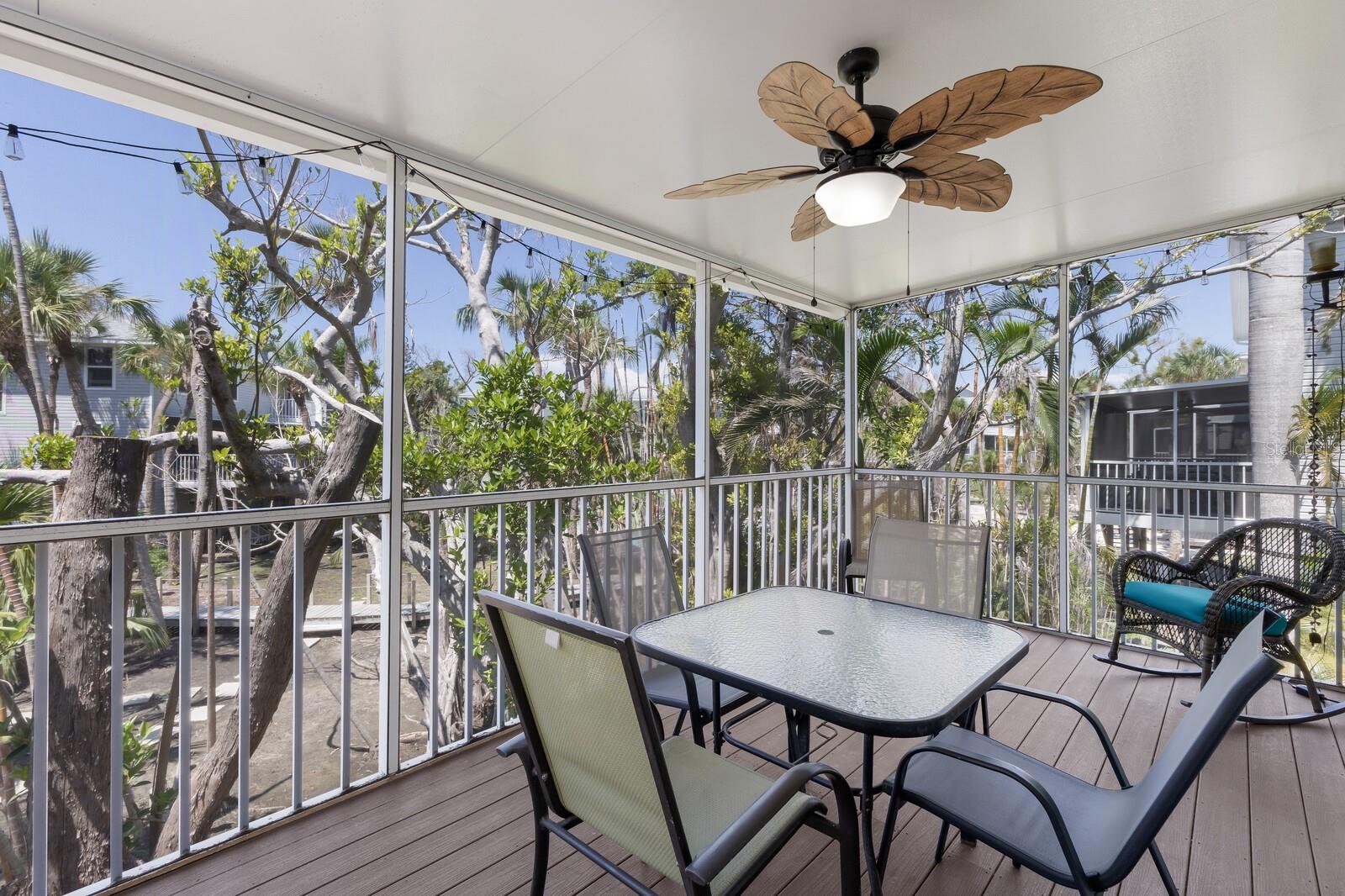 Exterior: Awning(s), Balcony, Lighting, Outdoor Shower, Rain Gutters, Sliding Doors