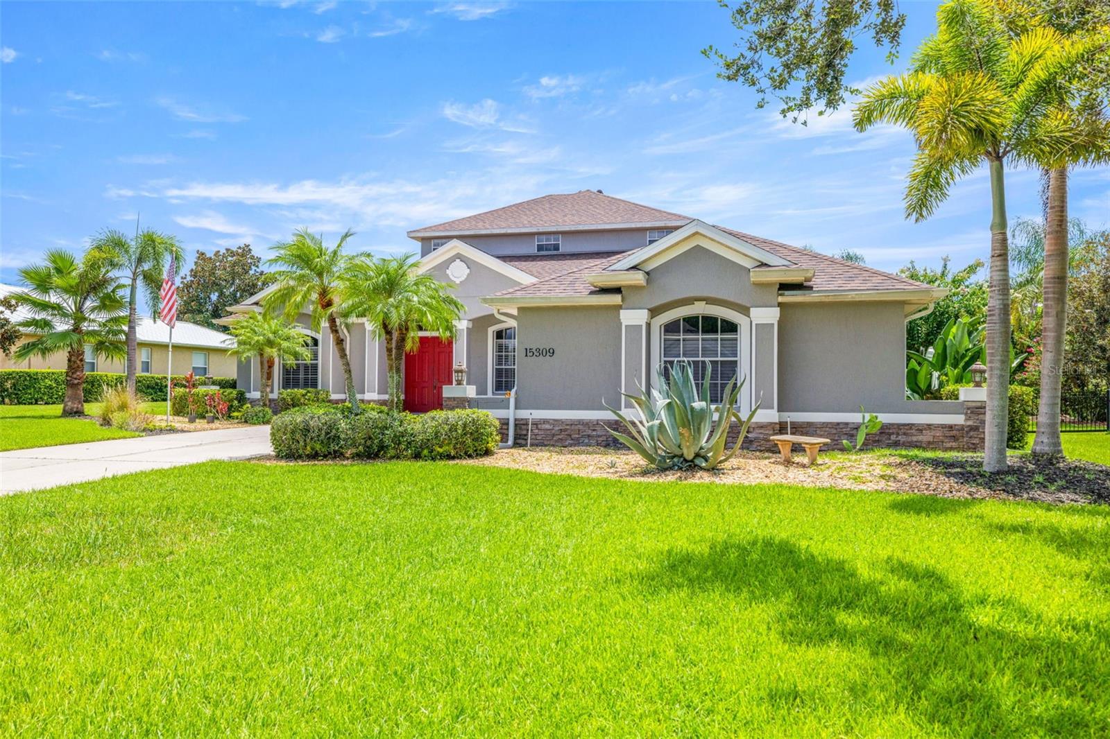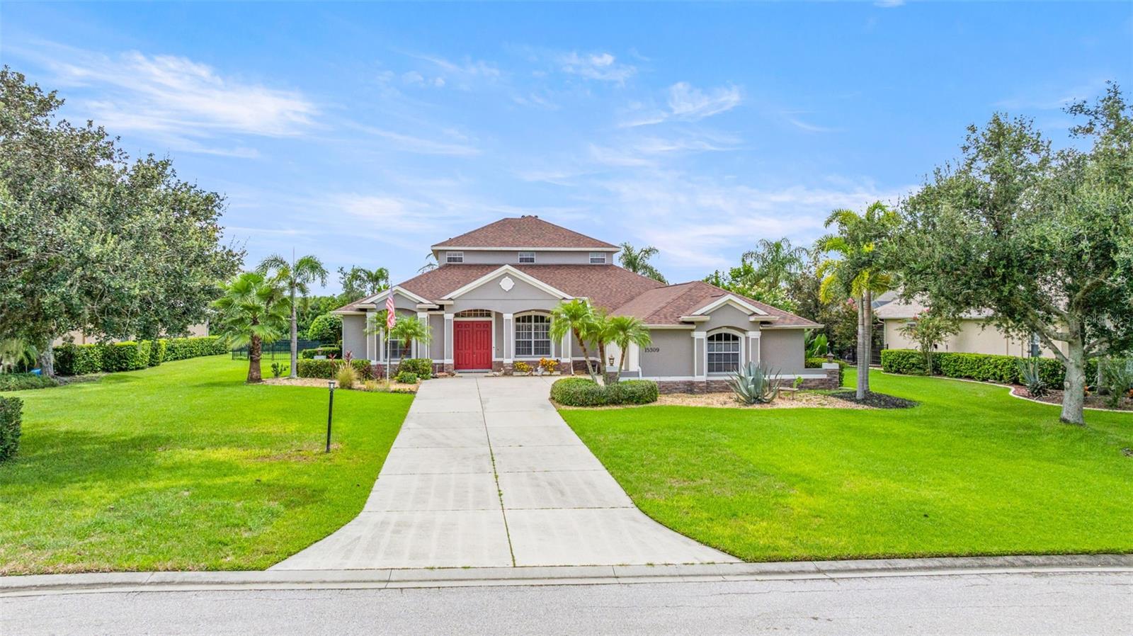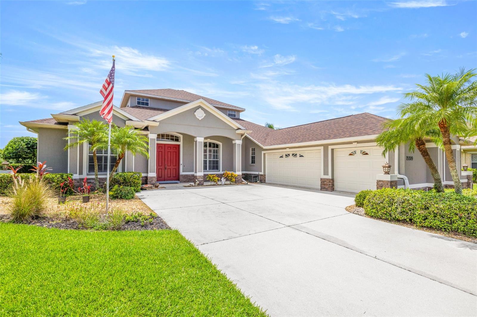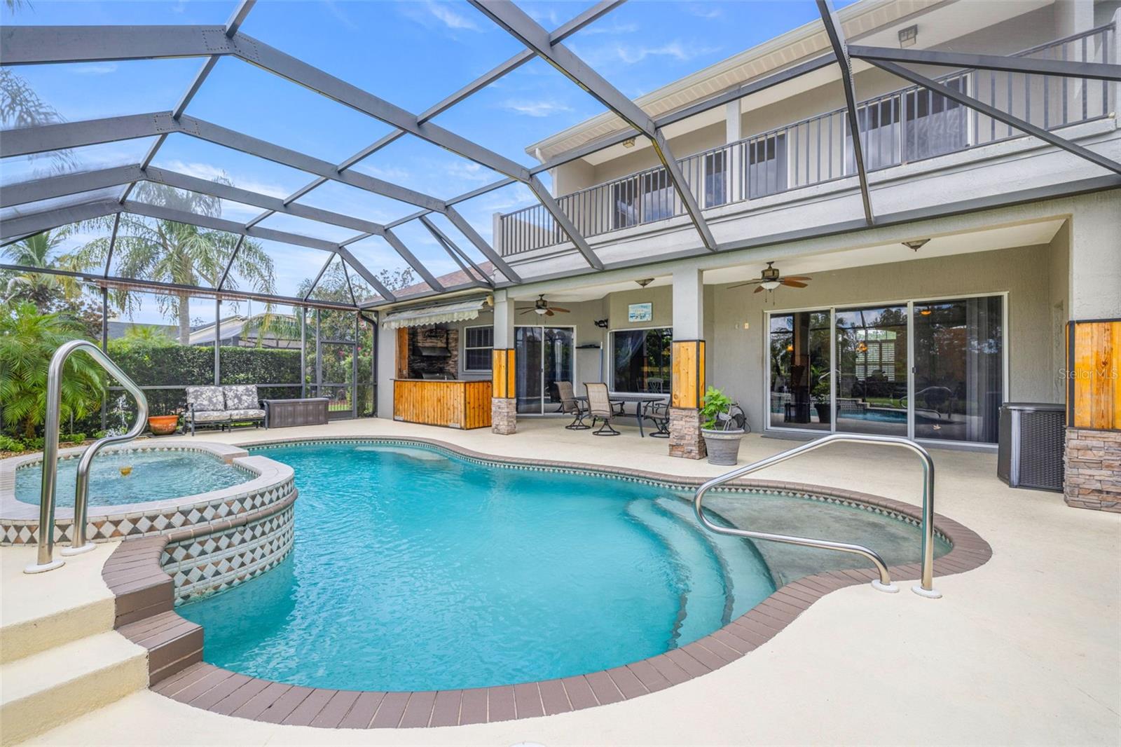 One or more photo(s) has been virtually staged. Potential multi-generational property! Experience luxurious living in this stunning 3,471 sq. ft., 4-bedroom, 3.5-bathroom pool home located in the desirable Twin Rivers community. This residence offers spacious interiors, a 3-car attached garage, and a light-filled open-concept living area with captivating views of the custom pool, spa, and expansive backyard. The three-way split floorplan provides flexibility and privacy. The second floor features 1 bedroom with separate living room, bathroom, kitchenette and its own private balcony overlooking the large backyard and pool. The gourmet kitchen is equipped with stainless appliances, quartz countertops, a tile backsplash, center island and a breakfast nook, offering abundant seating for casual dining or entertaining. Enjoy the ease of maintenance with hard surface flooring throughout the first-floor living spaces, including the primary bedroom. Secondary bedrooms are comfortably carpeted. The conveniently placed laundry room includes a sink for added functionality. The primary bathroom is a luxurious retreat, featuring a double vanity, a garden soaking tub, a spacious stall shower with beautiful decorative tile, and two large walk-in closets. The backyard is fully fenced and has a custom pool with a hot tub and screened/covered lanai provide a private oasis for outdoor enjoyment and entertainment, complete with a built-in outdoor kitchen. Large fully-fences backyard. 2-year-old roof. The home boasts meticulous landscaping, adding to its impressive curb appeal. Twin Rivers is a well-established community known for its architectural charm. It offers convenient access to a wide array of attractions in the Tampa Bay area, including Sarasota, Lakewood Ranch, Gulf beaches, boating activities, a variety of local shopping and dining establishments, and easy access to Interstate-75 and two nearby airports for convenient commutes to points north and south.