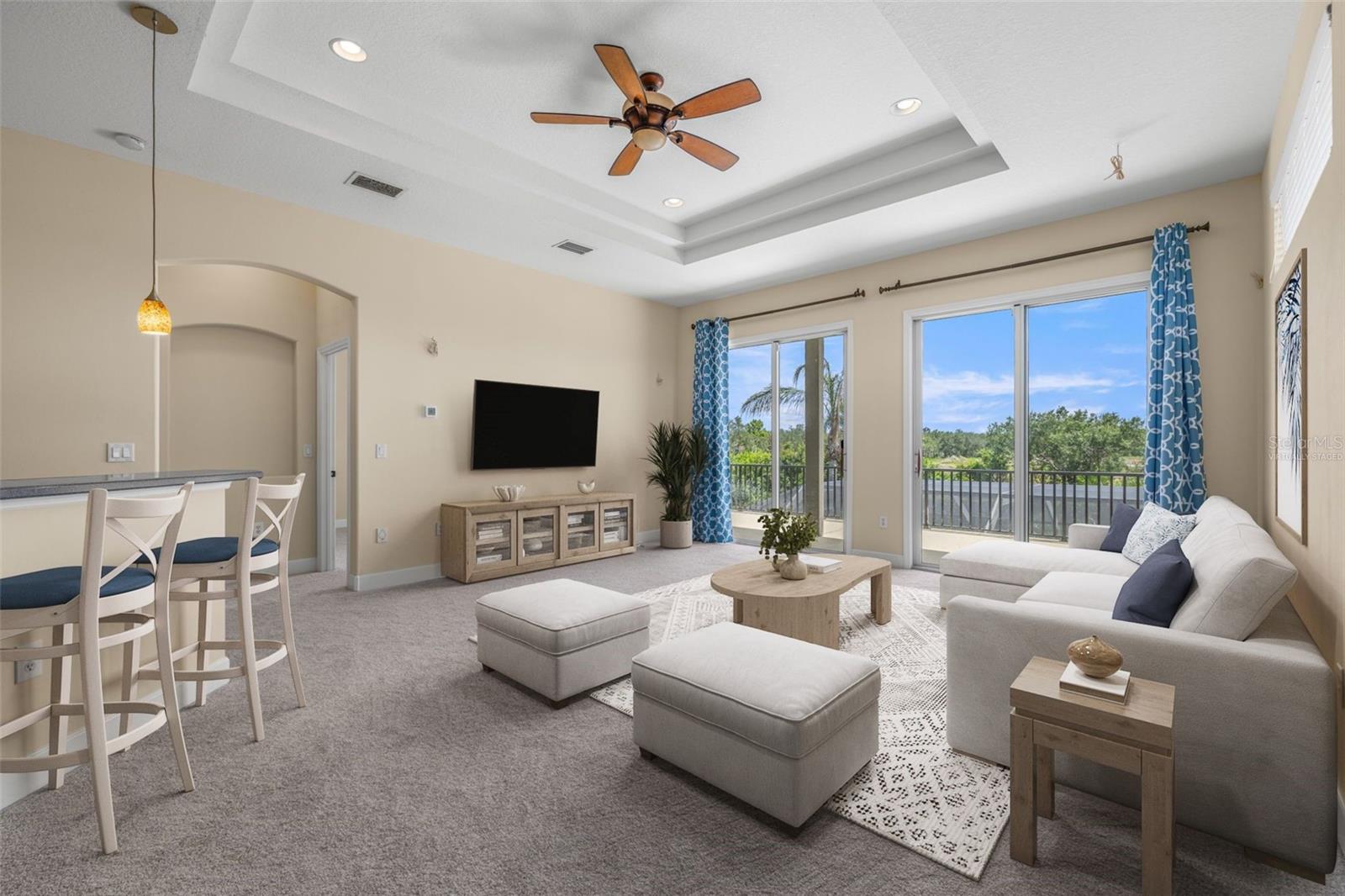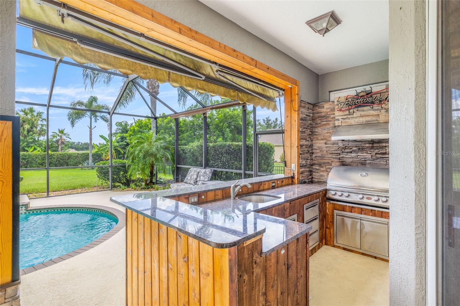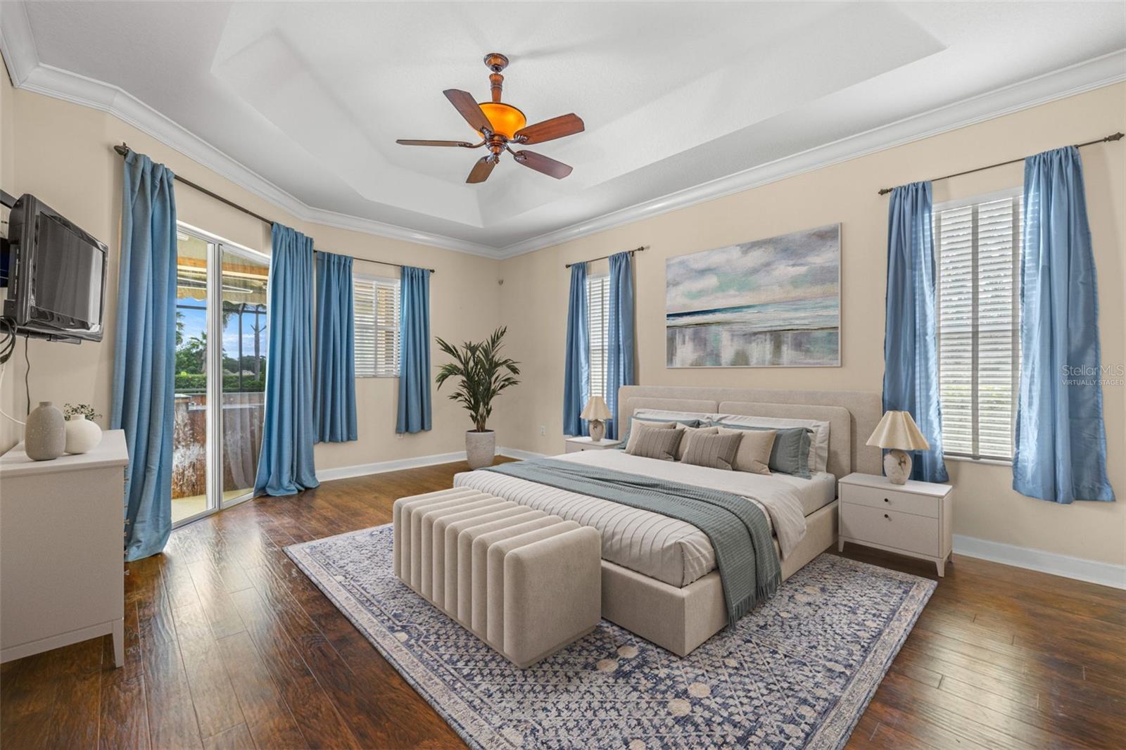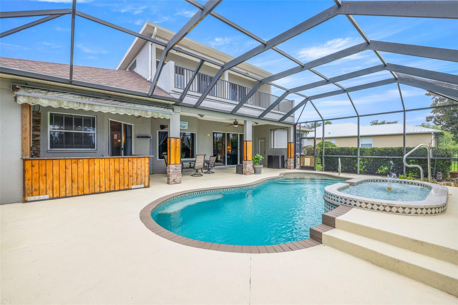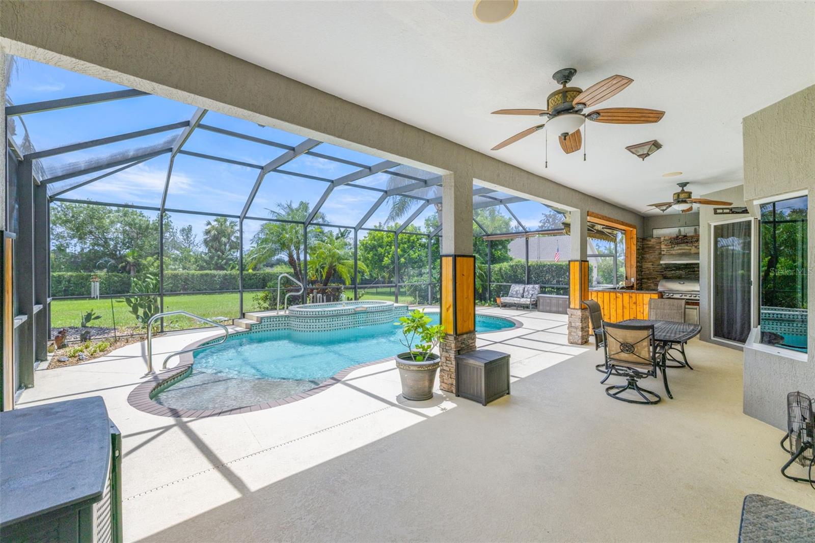 One or more photo(s) has been virtually staged. Potential multi-generational property! Experience luxurious living in this stunning 3,471 sq. ft., 4-bedroom, 3.5-bathroom pool home located in the desirable Twin Rivers community. This residence offers spacious interiors, a 3-car attached garage, and a light-filled open-concept living area with captivating views of the custom pool, spa, and expansive backyard. The three-way split floorplan provides flexibility and privacy. The second floor features 1 bedroom with separate living room, bathroom, kitchenette and its own private balcony overlooking the large backyard and pool. The gourmet kitchen is equipped with stainless appliances, quartz countertops, a tile backsplash, center island and a breakfast nook, offering abundant seating for casual dining or entertaining. Enjoy the ease of maintenance with hard surface flooring throughout the first-floor living spaces, including the primary bedroom. Secondary bedrooms are comfortably carpeted. The conveniently placed laundry room includes a sink for added functionality. The primary bathroom is a luxurious retreat, featuring a double vanity, a garden soaking tub, a spacious stall shower with beautiful decorative tile, and two large walk-in closets. The backyard is fully fenced and has a custom pool with a hot tub and screened/covered lanai provide a private oasis for outdoor enjoyment and entertainment, complete with a built-in outdoor kitchen. Large fully-fences backyard. 2-year-old roof. The home boasts meticulous landscaping, adding to its impressive curb appeal. Twin Rivers is a well-established community known for its architectural charm. It offers convenient access to a wide array of attractions in the Tampa Bay area, including Sarasota, Lakewood Ranch, Gulf beaches, boating activities, a variety of local shopping and dining establishments, and easy access to Interstate-75 and two nearby airports for convenient commutes to points north and south.