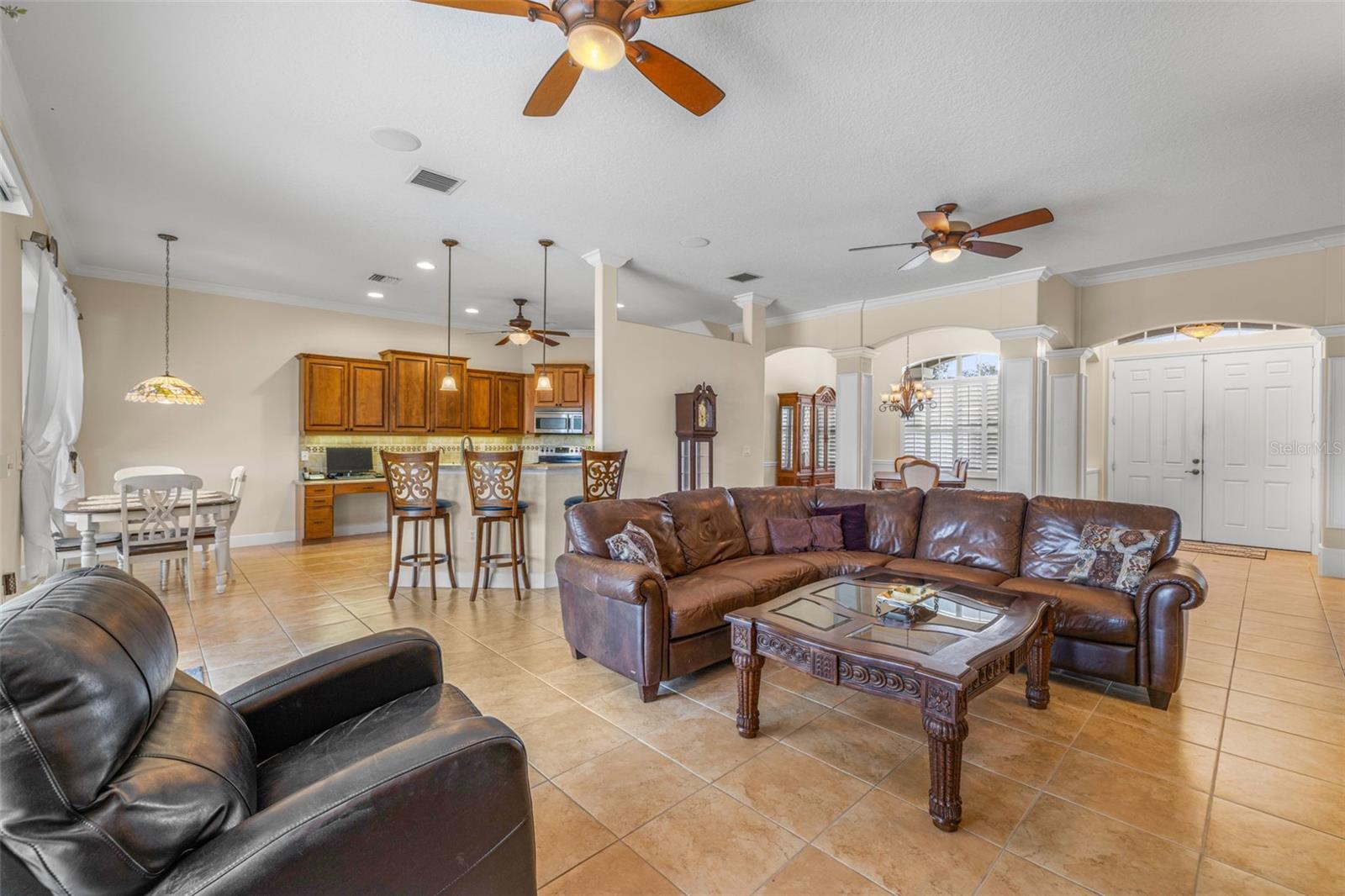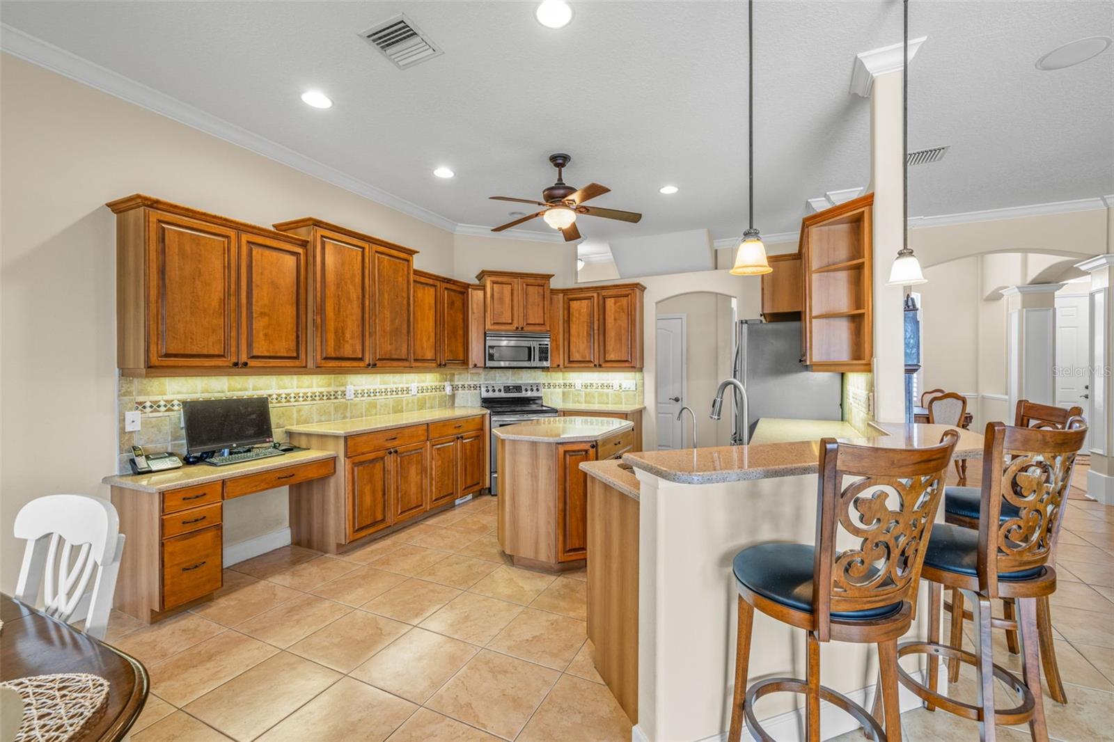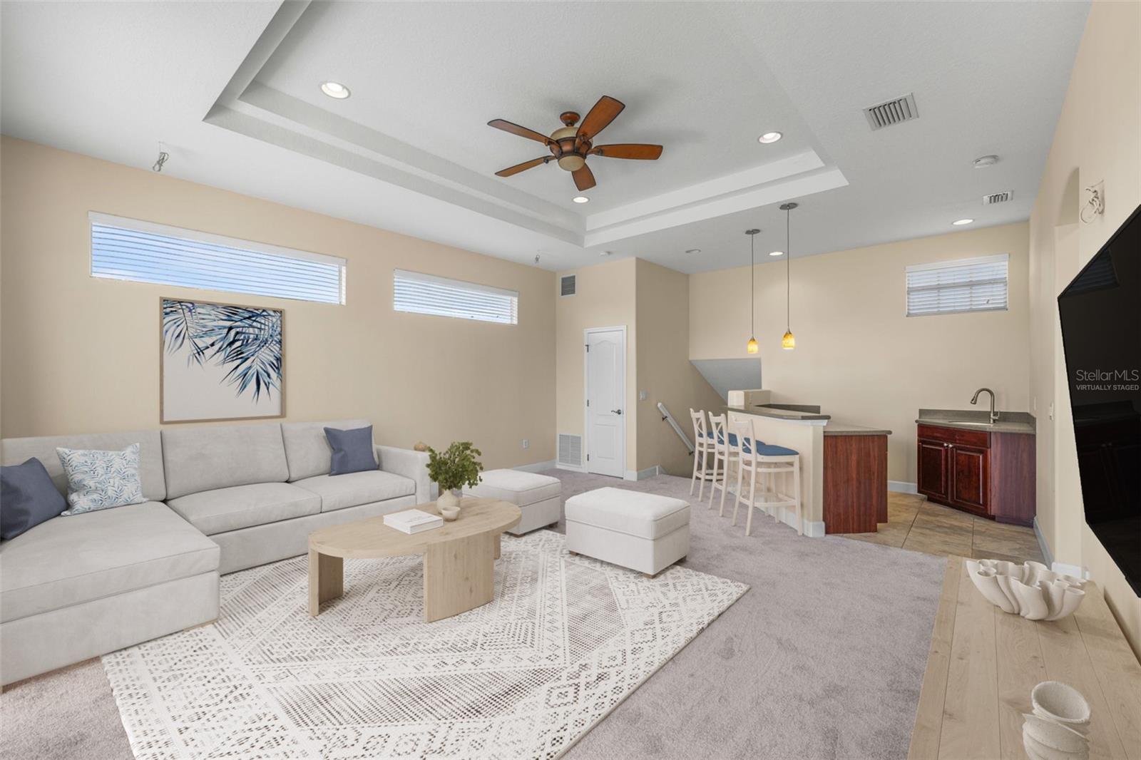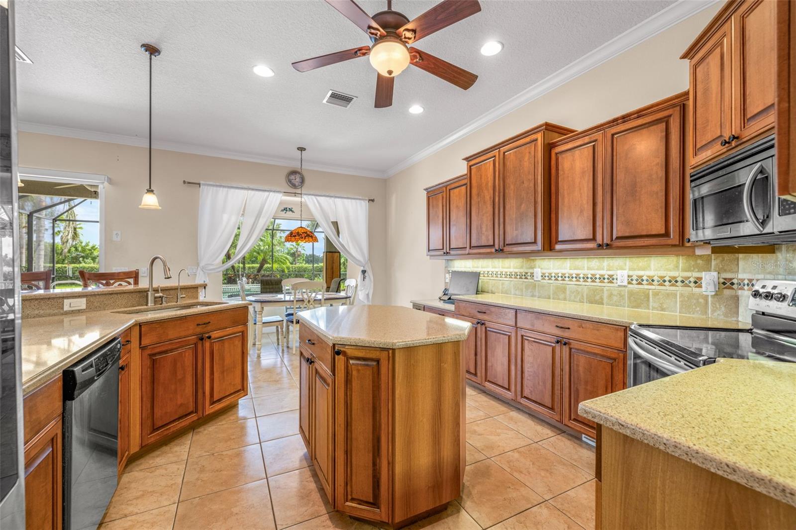One or more photo(s) has been virtually staged. Potential multi-generational property! Experience luxurious living in this stunning 3,471 sq. ft., 4-bedroom, 3.5-bathroom pool home located in the desirable Twin Rivers community. This residence offers spacious interiors, a 3-car attached garage, and a light-filled open-concept living area with captivating views of the custom pool, spa, and expansive backyard. The three-way split floorplan provides flexibility and privacy. The second floor features 1 bedroom with separate living room, bathroom, kitchenette and its own private balcony overlooking the large backyard and pool. The gourmet kitchen is equipped with stainless appliances, quartz countertops, a tile backsplash, center island and a breakfast nook, offering abundant seating for casual dining or entertaining. Enjoy the ease of maintenance with hard surface flooring throughout the first-floor living spaces, including the primary bedroom. Secondary bedrooms are comfortably carpeted. The conveniently placed laundry room includes a sink for added functionality. The primary bathroom is a luxurious retreat, featuring a double vanity, a garden soaking tub, a spacious stall shower with beautiful decorative tile, and two large walk-in closets. The backyard is fully fenced and has a custom pool with a hot tub and screened/covered lanai provide a private oasis for outdoor enjoyment and entertainment, complete with a built-in outdoor kitchen. Large fully-fences backyard. 2-year-old roof. The home boasts meticulous landscaping, adding to its impressive curb appeal. Twin Rivers is a well-established community known for its architectural charm. It offers convenient access to a wide array of attractions in the Tampa Bay area, including Sarasota, Lakewood Ranch, Gulf beaches, boating activities, a variety of local shopping and dining establishments, and easy access to Interstate-75 and two nearby airports for convenient commutes to points north and south.