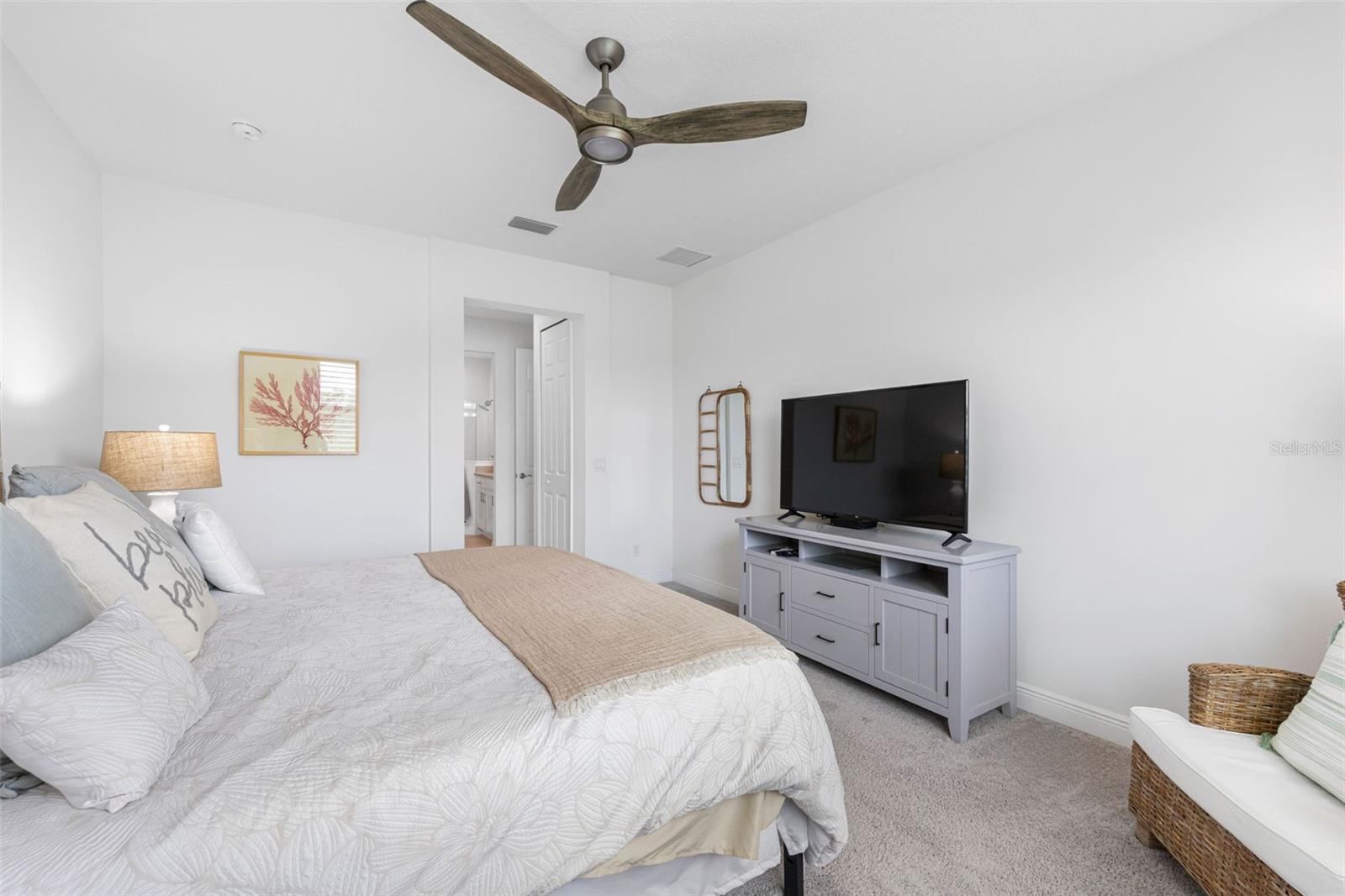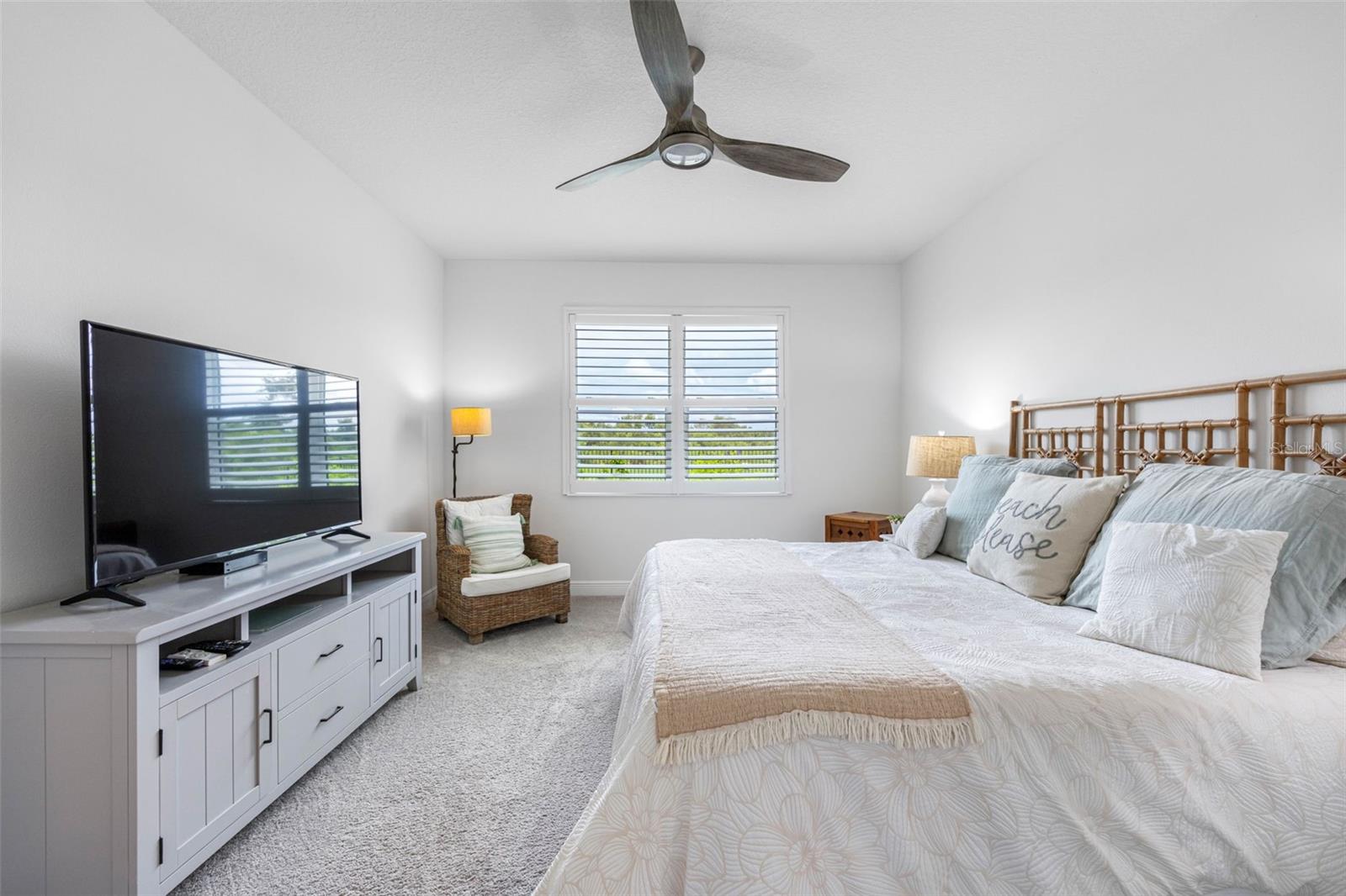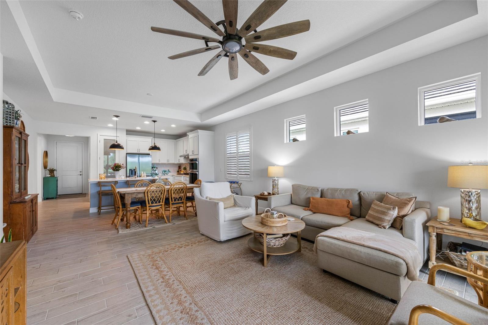 Located within the gated community of Watercolor Place, this 2022-built coastal-style villa perfectly blends modern luxury with low-maintenance living. Built with IMPACT WINDOWS AND DOORS, it offers lasting durability and peace of mind. The exterior showcases a tile roof, paver driveway and sidewalks, and lush tropical landscaping, creating an inviting curb appeal. This desirable Captiva floor plan features 2 bedrooms, 2 baths, a private den with doors, and a 2-car garage. Inside, a light-filled, open-concept design is enhanced by a soothing neutral palette, tray ceilings, plantation shutters, wood-look plank tile flooring, and upgraded ceiling fans throughout. The chef's kitchen is a true highlight, boasting smart appliances, a gas cooktop with hood, convection oven/microwave combo, quartz countertops, a center island with breakfast bar, and a spacious pantry. The primary suite offers a walk-in closet and a spa-like en-suite bath with dual vanities and a private water closet. Step outside to the screened lanai and take in serene views of the golf course, pond, and wooded backdrop--perfect for morning coffee or evening gatherings. With no CDD fee and an affordable HOA that includes cable, internet, lawn care, and access to recreation facilities, this home provides exceptional value. Community amenities include a clubhouse with pool, spa, and outdoor grilling area, and pickleball enthusiasts will love having the UMR Sports Complex just across the street. Ideally located near I-75, this home offers an easy drive to Sarasota, St. Petersburg, Tampa, and the stunning west coast beaches, with multiple airports also within an hour's drive. Costco, shopping, brand new Target and dining are just minutes away, putting the best of Florida living at your fingertips. Schedule your private showing today and experience the lifestyle Watercolor Place has to offer!