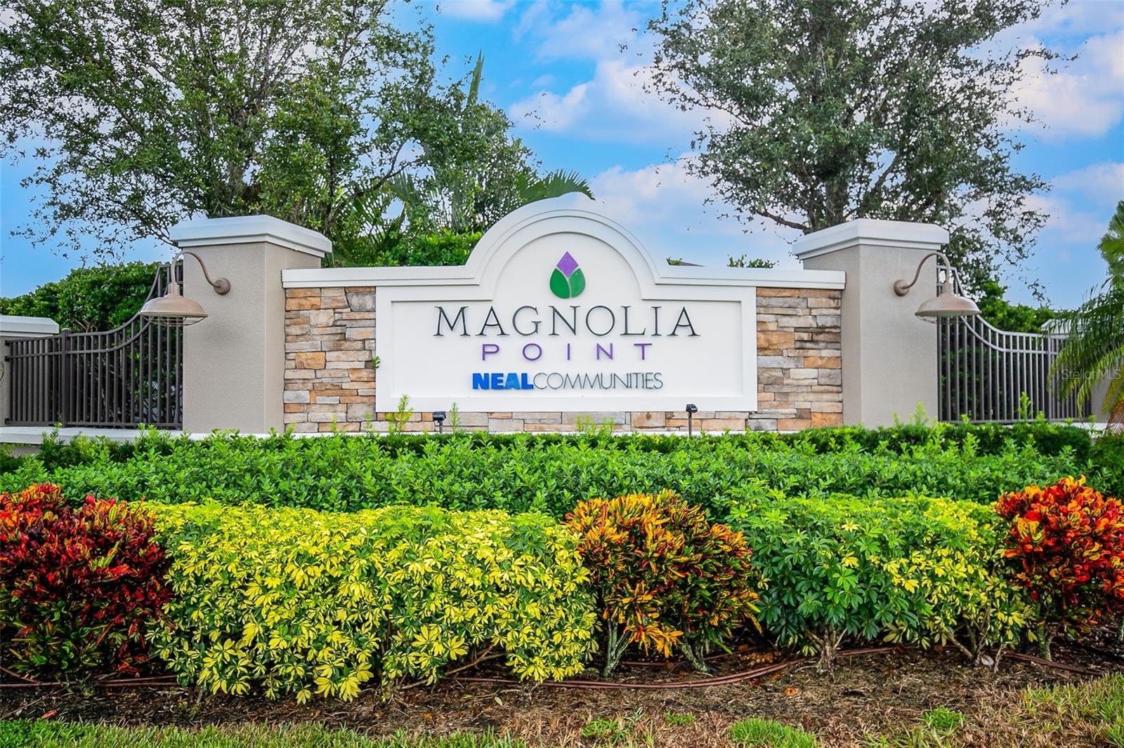 Stunning Magnolia Point Retreat - Your Oasis Awaits!Discover unparalleled elegance in this breathtaking 2015 Neal model, a former showcase home, nestled in the exclusive gated Magnolia Point community. Spanning 2,620 sq ft, this 4-bedroom, 3.5-bath masterpiece blends design with modern comfort, ready to elevate your lifestyle.Step into a bright, open-concept great room that flows effortlessly into a chef's kitchen. The expansive center island, sleek solid surface counters, premium stainless appliances, and rich cabinetry with glass-front accents create a space as functional as it is stunning. Upstairs, the primary suite is a private sanctuary, featuring generous walk-in closets and a spa-inspired ensuite with dual vanities, a luxurious soaking tub, and a grand oversized shower. A guest suite with its own private bath and a versatile office/den offers endless possibilities for family, guests, or a chic work-from-home setup.Your Private Outdoor ParadiseEscape to your own resort-style backyard, where a heated saltwater pool and spa beckon for year-round relaxation. The sun-soaked deck and covered lanai, framed by a serene pond and scenic walking trail, provide the perfect backdrop for entertaining or unwinding in tranquility. A clear view screen ensures unobstructed vistas of this peaceful setting.This home shines with thoughtful updates, including a charming front porch, a brand-new roof (installed in 2025), a year-old water heater, and a spacious 2-car garage.Prime Location & LifestyleTucked away on a quiet cul-de-sac in the pet-friendly, family-oriented Magnolia Point community, this home offers gated security, low HOA fees, and NO CDD! Just moments from Sarasota's vibrant cultural scene--think Ringling Museum and opera--plus endless outdoor adventures like kayaking, biking, and golf. Savor the area's dynamic dining, shop at the upscale University Town Center (UTC) Mall, or relax on pristine Gulf beaches. With Sarasota-Bradenton International Airport (SRQ) and downtown Sarasota nearby, convenience meets luxury at every turn.Don't miss out! Schedule your private tour today--no sign-on the property!