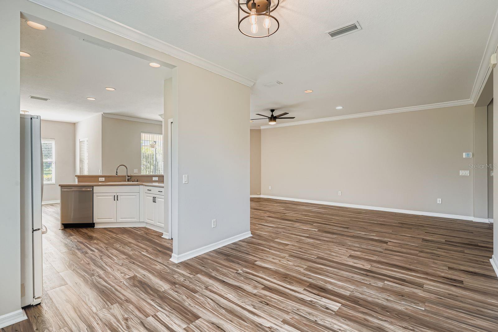 Welcome to Forest Creek, one of Parrish's premier gated communities! This beautifully maintained 3-bedroom, 2-bath home offers a thoughtfully designed floor plan that combines comfort, style, and functionality. Step inside to find a bright and open living space with high ceilings, a spacious great room, and a modern kitchen featuring solid surface counters, ample cabinetry, and a breakfast bar. The private primary suite includes a walk-in closet and en-suite bath, while two additional bedrooms provide plenty of flexibility for family, guests, or a home office. Enjoy your morning coffee or evening gatherings on the screened lanai overlooking a peaceful backyard with mature landscaping and a pond view. Forest Creek residents enjoy resort-style amenities, including a community pool, clubhouse, fitness center, walking trails, dog parks, and a scenic 18-acre lake. Conveniently located near I-75, this home offers easy access to shopping, dining, Lakewood Ranch, St. Petersburg, and the beautiful Gulf beaches. Don't miss your opportunity to own a piece of paradise in Forest Creek!