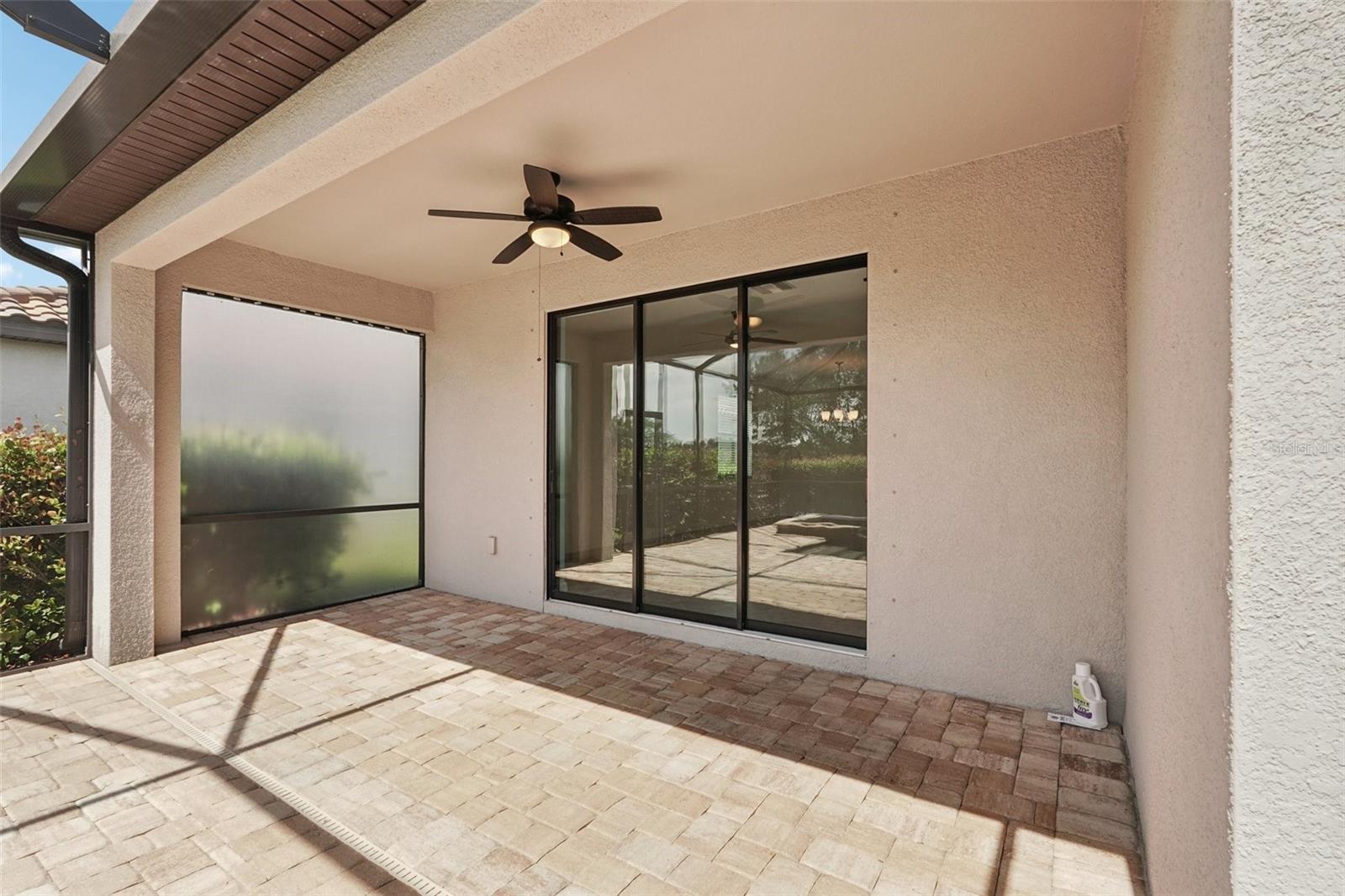 Exterior: Lighting, Rain Gutters, Sidewalk, Sliding Doors