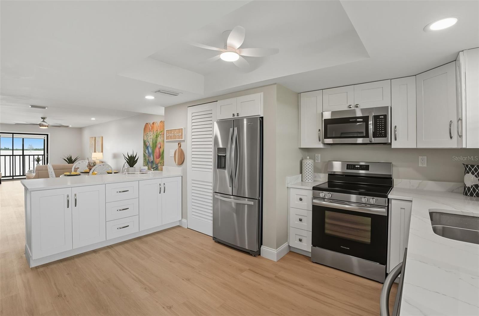Stunning Waterfront Condo with Breathtaking Charlotte Harbor Views!Step into this completely renovated residence and be captivated by the spectacular water views the moment you enter. Every detail has been thoughtfully updated, creating a fresh, modern, and coastal-inspired retreat.The redesigned kitchen offers an open-concept layout with quartz countertops, custom cabinetry, stainless steel appliances, and a convenient stackable washer/dryer. Luxury vinyl plank flooring flows seamlessly throughout, adding both style and durability.The spacious primary suite features an en-suite bath with marble countertops and elegant finishes, while the guest bedroom enjoys direct access to the updated second bath with quartz countertops.Relax on the private lanai and take in the sweeping harbor views--perfect for morning coffee or evening sunsets. Two storage closets add convenience, while recent upgrades including a new Trane HVAC system, new hot water heater, and 2022 roof ensure peace of mind.With its open floor plan, high-quality finishes, and unbeatable waterfront setting, this condo is the perfect blend of comfort and style.Don't miss this opportunity--schedule your private showing today!