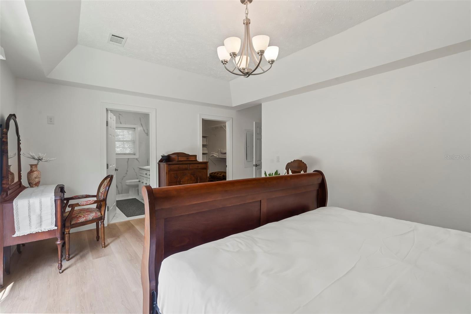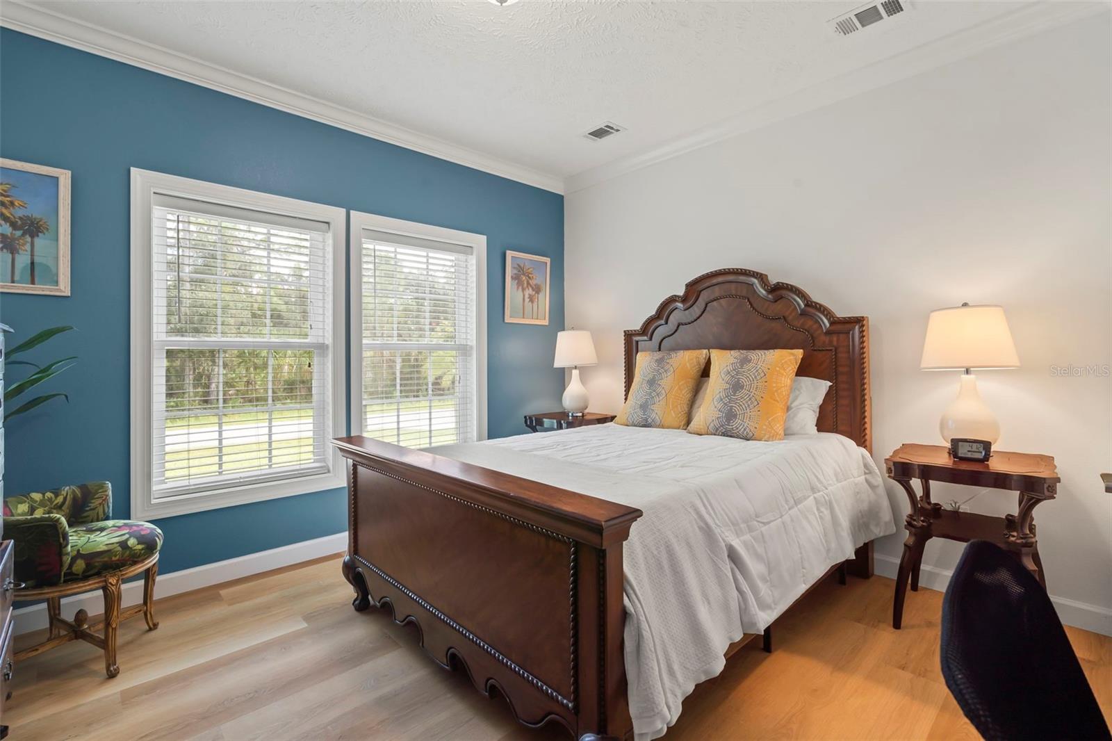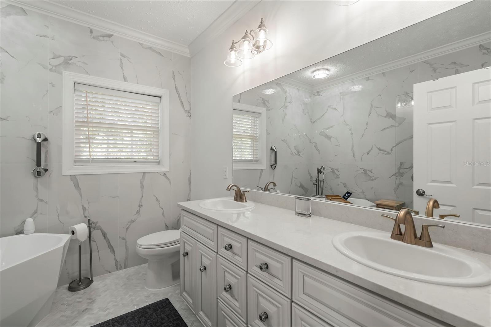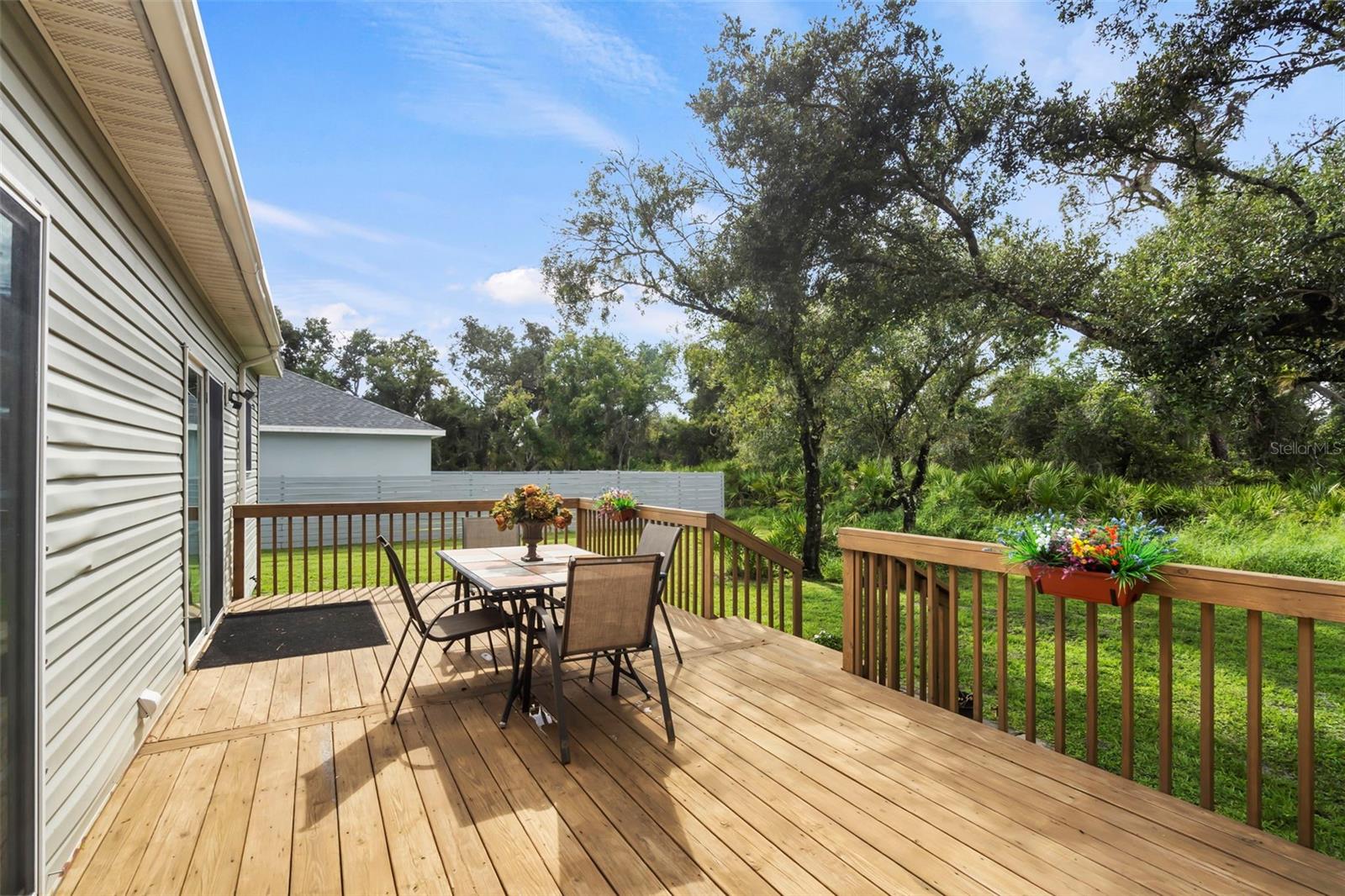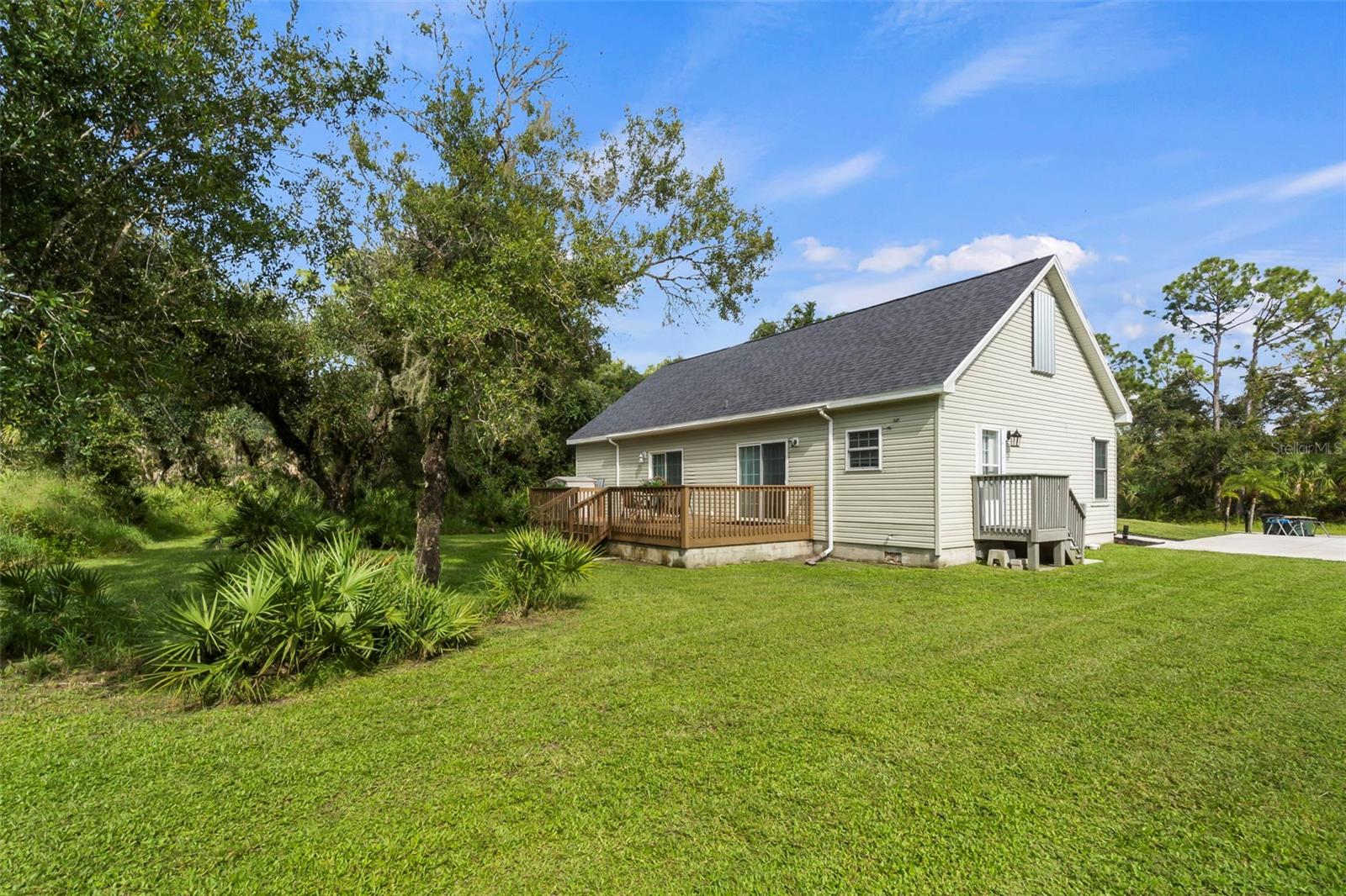 A COUNTRY HOME in North Port! See this beautiful and spacious home in a peaceful and quiet neighborhood in North Port. Enjoy biking and hiking trails with your pets - stroll along Myakkahatchee Creek and Oaks Park just around the corner! This home is all 1st Floor living with a spacious, bright and airy floor plan complete with a brand new Primary Suite, Luxurious Bathroom and two additional bedrooms with ample closet space. Entire home is freshly painted with new luxury vinyl plank flooring throughout. Prepare gourmet meals in the spacious designer kitchen ideal for preparing meals and entertaining. The kitchen features stainless steel appliances, upgraded quartz countertops, ample counter space, and a breakfast bar great for casual get-togethers. Let the pet in/out using the side door. The semi-open floor plan with 9ft ceilings and crown molding throughout seamlessly connects the kitchen and dining room but allows for separate gathering in the formal living room and great room creating a welcoming and inviting space for you and guests. You'll love the easy access to the deck with sliding doors from the kitchen and primary bedroom. Step outside to enjoy the expansive 12 x 24 deck ideal for that cookout, relaxing, sun tanning or relaxing in a Jacuzzi hot tub! The home has been thoughtfully upgraded including a new roof, water system, appliances, and designer tiled bathrooms. Take the beautifully refinished stairs up to the huge attic space where you can build a HOME THEATER or ADDITIONAL 1-2 BEDROOMS (rough plumbing located upstairs). The house is on a large lot. The long driveway and yard are big enough to store a boat! No street parking necessary there is room for at least six cars. PERFECT INVESTMENT PROPERTY - SNOW BIRDS. Convenient location - I75, Police, Fire and Post Office, Schools, Aquatic Center, Community Centers and Local Shopping! There is NO HOA or CDD!Home Video Available in "Video & Virtual Tour" field.