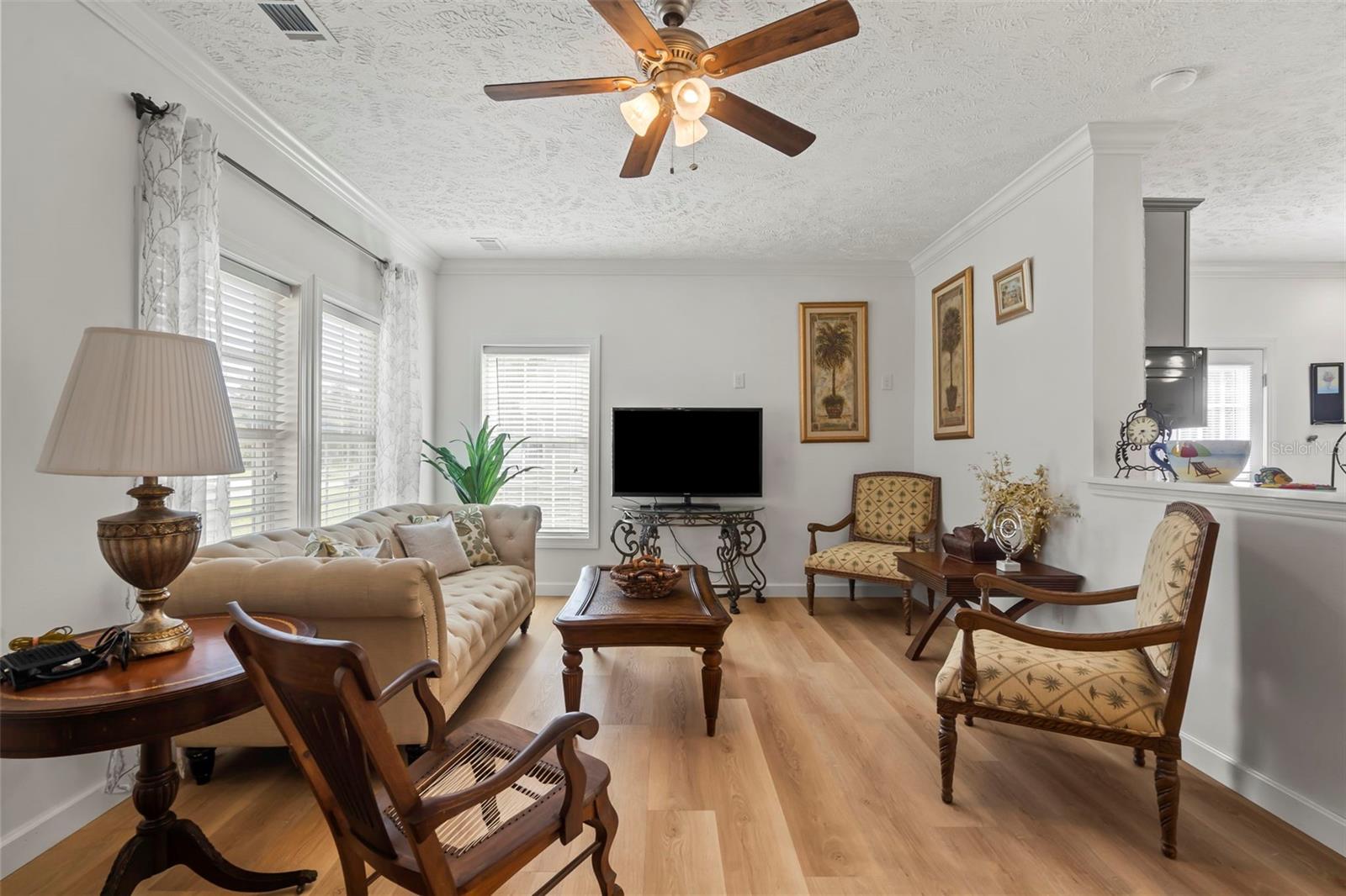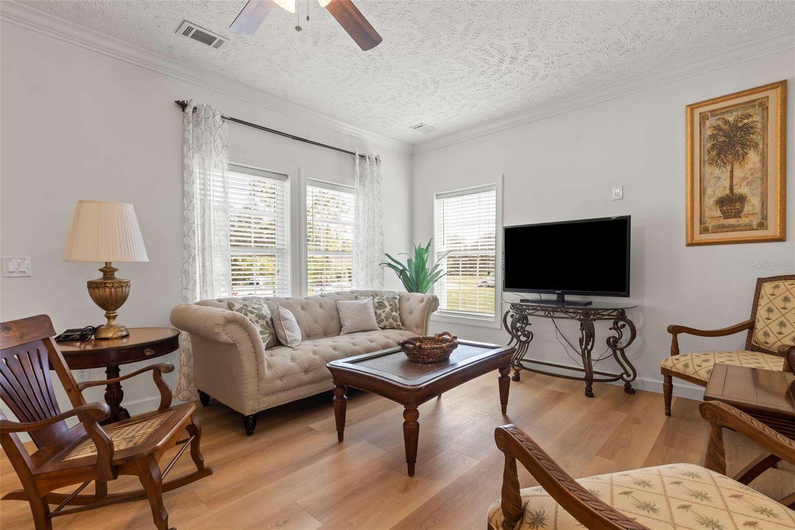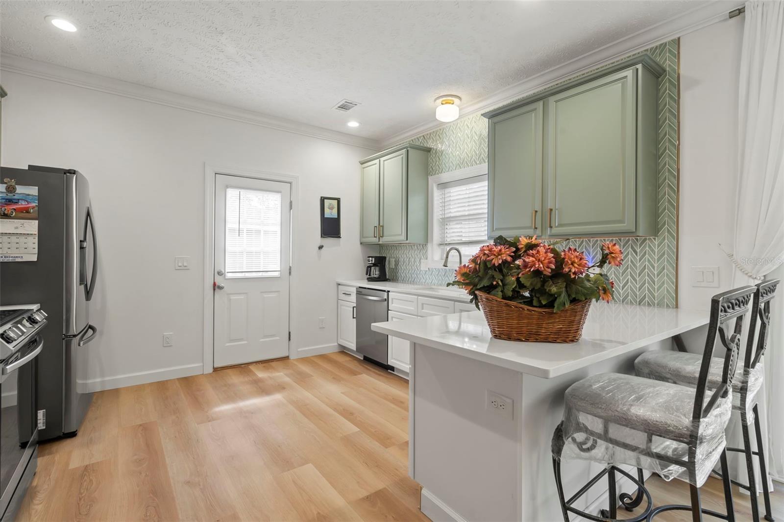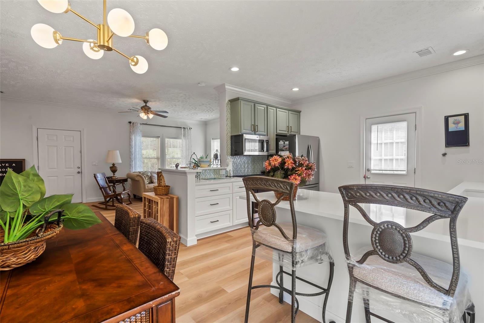 A COUNTRY HOME in North Port! See this beautiful and spacious home in a peaceful and quiet neighborhood in North Port. Enjoy biking and hiking trails with your pets - stroll along Myakkahatchee Creek and Oaks Park just around the corner! This home is all 1st Floor living with a spacious, bright and airy floor plan complete with a brand new Primary Suite, Luxurious Bathroom and two additional bedrooms with ample closet space. Entire home is freshly painted with new luxury vinyl plank flooring throughout. Prepare gourmet meals in the spacious designer kitchen ideal for preparing meals and entertaining. The kitchen features stainless steel appliances, upgraded quartz countertops, ample counter space, and a breakfast bar great for casual get-togethers. Let the pet in/out using the side door. The semi-open floor plan with 9ft ceilings and crown molding throughout seamlessly connects the kitchen and dining room but allows for separate gathering in the formal living room and great room creating a welcoming and inviting space for you and guests. You'll love the easy access to the deck with sliding doors from the kitchen and primary bedroom. Step outside to enjoy the expansive 12 x 24 deck ideal for that cookout, relaxing, sun tanning or relaxing in a Jacuzzi hot tub! The home has been thoughtfully upgraded including a new roof, water system, appliances, and designer tiled bathrooms. Take the beautifully refinished stairs up to the huge attic space where you can build a HOME THEATER or ADDITIONAL 1-2 BEDROOMS (rough plumbing located upstairs). The house is on a large lot. The long driveway and yard are big enough to store a boat! No street parking necessary there is room for at least six cars. PERFECT INVESTMENT PROPERTY - SNOW BIRDS. Convenient location - I75, Police, Fire and Post Office, Schools, Aquatic Center, Community Centers and Local Shopping! There is NO HOA or CDD!Home Video Available in "Video & Virtual Tour" field.